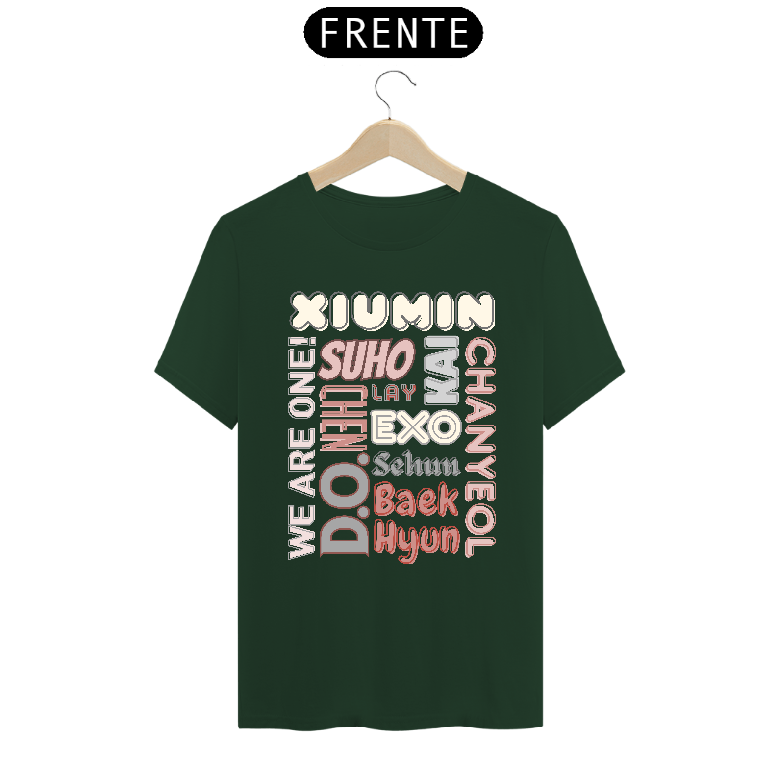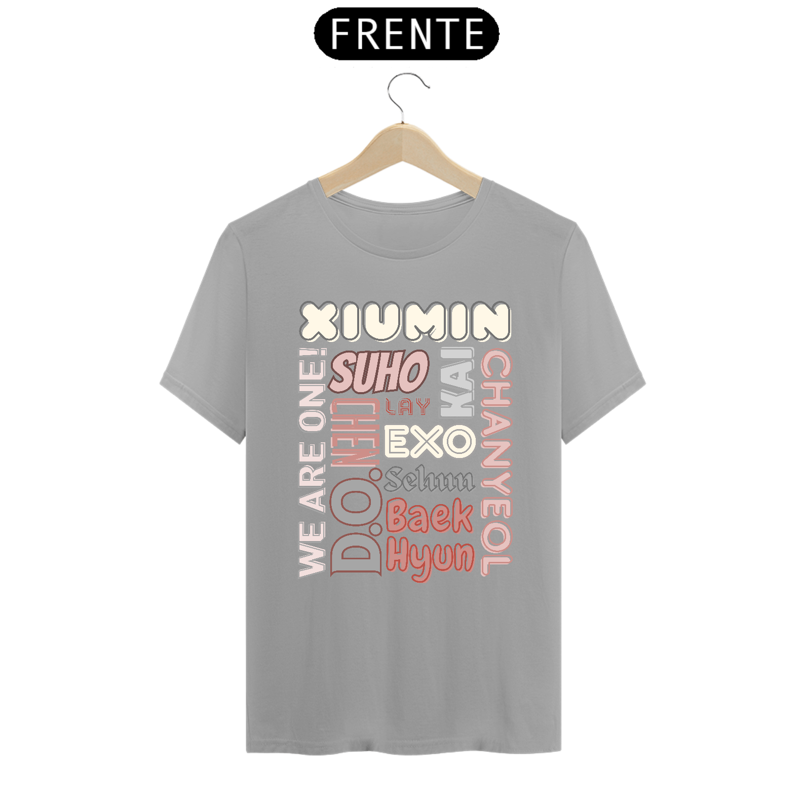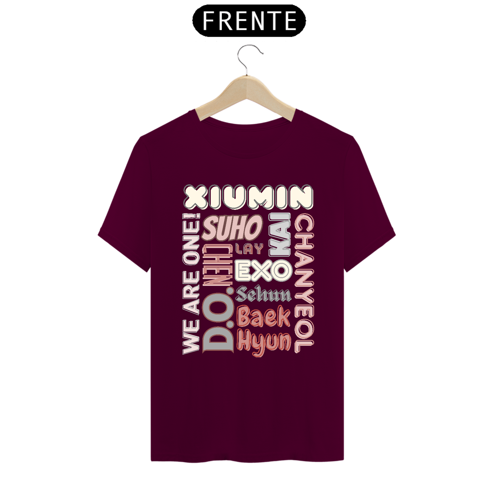 Esta camiseta de corte masculino é perfeita para os fãs devotos do EXO. Ela apresenta os nomes dos membros do grupo K-pop mais amado do mundo em letras elegantes e vibrantes. Mostre seu apoio ao seu bias favorito ou ao grupo inteiro com estilo e conforto.