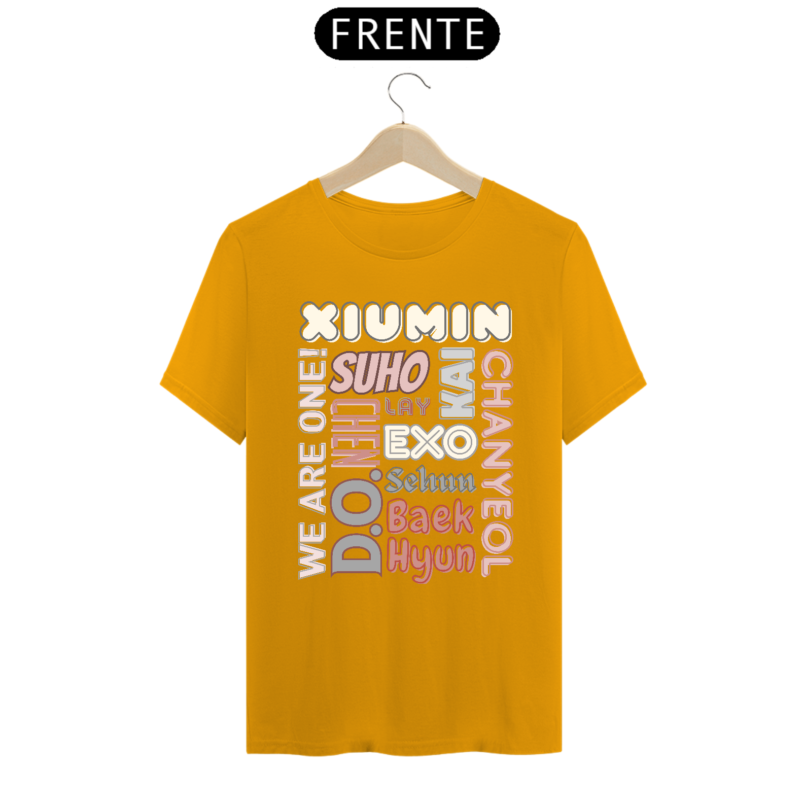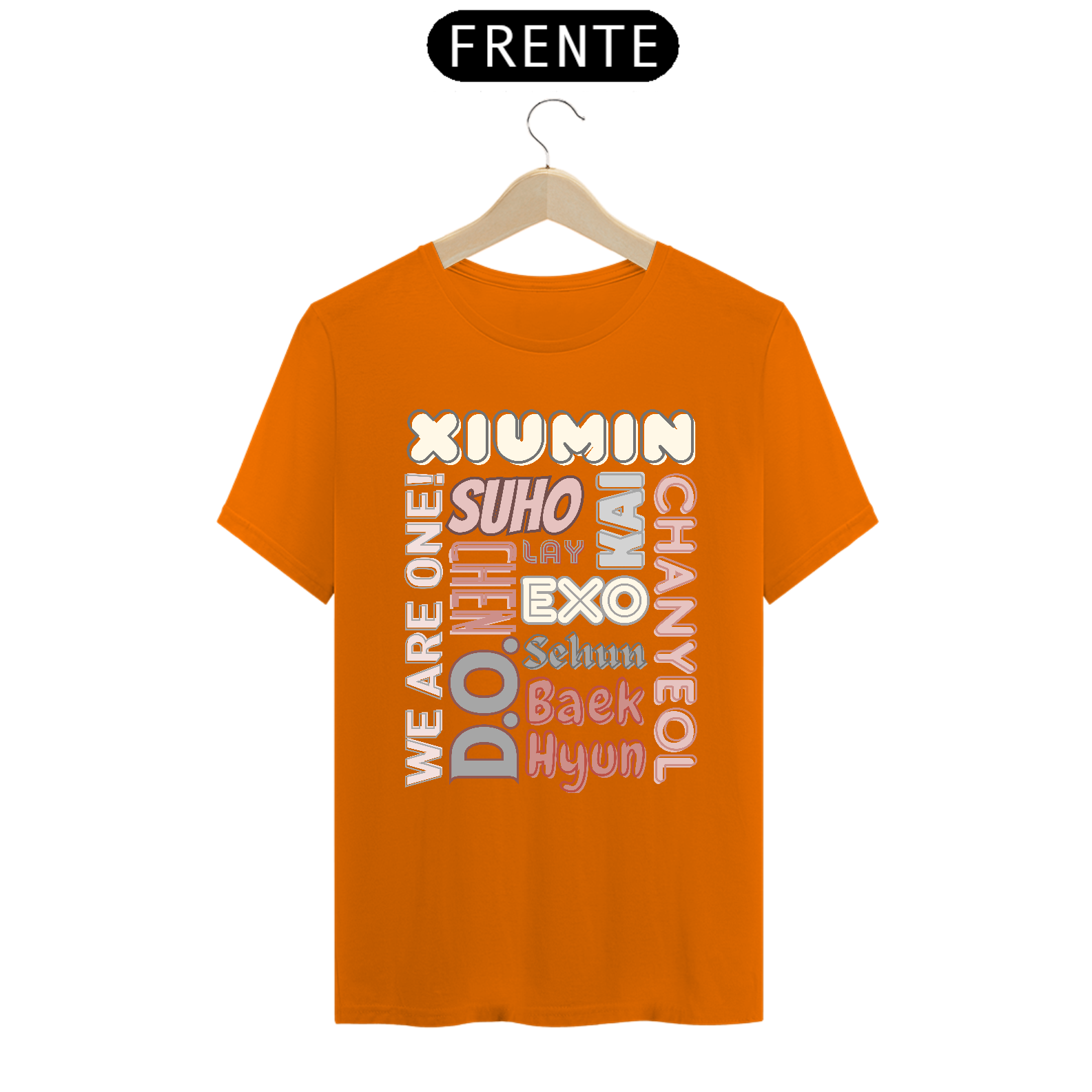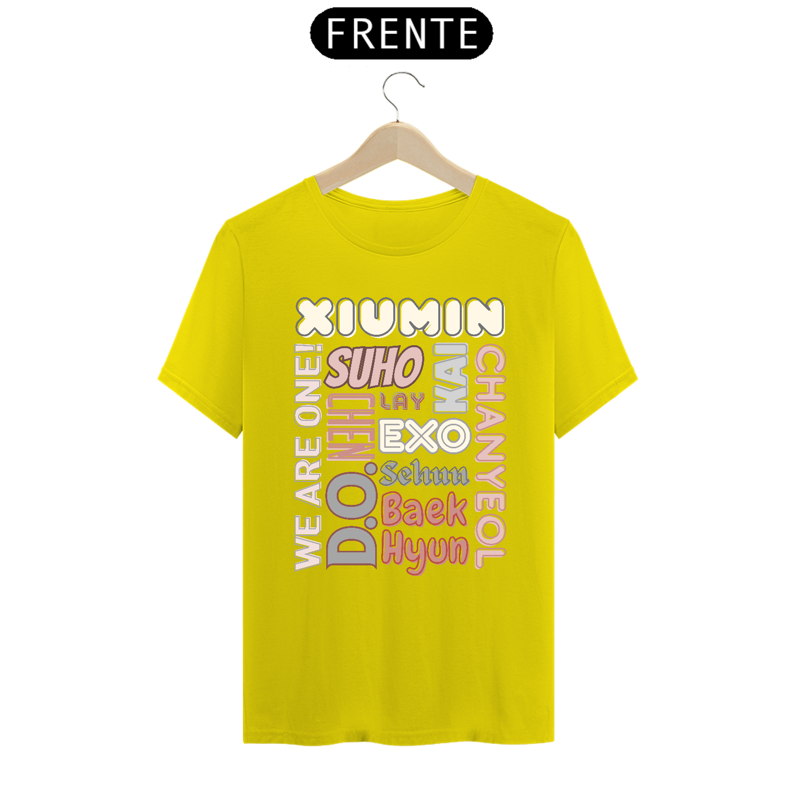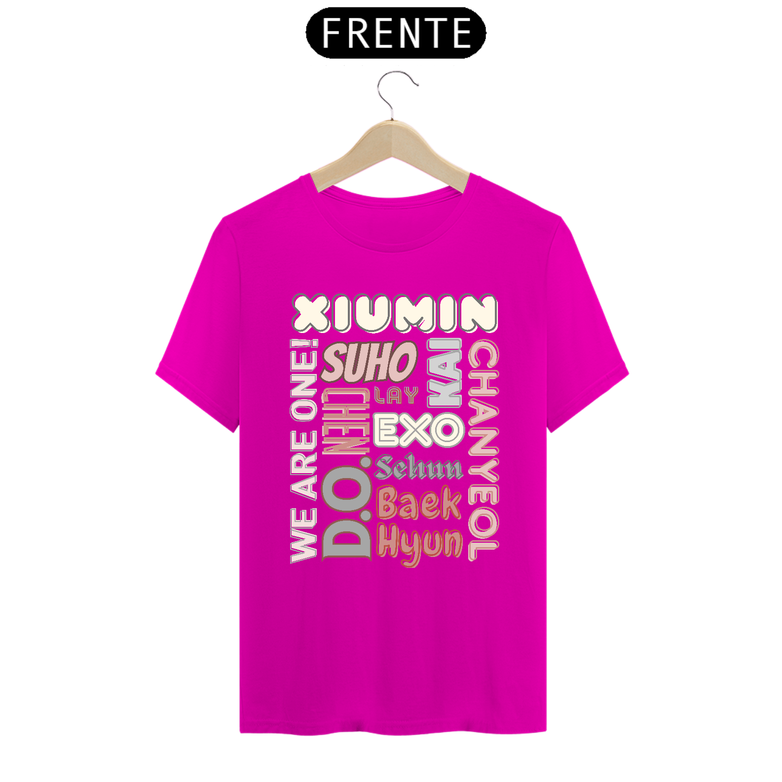 Esta camiseta de corte masculino é perfeita para os fãs devotos do EXO. Ela apresenta os nomes dos membros do grupo K-pop mais amado do mundo em letras elegantes e vibrantes. Mostre seu apoio ao seu bias favorito ou ao grupo inteiro com estilo e conforto.