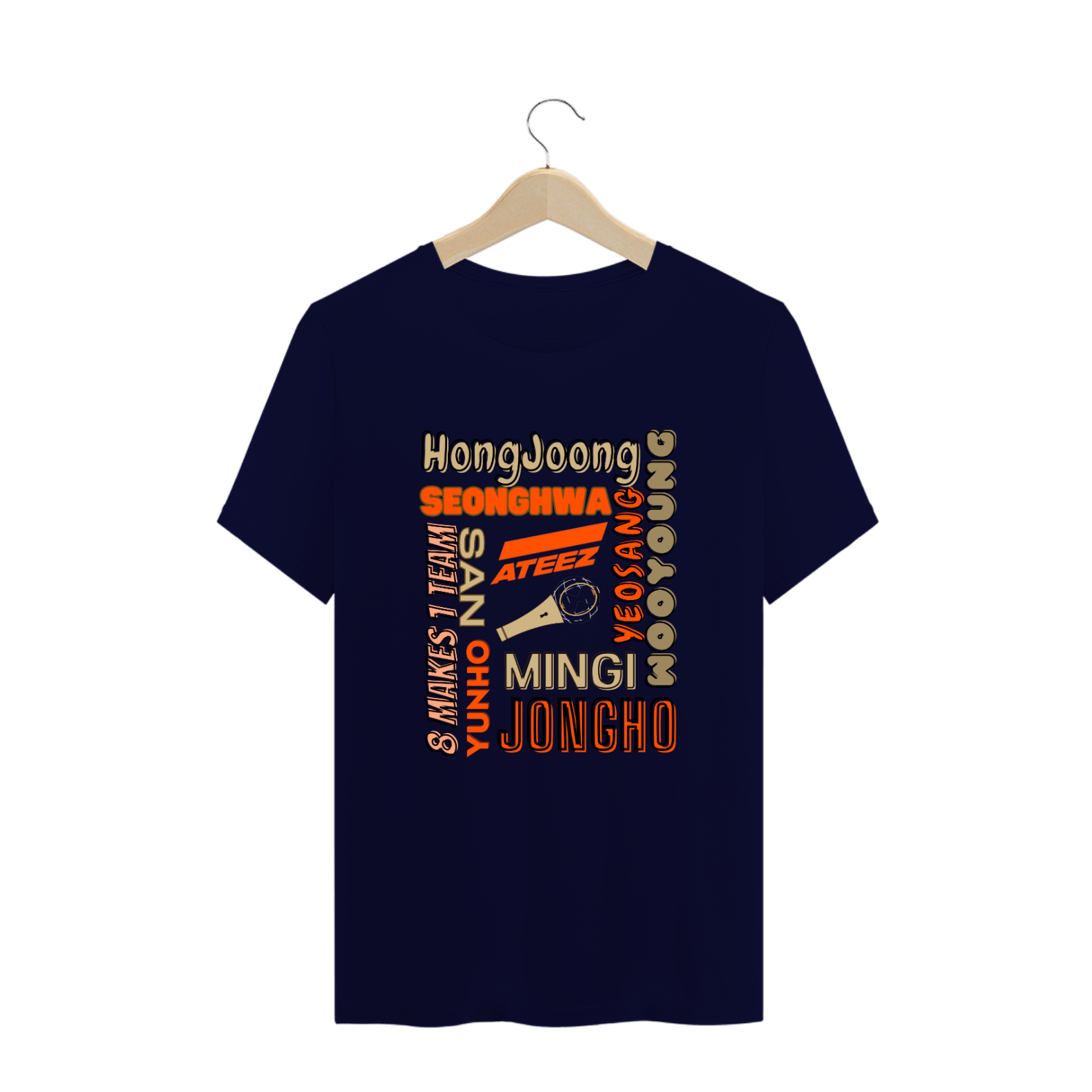 Celebre a incrível diversidade do ATEEZ com esta camiseta plus size. Com os nomes dos membros do grupo em destaque, você pode mostrar seu apoio ao ATEEZ com conforto e estilo. Disponível em tamanhos maiores, esta camiseta é perfeita para todos os fãs que adoram música e moda.