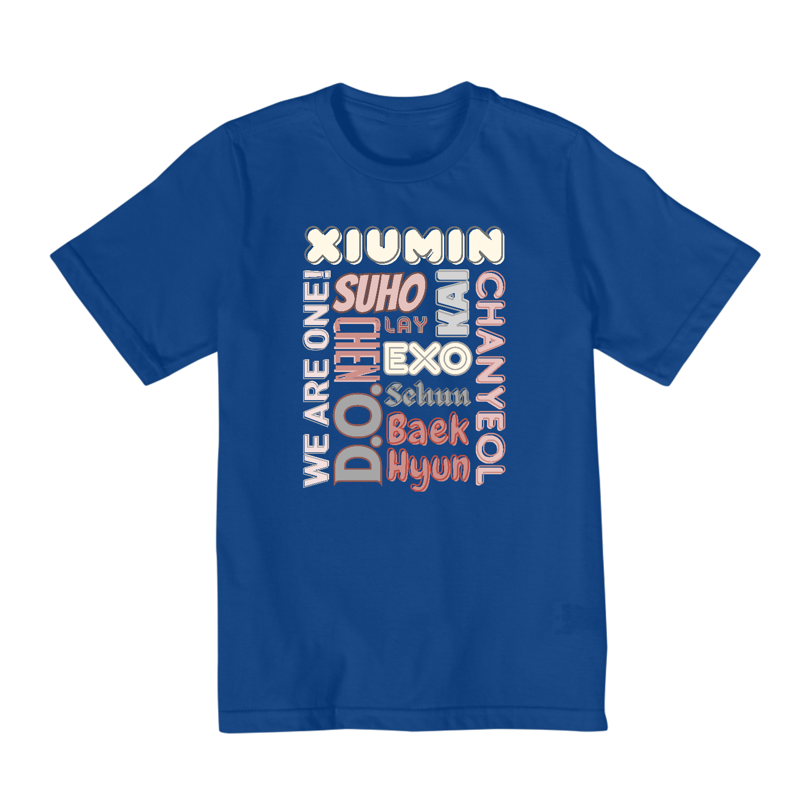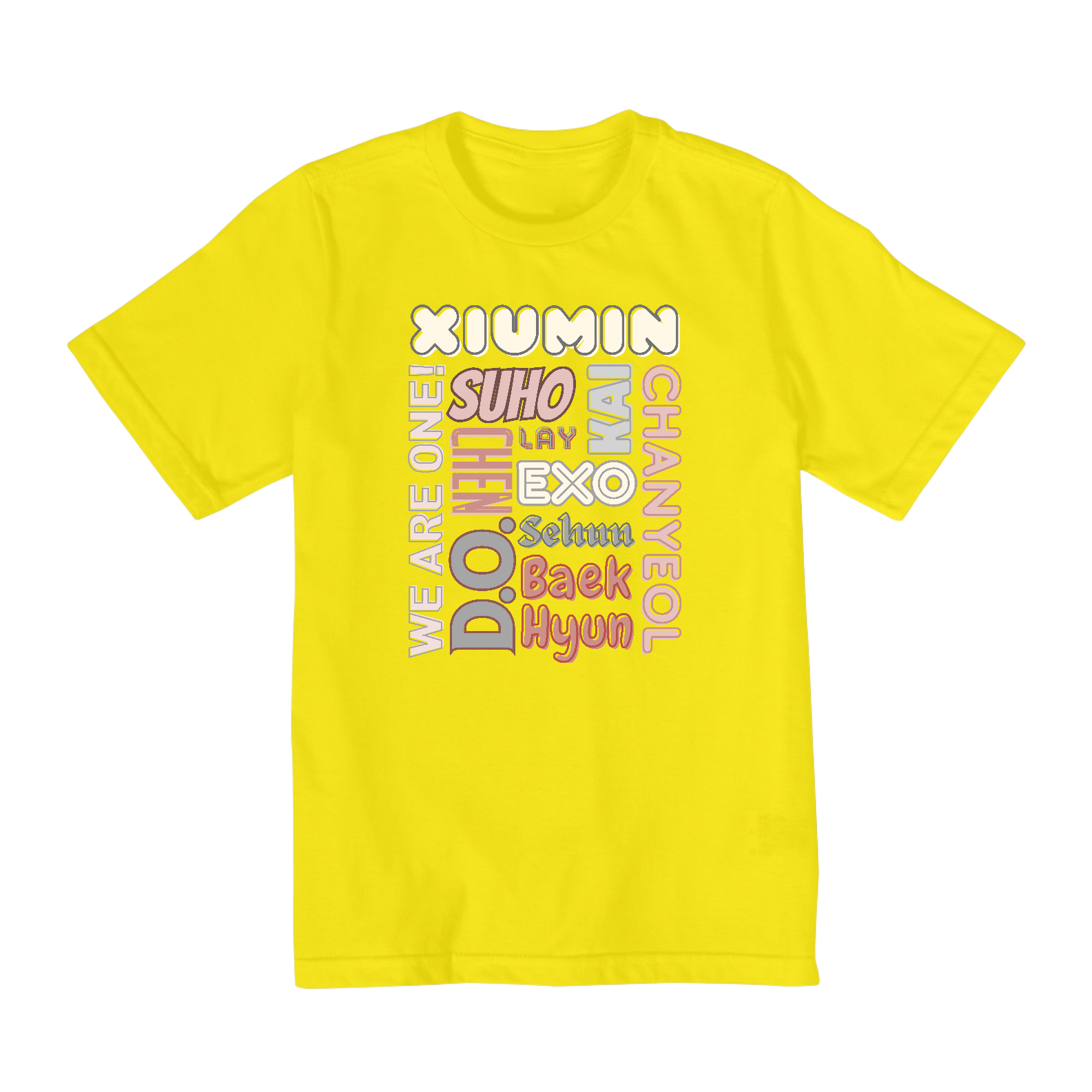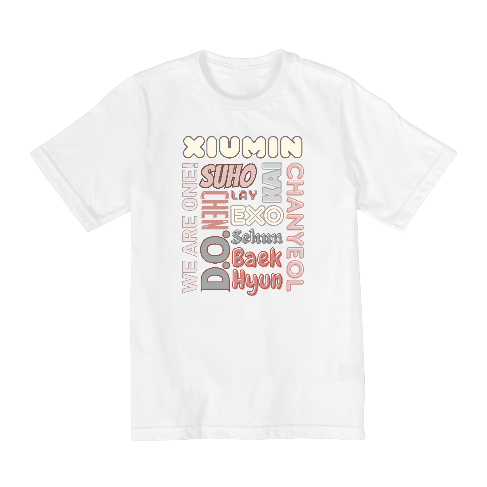 Para os fãs um pouco mais crescidos, temos esta camiseta nos tamanhos 10 ao 14. Agora, os pré-adolescentes e adolescentes podem mostrar seu apoio ao EXO de maneira estilosa e moderna com esta camiseta exclusiva.