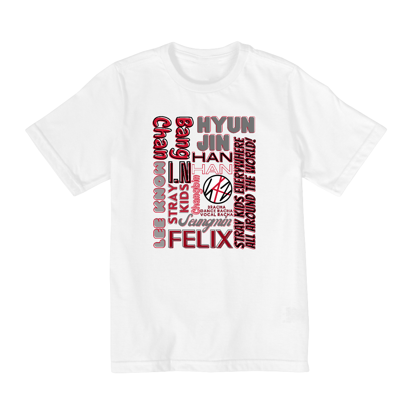 Se você está crescendo e ainda é um grande fã do Stray Kids, esta camiseta é perfeita para você! Disponível nos tamanhos 1 ao 14, esta camiseta oferece um ajuste confortável para pré-adolescentes e adolescentes que querem mostrar seu apoio ao grupo. Os nomes dos membros são apresentados em um design moderno que combina com o estilo dos fãs mais crescidos.