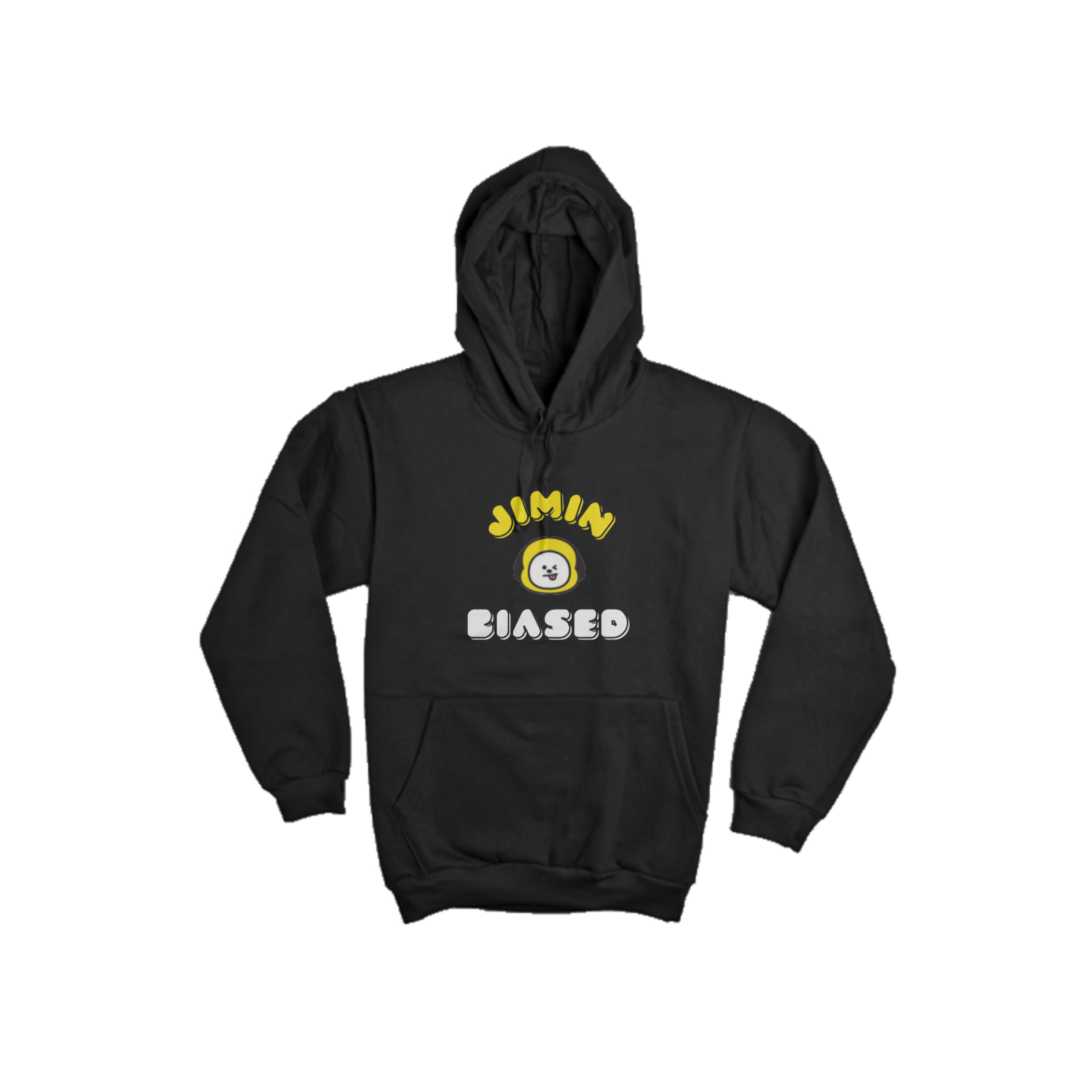 A frase "Jimin Biased" está proeminente na parte frontal deste moletom, em um design moderno e estilizado que permite que você exiba seu amor pelo Jimin de forma autêntica e sofisticada.