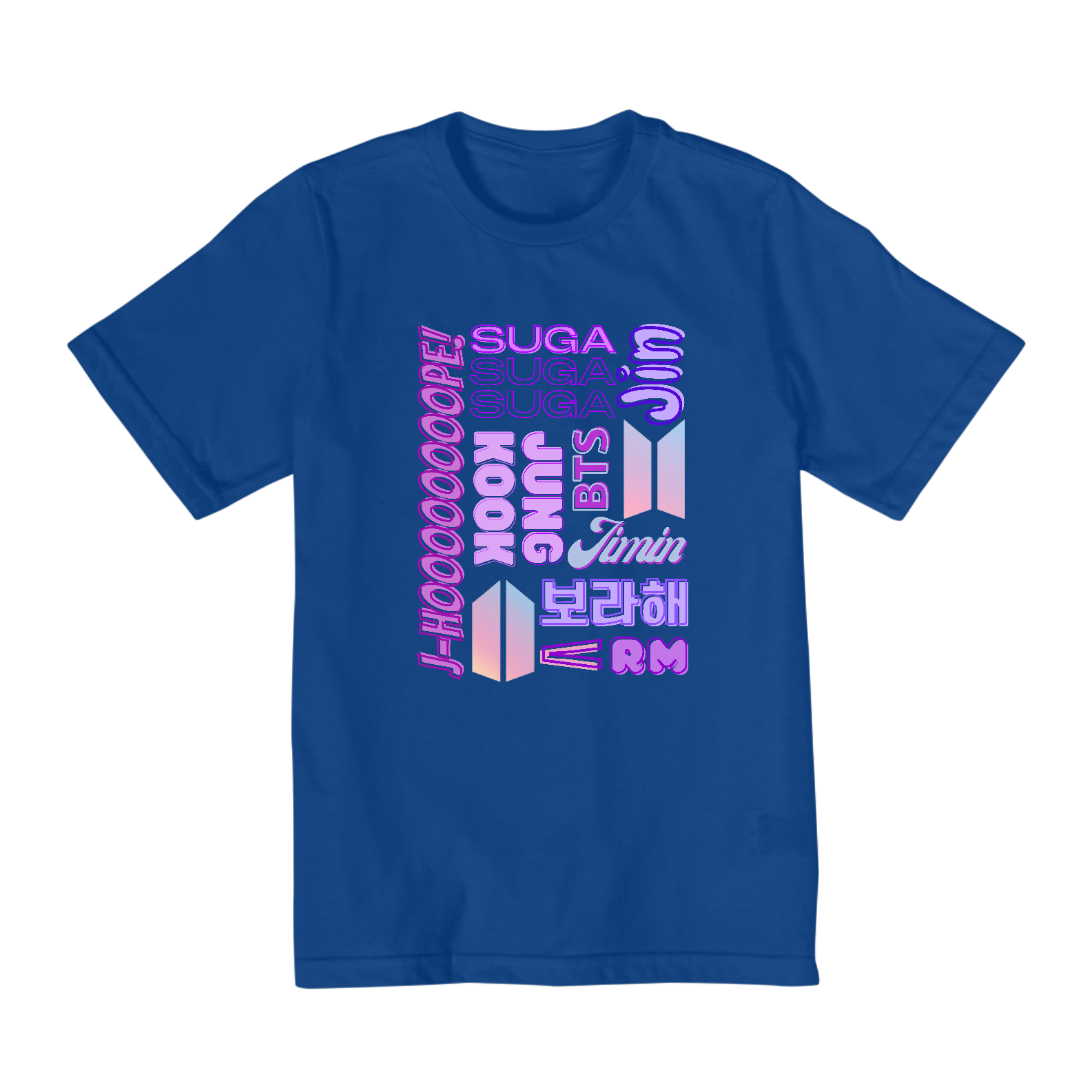 As crianças também podem fazer parte da febre do BTS! Esta camiseta está disponível nos tamanhos 2 ao 8 e apresenta os nomes dos membros do grupo em um design colorido e divertido. Perfeita para os pequenos fãs que querem se destacar na multidão e mostrar seu apoio ao BTS.
