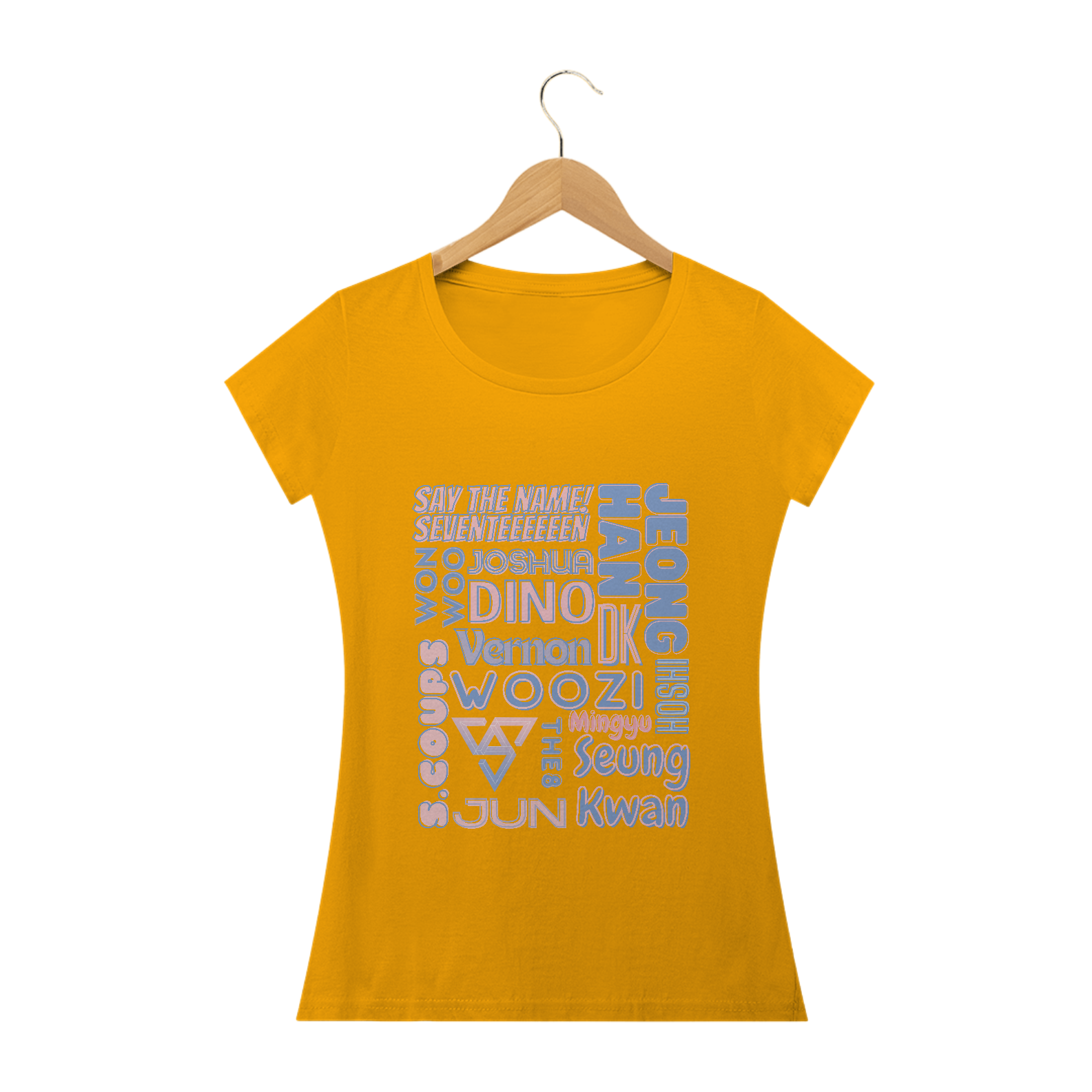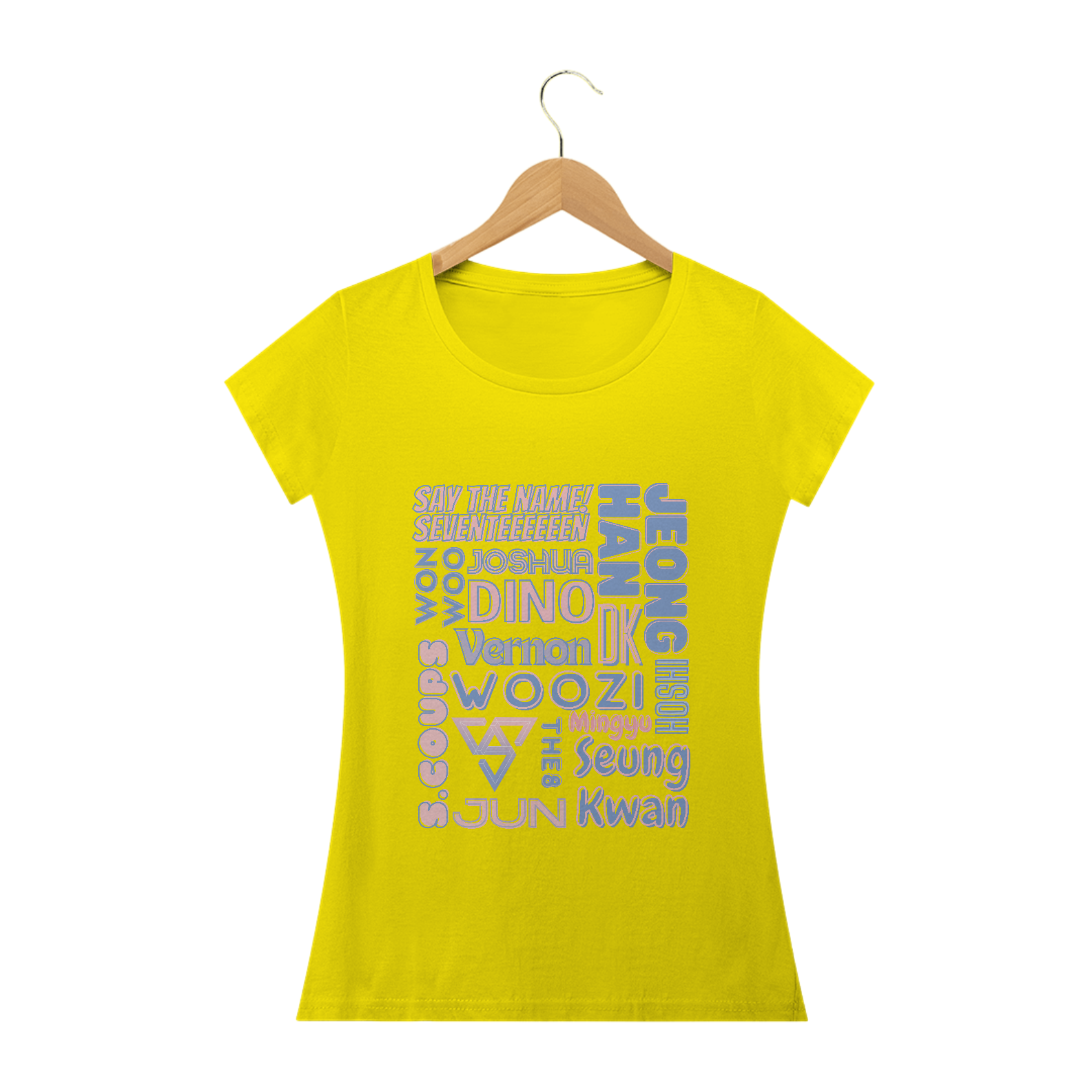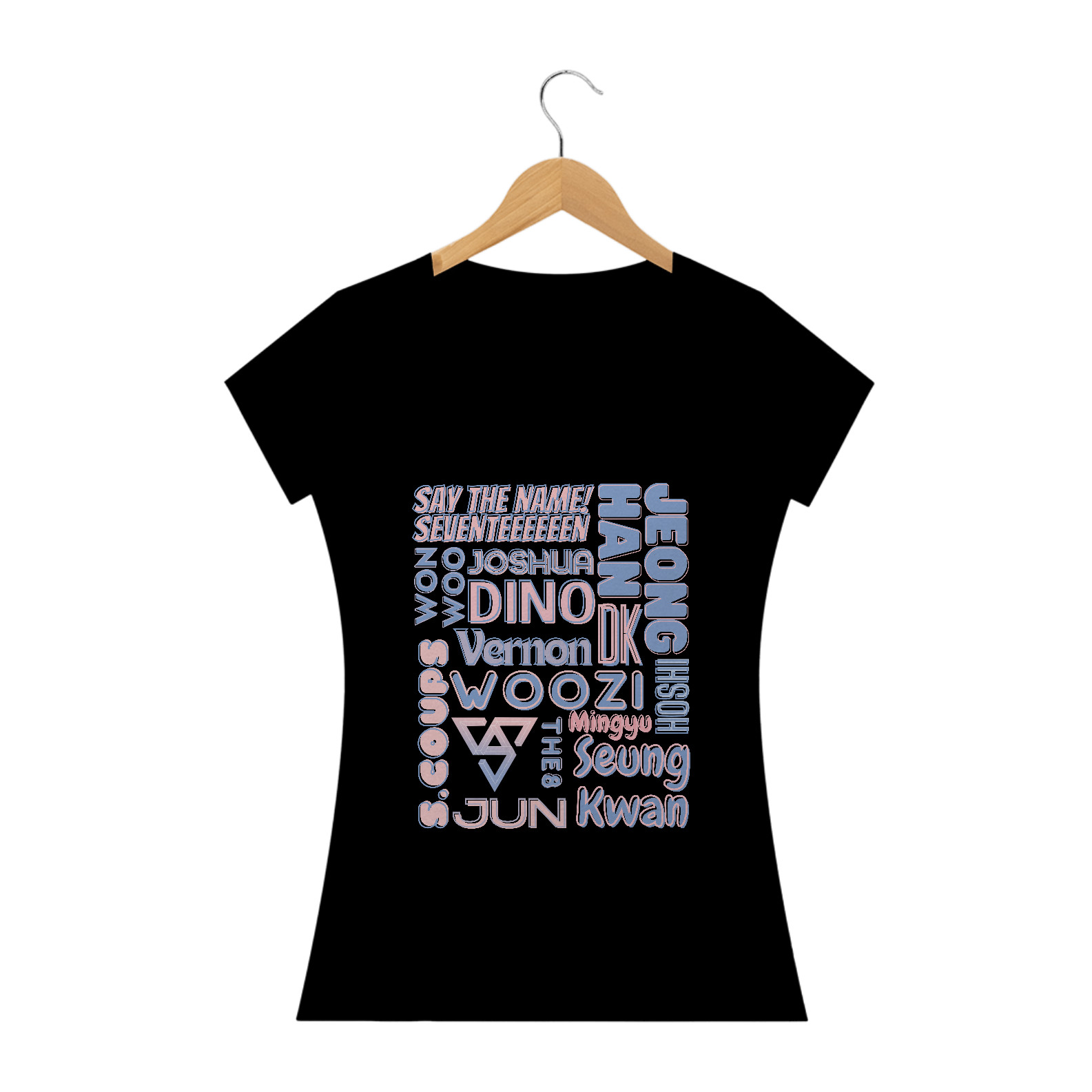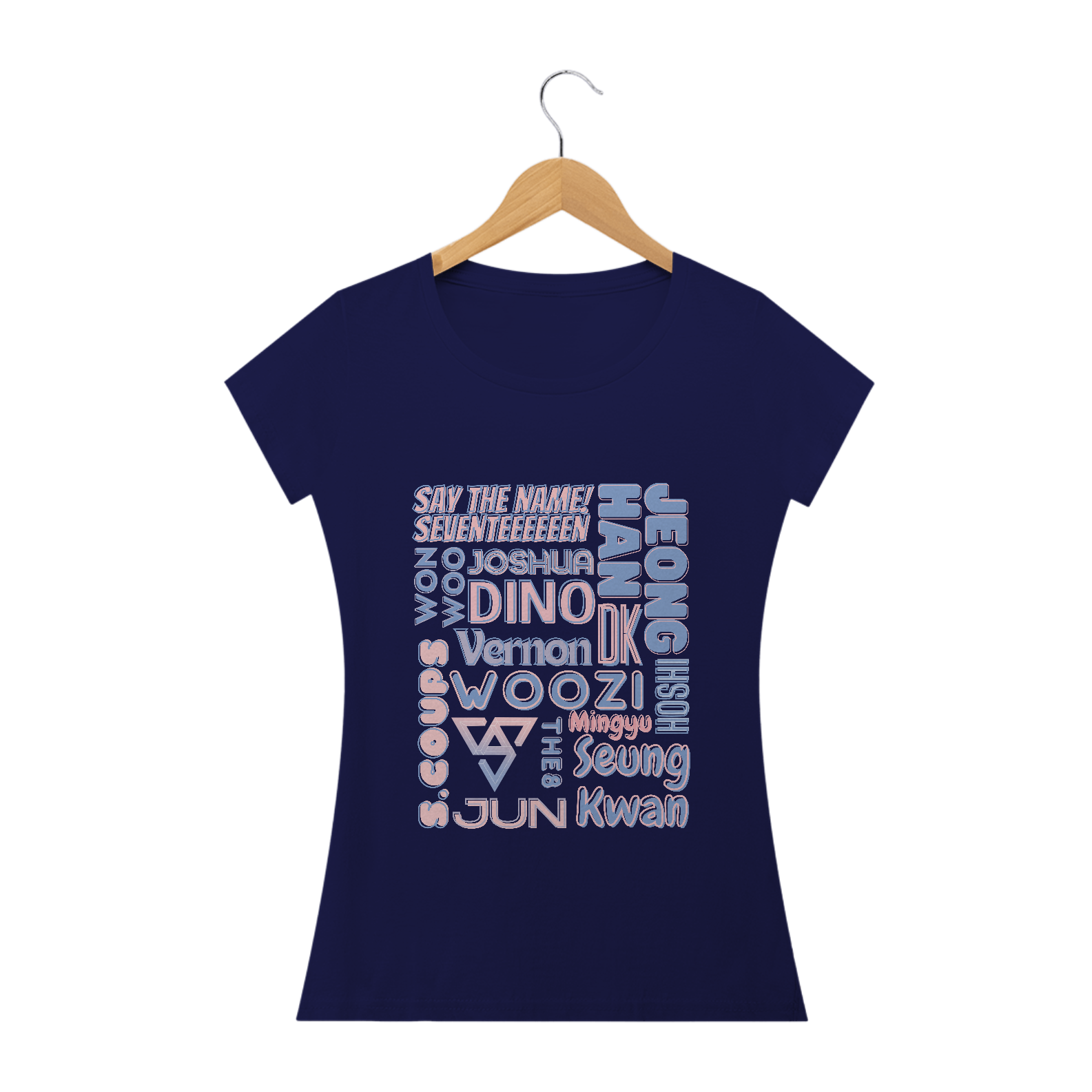 Se você é fã do Seventeen que adora um visual mais ajustado e feminino, esta camiseta babylook é ideal para você. Com os nomes dos 13 talentosos membros do grupo em destaque, esta camiseta é a escolha perfeita para mostrar seu amor pelo Seventeen de uma maneira elegante. Seu corte feminino valoriza suas curvas, enquanto o design impressionante faz com que você se destaque em qualquer multidão.