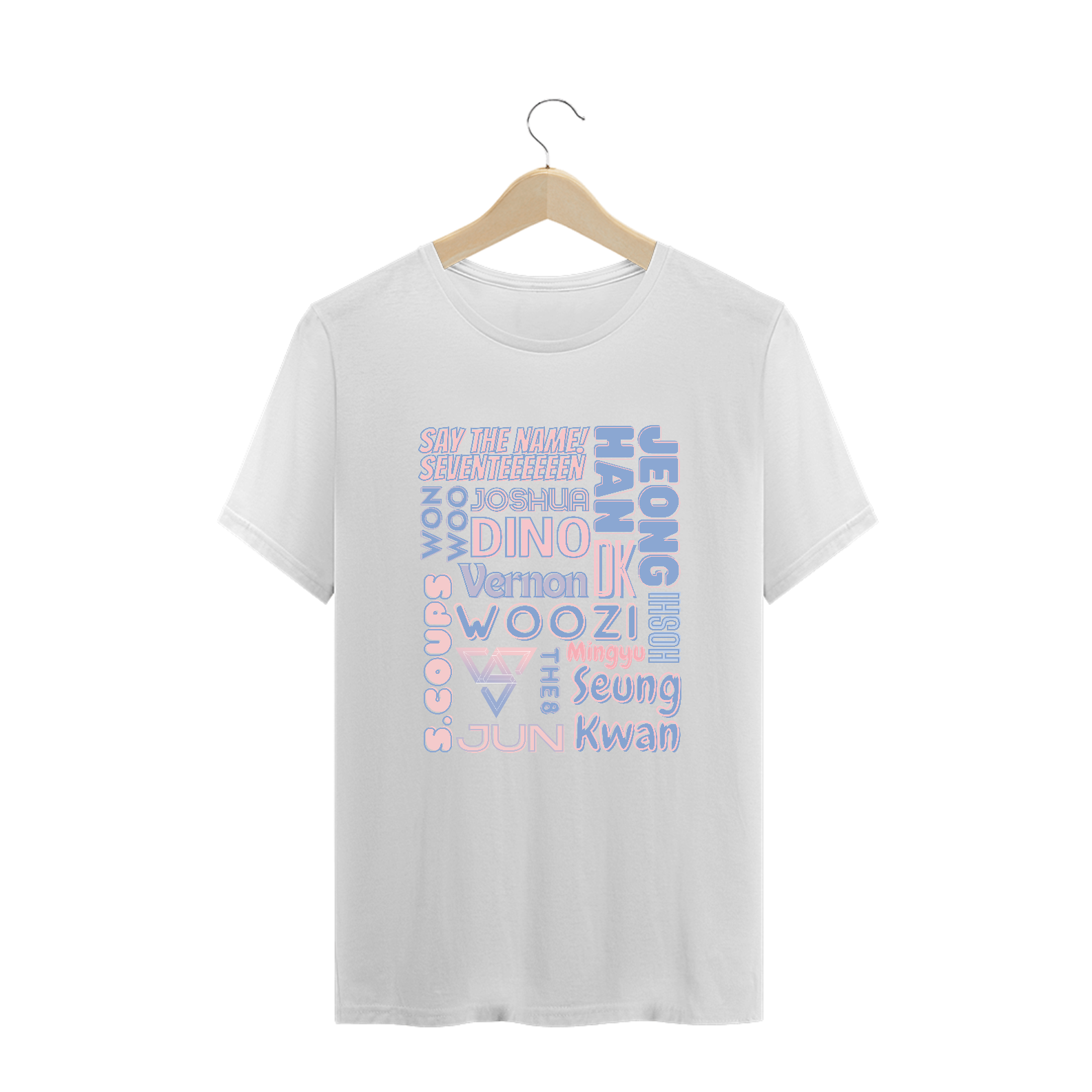 Esta camiseta plus size foi especialmente projetada para os fãs do Seventeen que valorizam o conforto e o estilo. Com os nomes dos 13 membros do grupo estampados de forma elegante, esta camiseta é perfeita para todos os tamanhos. Feita com tecido macio e de alta qualidade, você se sentirá confiante e estiloso enquanto mostra seu amor pelo Seventeen. Seja você mesmo e vista-se com orgulho com esta camiseta plus size.