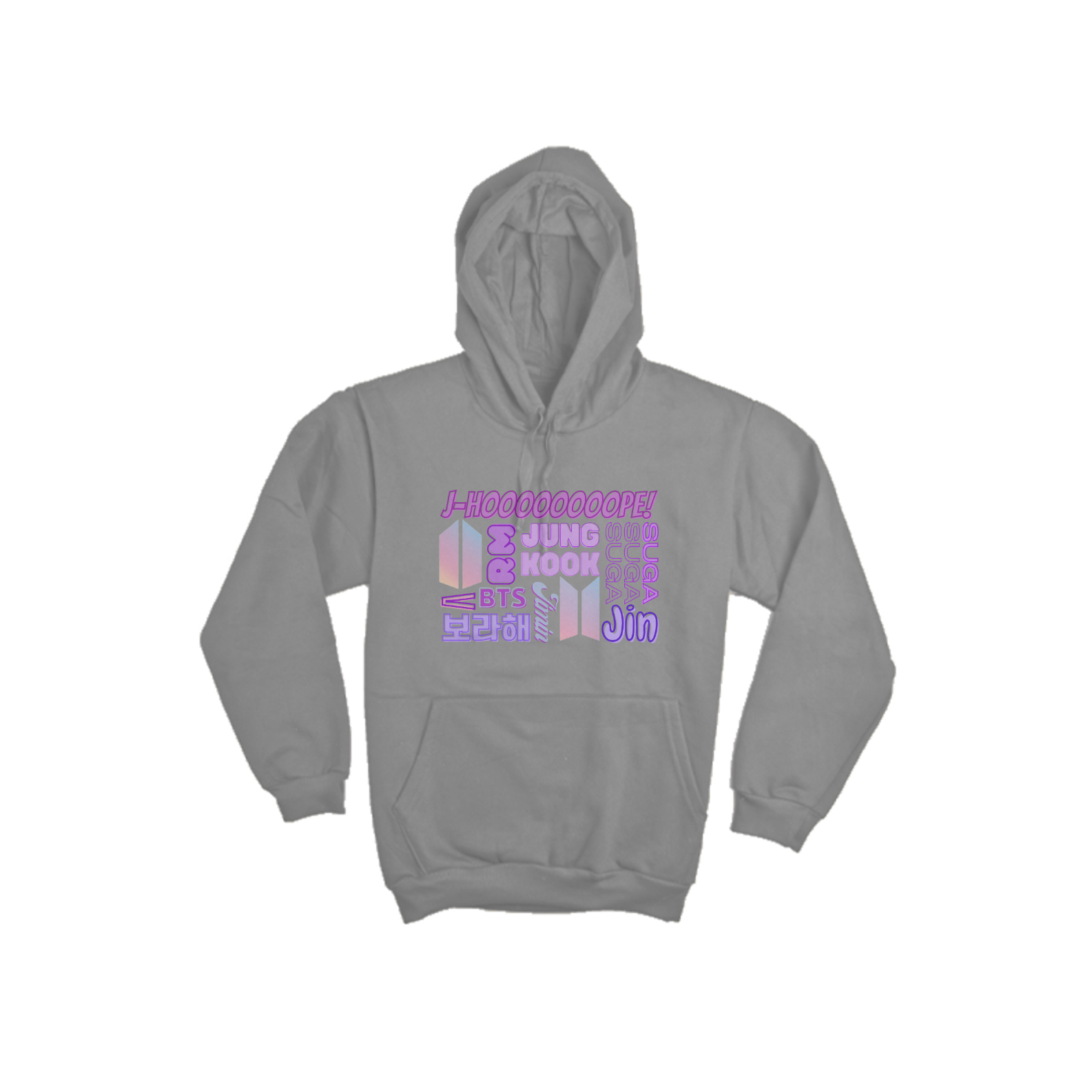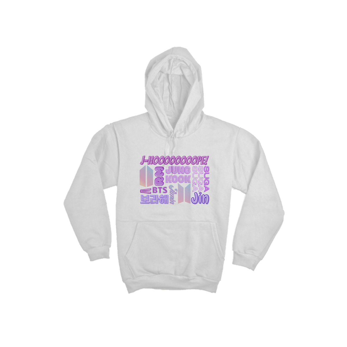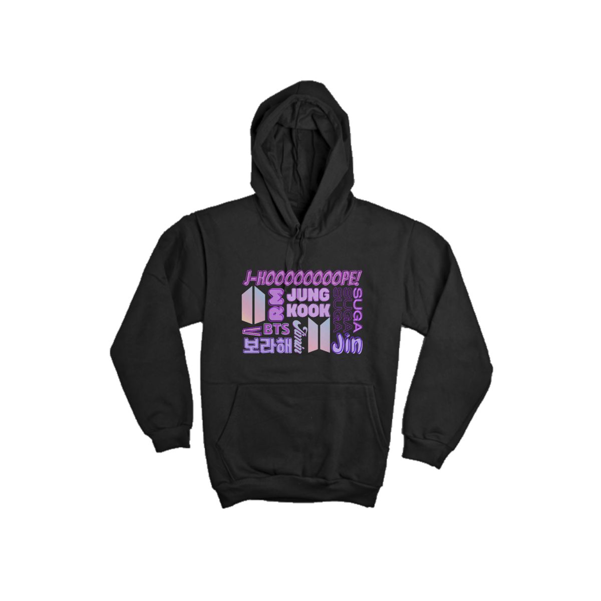 Este moletom canguru é um must-have para os fãs do BTS! Com os nomes dos sete membros - RM, Jin, Suga, J-Hope, Jimin, V e Jungkook - estampados de forma impressionante na frente, você estará mostrando seu apoio ao grupo mais icônico da música coreana. Além de ser estiloso, este moletom é incrivelmente confortável e perfeito para os fãs apaixonados.