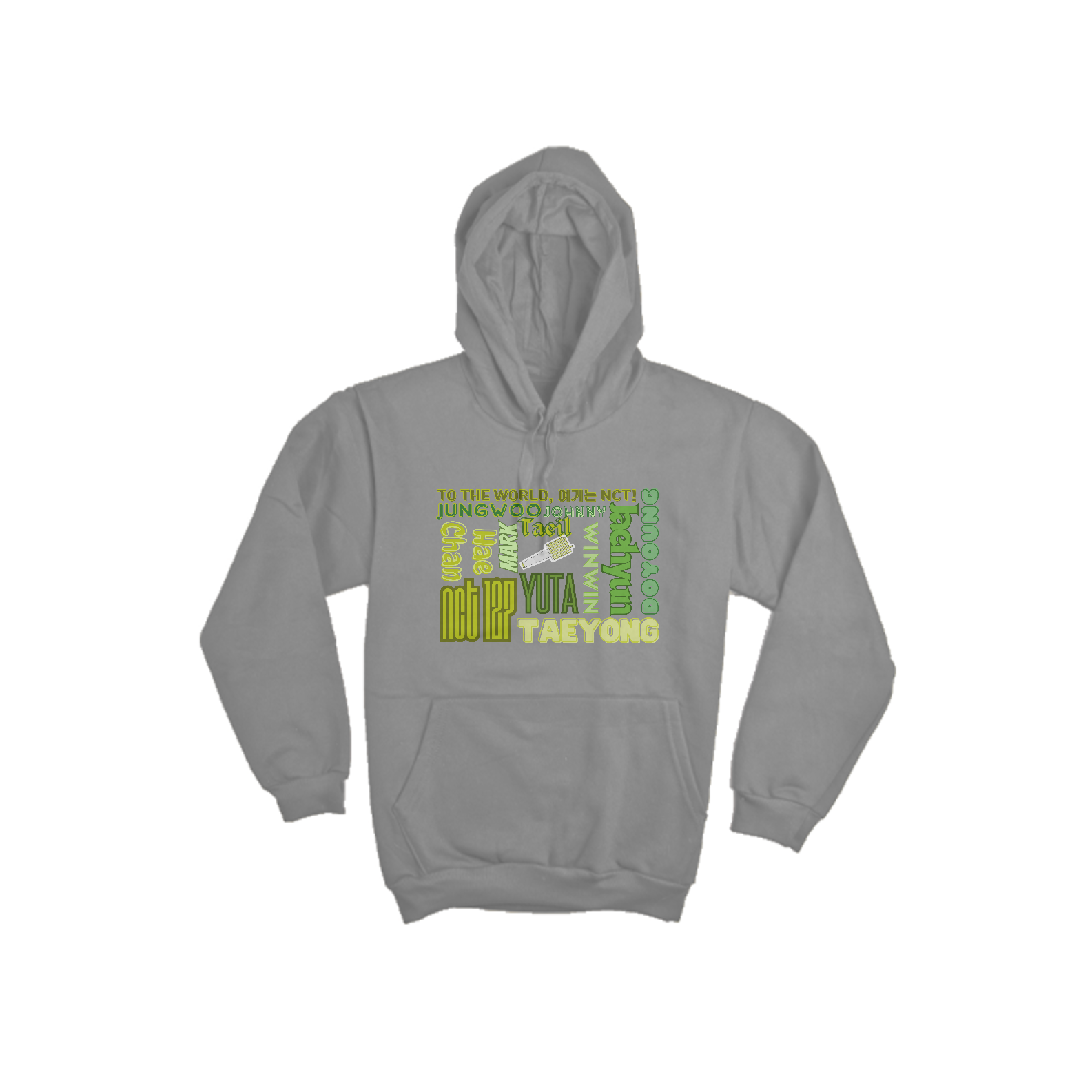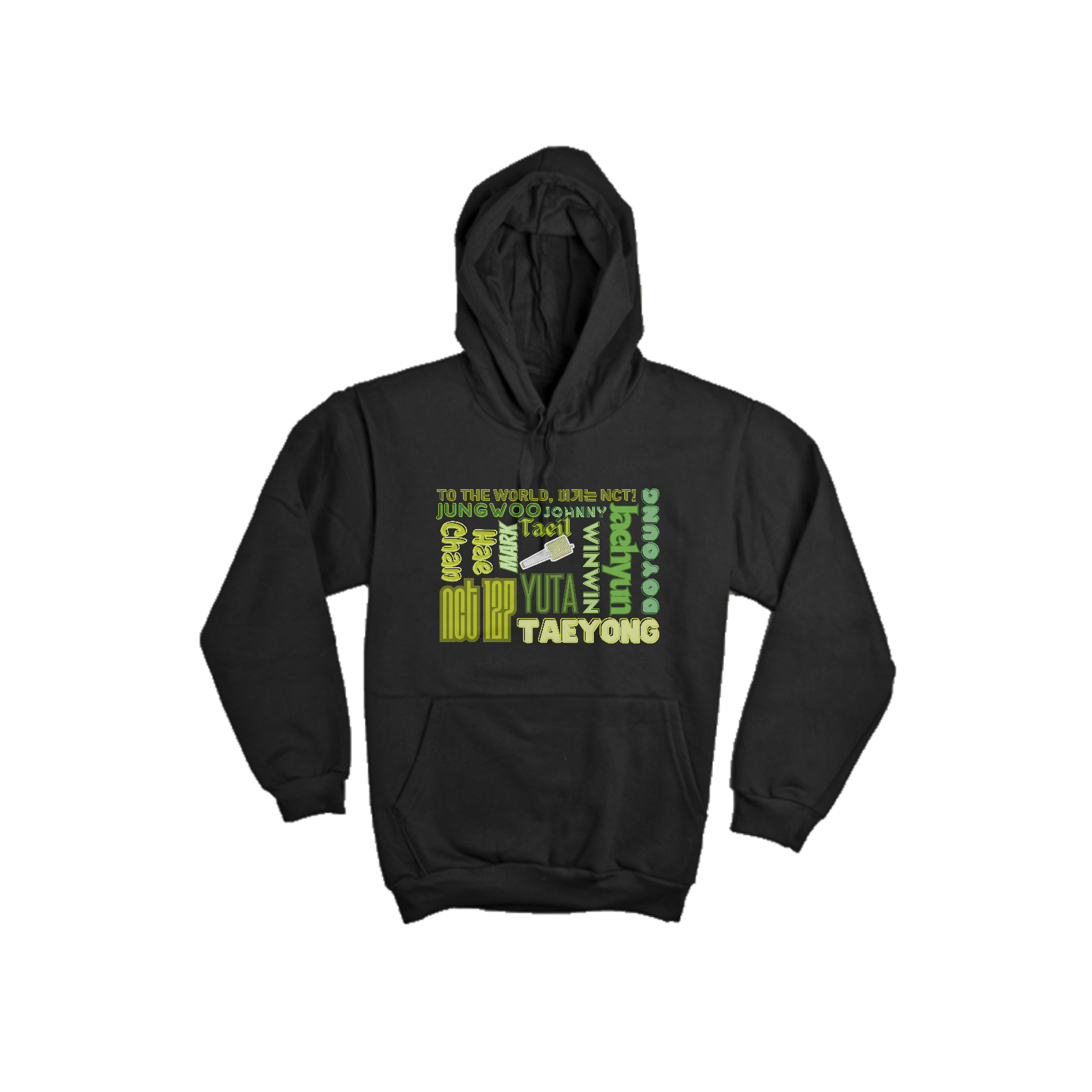Se você é um NCTzen, este moletom canguru é para você! Com os nomes dos membros do NCT 127 - Taeyong, Taeil, Johnny, Yuta, Doyoung, Jaehyun, Jungwoo, Mark e Haechan - estampados com elegância, você estará vestindo seu amor pelo grupo de forma orgulhosa. Fique quentinho e mostre seu apoio ao NCT 127 com este agasalho incrível!