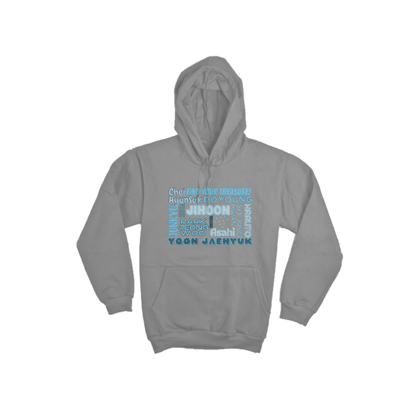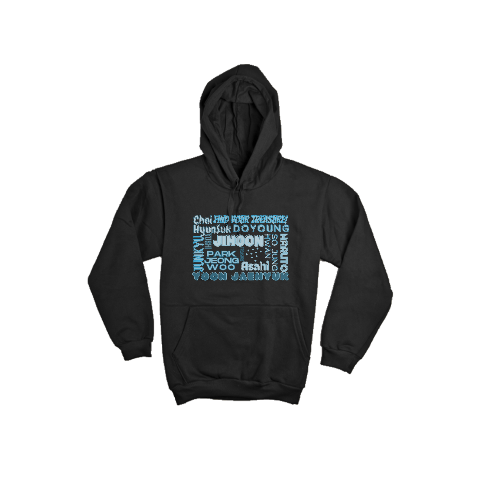 Mantenha-se quente e aconchegante enquanto exibe seu apoio ao TREASURE com este moletom canguru. Apresentando os nomes dos membros do grupo, este moletom é perfeito para os fãs que desejam conforto e estilo. Prepare-se para enfrentar o frio com muito carinho pelo TREASURE!