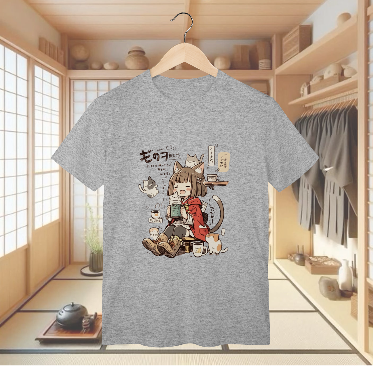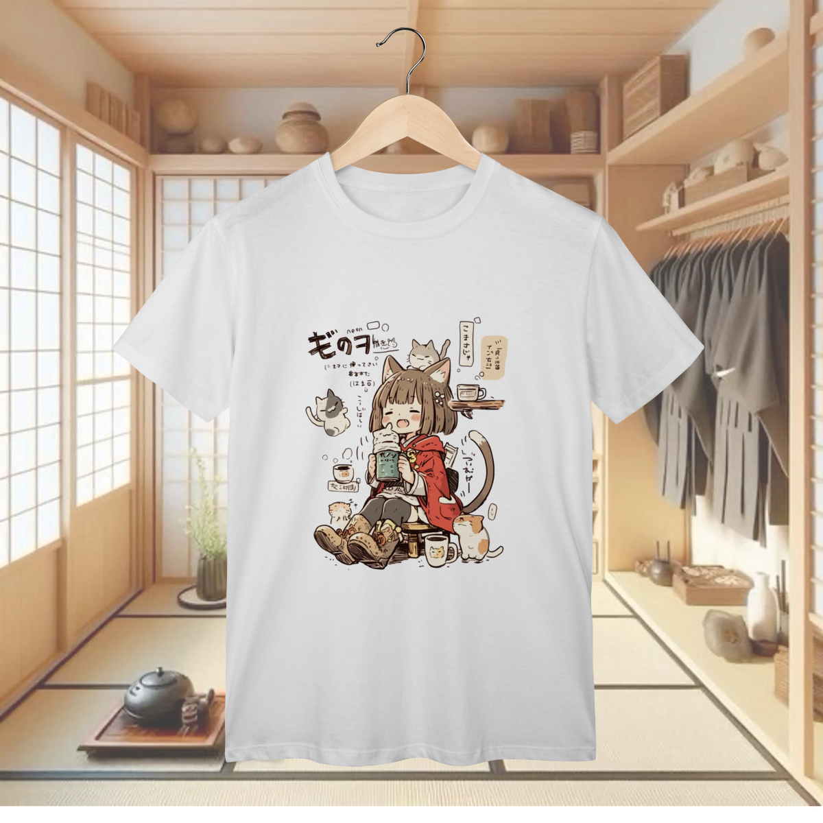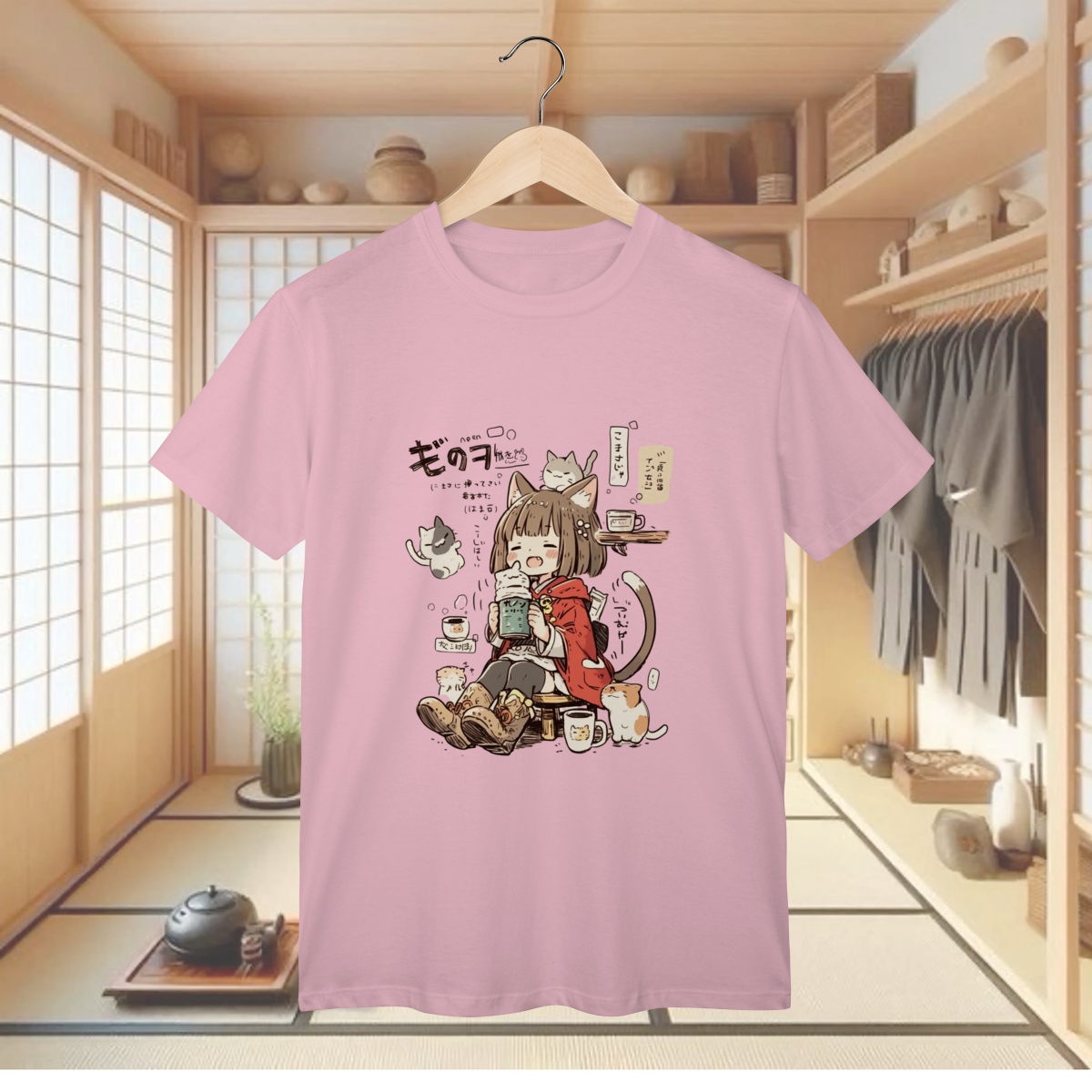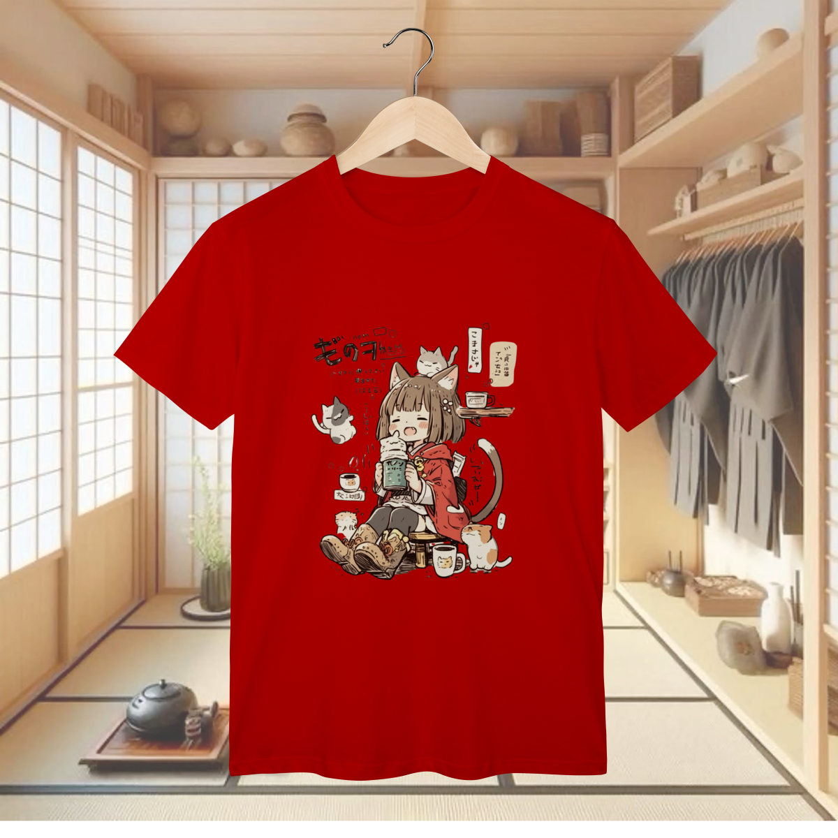 Prepare-se para uma overdose de fofura e cafeína com a T-shirt Classic "CAT CAFÉ DAY"! Esta camiseta traz a cena mais aconchegante e kawaii que você verá hoje: uma garota com orelhinhas de gato (a catgirl dos seus sonhos!) relaxando em um café, rodeada pelos gatinhos mais adoráveis do mundo! Se você é fã de anime, adora a companhia de felinos fofinhos e entende que a vida é melhor com uma boa xícara de café (e muitos ronronados), esta estampa é o seu novo vício fashion! É a peça perfeita para um visual descontraído, divertido e cheio de significado, mostrando que o seu dia ideal envolve muito chill, café e, claro, a companhia perfeita dos seus amigos peludos. Vista essa cena e sinta a serenidade e a alegria de um dia no cat café! E para garantir que você possa canalizar toda essa energia de forma confortável e durável, a T-shirt Classic é confeccionada em nosso Algodão Premium, utilizando o renomado Fio 24.1 Penteado. Este fio é sinônimo de excelente resistência, toque macio e uma textura encorpada, ideal para o uso diário. O processo de pentear elimina as impurezas, o que resulta em um tecido de qualidade superior, ótimo caimento e que mantém as cores vibrantes e a energia kawaii desta arte intactas, mesmo depois de muitos cafés e sonecas com seus gatinhos.