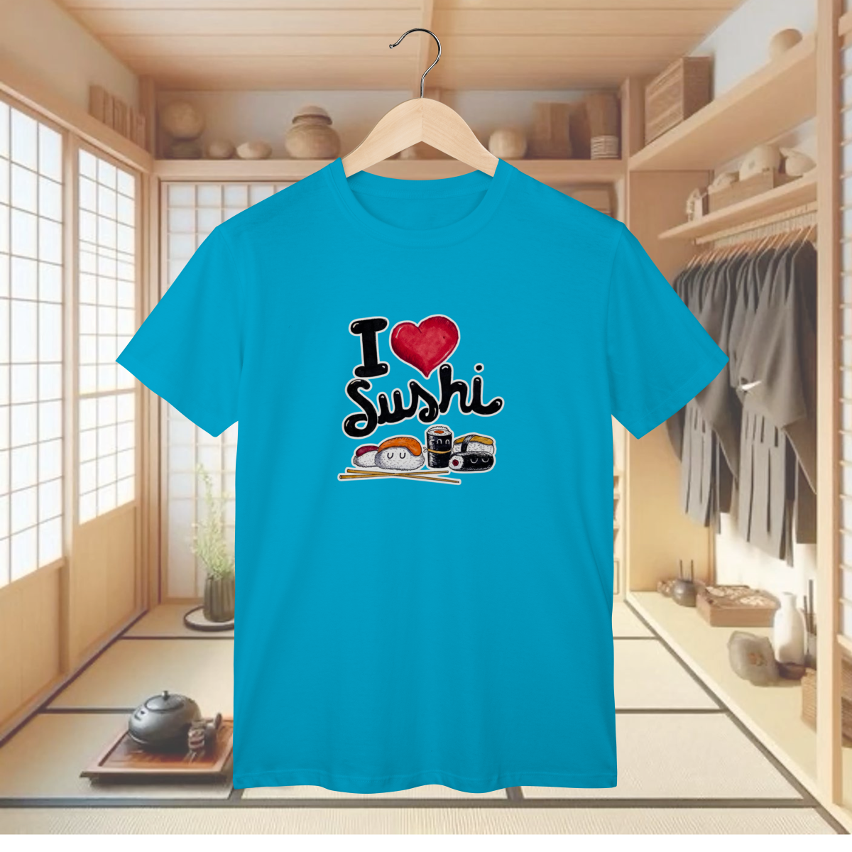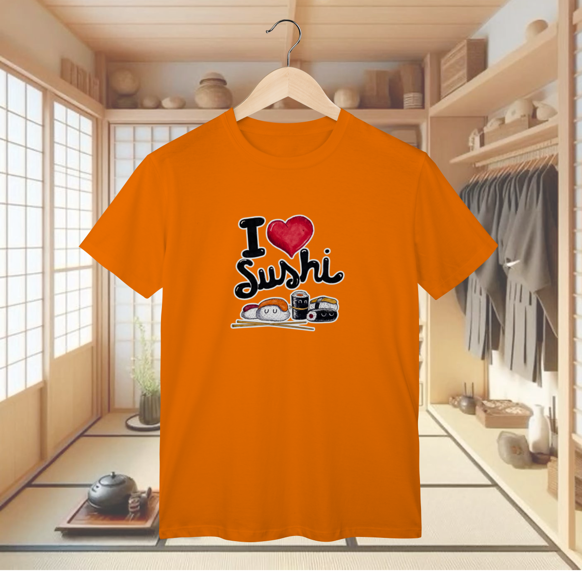 Prepare-se para derreter de fofura (e de fome!) com a T-shirt Classic "I LOVE SUSHI - O SONO DO NIGIRI"! Esta camiseta é a declaração de amor mais deliciosa que você pode vestir, celebrando o seu relacionamento sério com a melhor invenção japonesa: o Sushi! Esta estampa mostra que o amor verdadeiro tem forma de coração e sabor de salmão fresco. Apresentando diversos niguiris e rolls com carinhas kawaii, alguns até dormindo pacificamente após o seu grande sacrifício, esta peça é perfeita para quem tem um rodízio no coração e não consegue resistir à tentação. Se você já sonhou em abraçar um uramaki e sabe que a felicidade é um prato cheio, esta é a sua nova favorita! Vista este visual descontraído, divertido e prepare-se para ser o alvo de muitos elogios. E para garantir que você possa canalizar toda essa energia de forma confortável e durável, a T-shirt Classic é confeccionada em nosso Algodão Premium, utilizando o renomado Fio 24.1 Penteado. Este fio é sinônimo de excelente resistência, toque macio e uma textura encorpada, ideal para o uso diário. O processo de pentear elimina as impurezas, o que resulta em um tecido de qualidade superior, ótimo caimento e que mantém as cores vibrantes e o bom humor desta declaração de amor intactos.