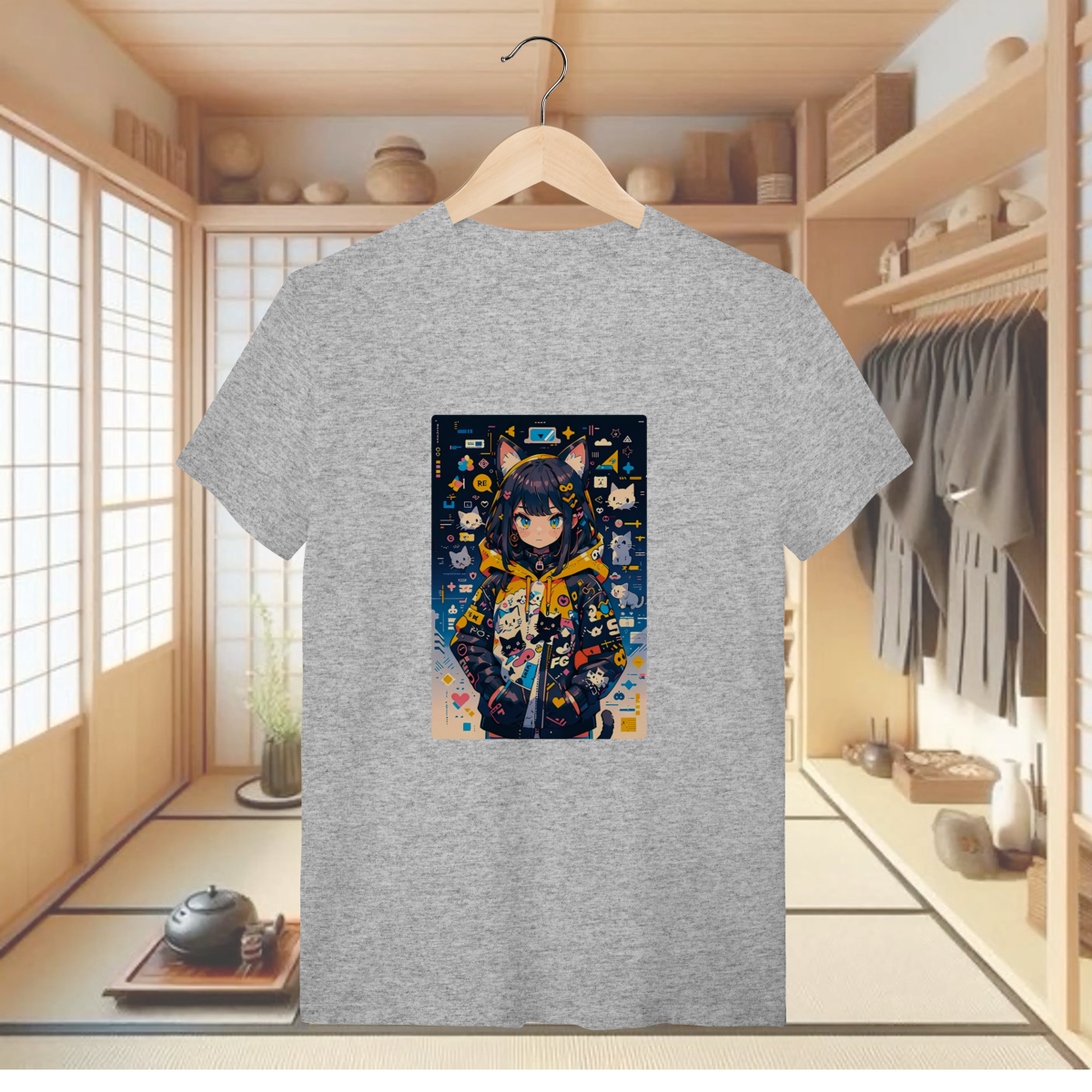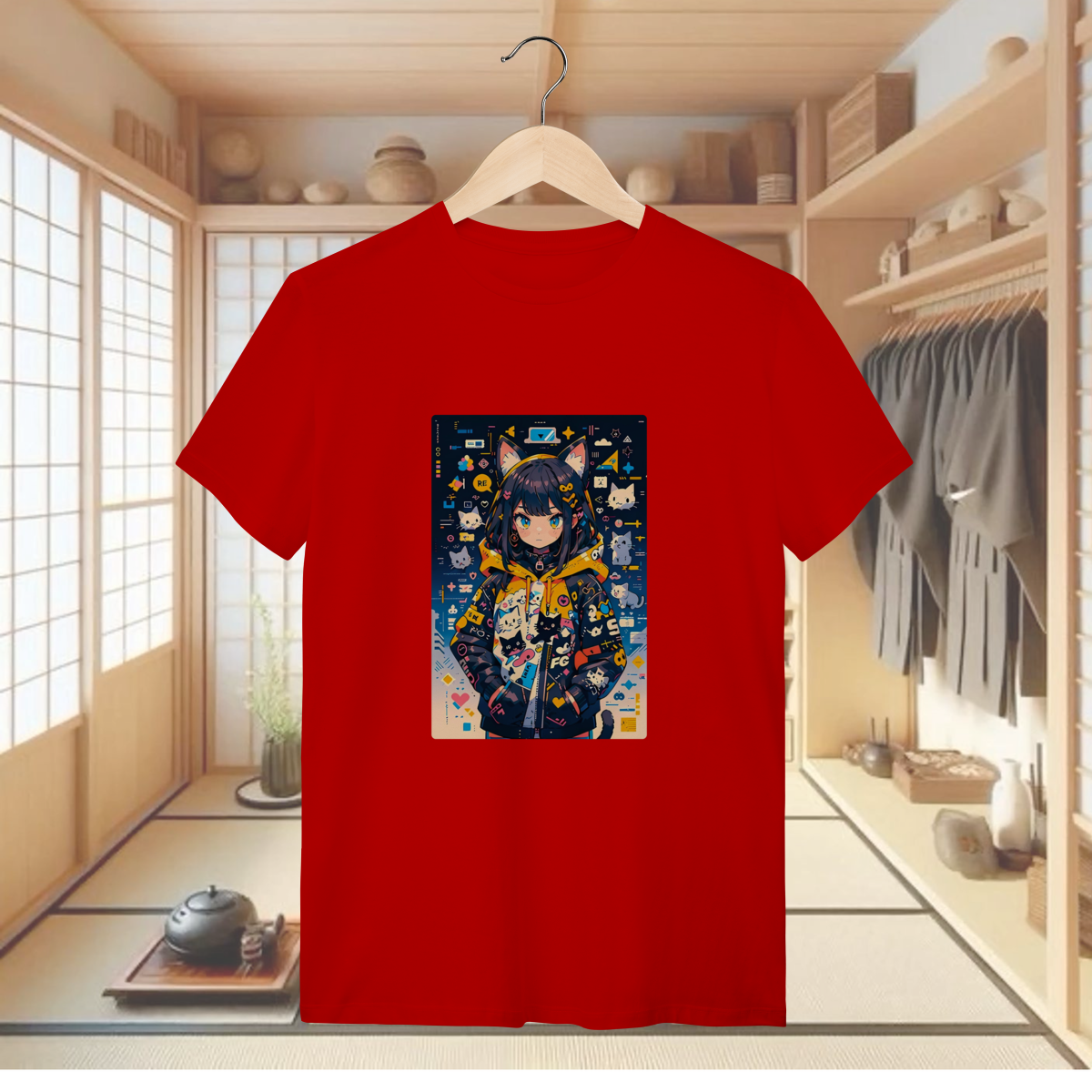 Prepare-se para roubar a cena (e talvez alguns petiscos) com a T-shirt Quality "CAT FASHIONISTA"! Esta camiseta traz uma garota em estilo anime que é a própria definição de tendência e fofura geek, com suas orelhas de gato e uma jaqueta que é um festival de gatos e gráficos pop. Se você é fã da cultura kawaii, adora um look que transborda personalidade e vive conectada no universo da moda e dos games, esta estampa é o seu novo item lendário. É a peça perfeita para um visual divertido, moderno e cheio de atitude, mostrando que o seu estilo é tão único quanto sua coleção de memes. Vista essa cat-girl e prepare-se para ser o ícone fashion da sua galera! E para garantir que você possa canalizar toda essa energia com o máximo conforto e qualidade, a camiseta é confeccionada com o nosso Fio 30.1 Penteado. Este é o material premium que oferece um toque excepcionalmente macio, leveza ideal e um caimento impecável. O processo de pentear elimina as impurezas, resultando em um tecido mais resistente e durável, que mantém as cores vibrantes e o charme desta fashionista intactos por muitos looks e selfies.