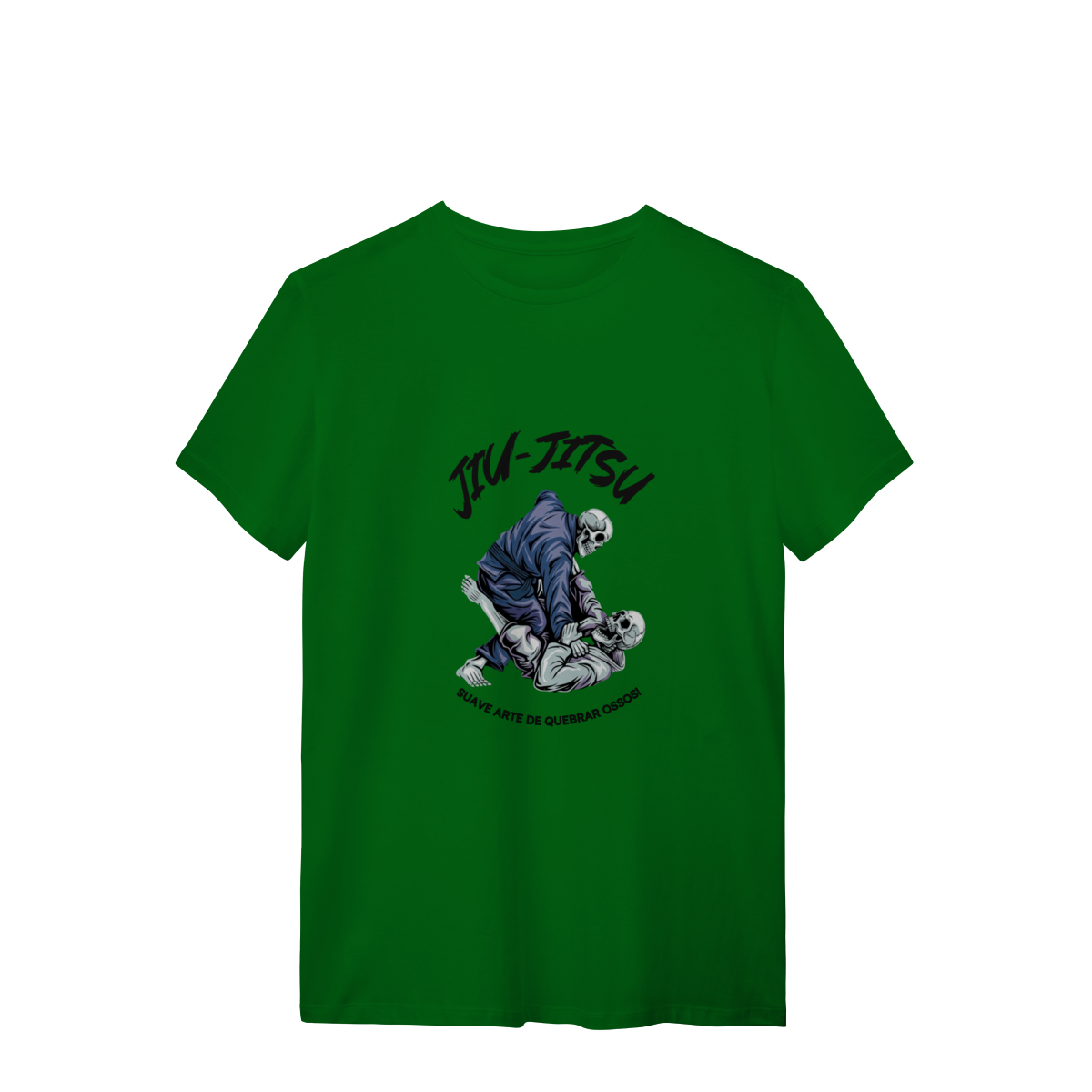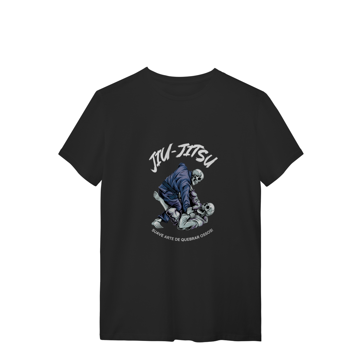 Sabe aquela sensação de que seus ossos estão sendo rearranjados por um colega de treino? A T-shirt Quality JIU-JITSU traduz esse carinho bruto. Com dois esqueletos finalizando um ao outro, ela mostra que a "suave arte" segue viva até no além. Look ideal para quem já se sente um conjunto de ossos ambulantes após o treino. Para garantir conforto total, esta peça é feita com o Fio 30.1 Penteado. Nosso Algodão Premium oferece toque macio e caimento impecável. O processo de pentear remove impurezas, gerando um tecido mais resistentedurável, que mantém as cores e a estampa épica por muito tempo.