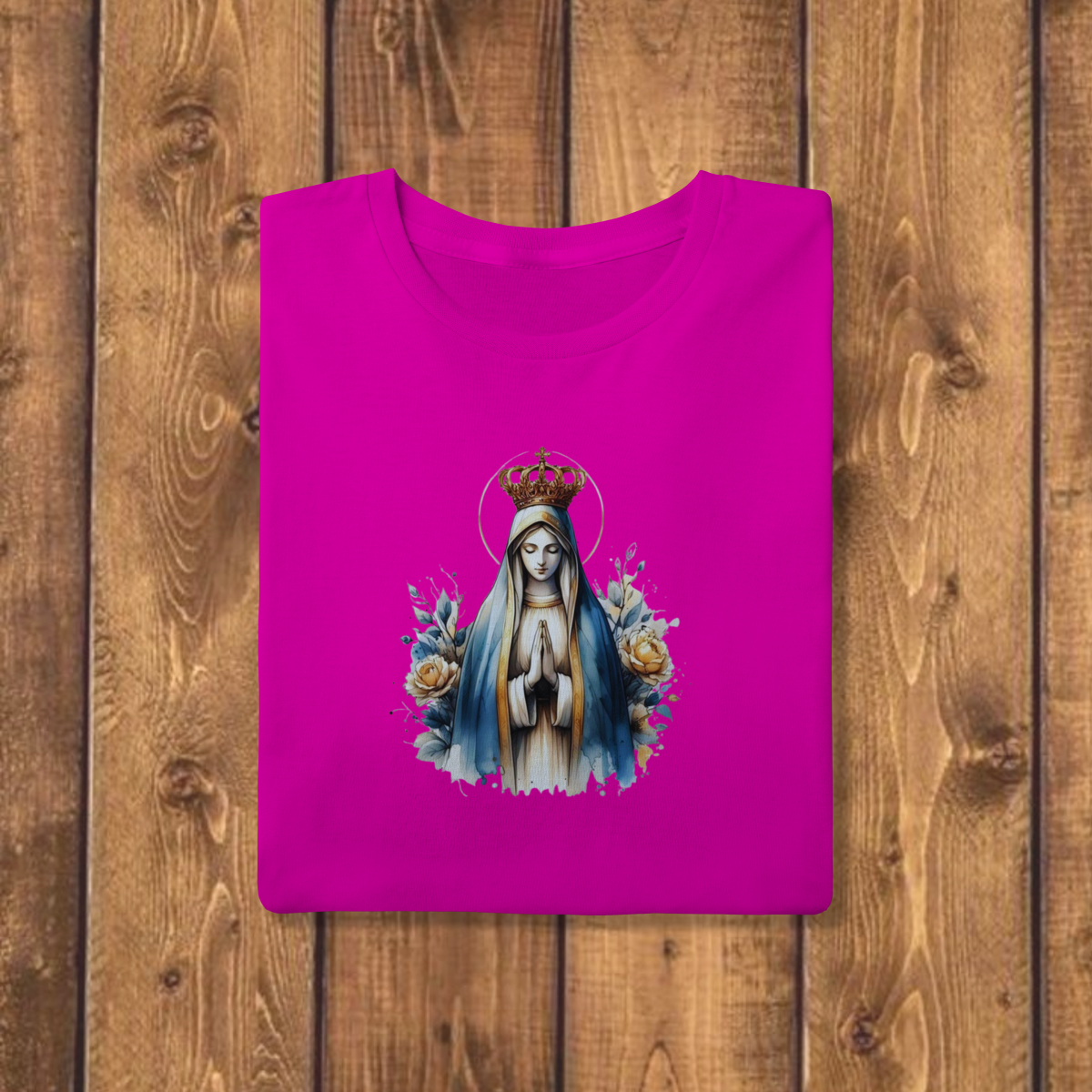 Vista a sua devoção e honra à Mãe de Deus com a T-shirt Quality "NOSSA SENHORA". Esta peça apresenta a Virgem Maria coroada em uma bela arte em aquarela, transmitindo serenidade, pureza e a profunda graça de sua intercessão. A imagem da Mãe da Igreja em oração, rodeada por flores, é um poderoso símbolo de fé, amor e proteção maternal. Usar esta camiseta é uma forma de expressar seu carinho e reverência a Maria, lembrando-se constantemente do seu exemplo de humildade e obediência. É a escolha ideal para quem busca manifestar sua convicção católica com beleza, dignidade e respeito. Perfeita para te acompanhar em romarias, missas ou no dia a dia, como um sinal de fé. Para garantir que esta representação de amor seja vestida com o máximo conforto e durabilidade, a T-shirt Quality é confeccionada em nosso Algodão Premium, utilizando o renomado Fio 30.1 Penteado. Este material premium oferece um toque excepcionalmente macio, leveza ideal e um caimento impecável. O processo de pentear elimina as impurezas, o que resulta em um tecido mais resistente e durável, que mantém a integridade da arte e a pureza das cores por muito tempo.