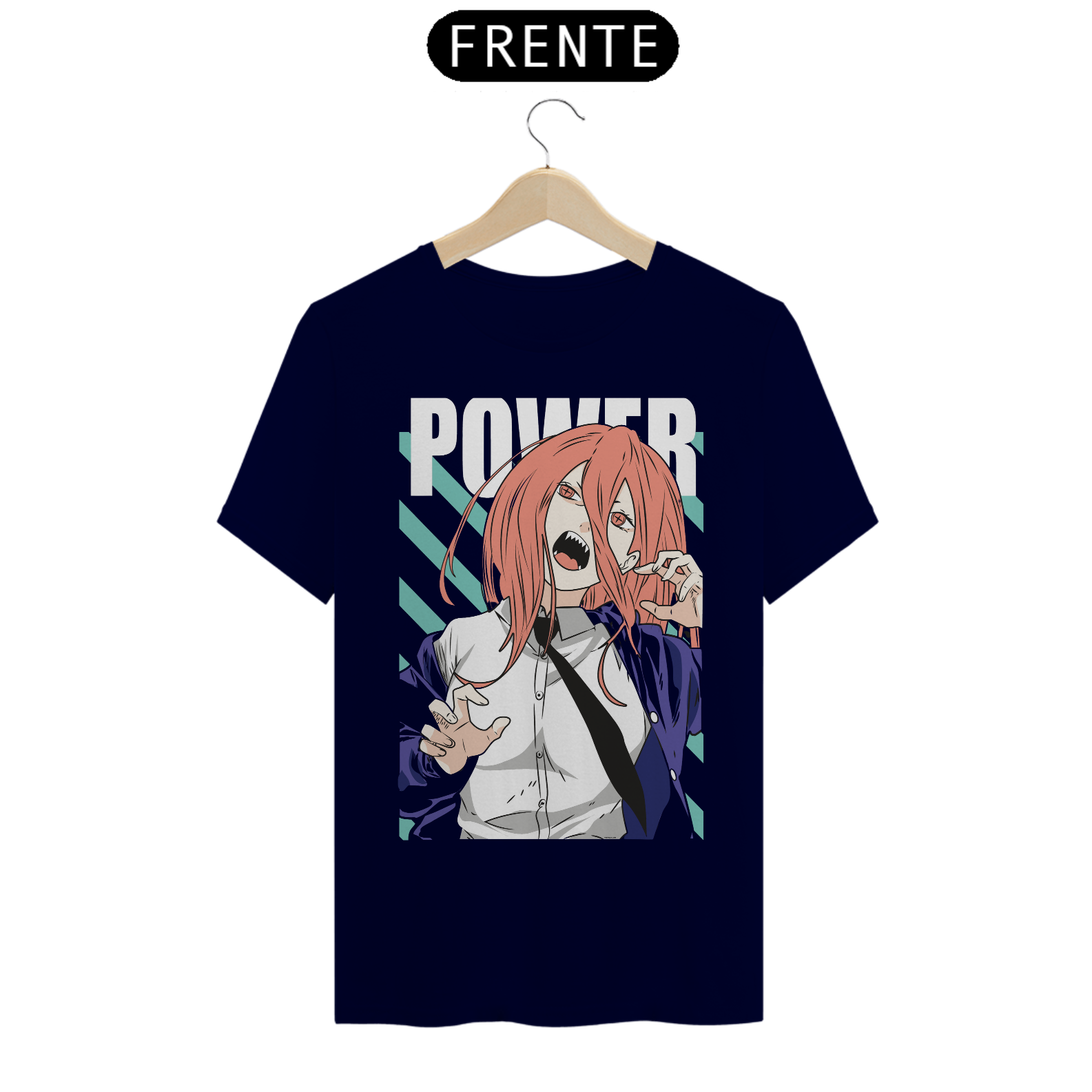 Design Exclusivo: A estampa detalhada de Power captura a essência da personagem, tornando-a uma peça indispensável para qualquer fã de "Chainsaw Man".