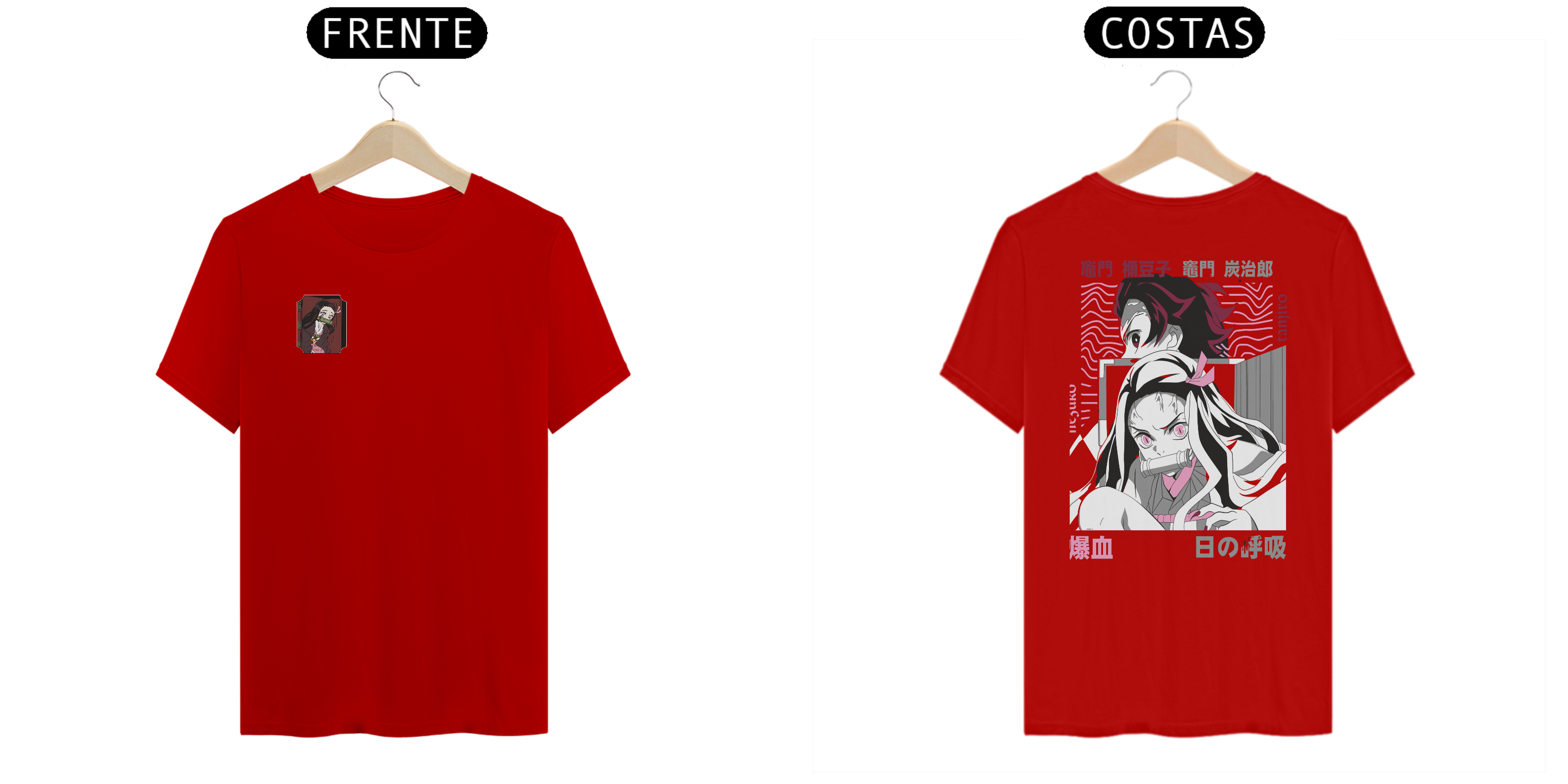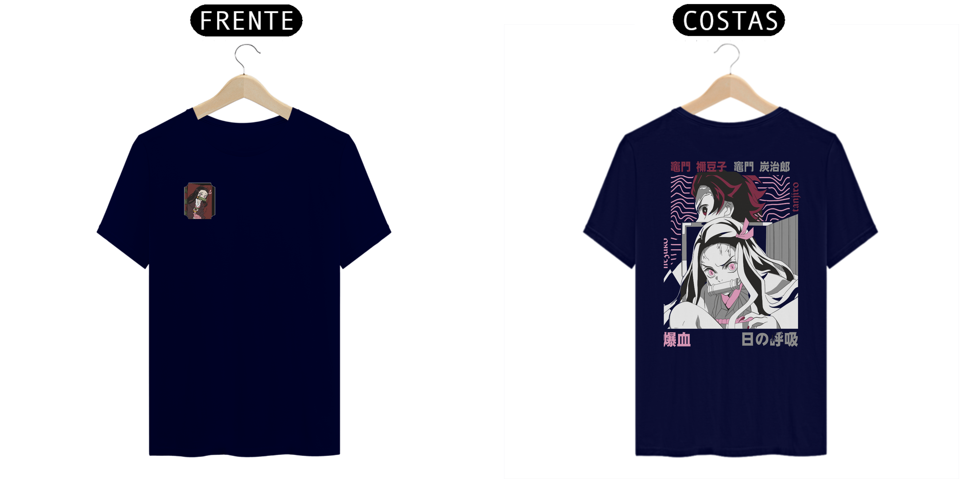 Adicione a camiseta de Tanjiro e Nezuko Kamado à sua coleção e celebre o espírito inabalável e a dedicação desses heróis! Seja parte do universo "Demon Slayer" e demonstre sua paixão pela série com estilo.