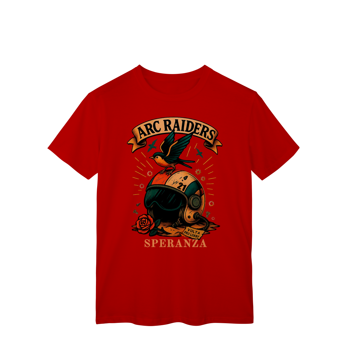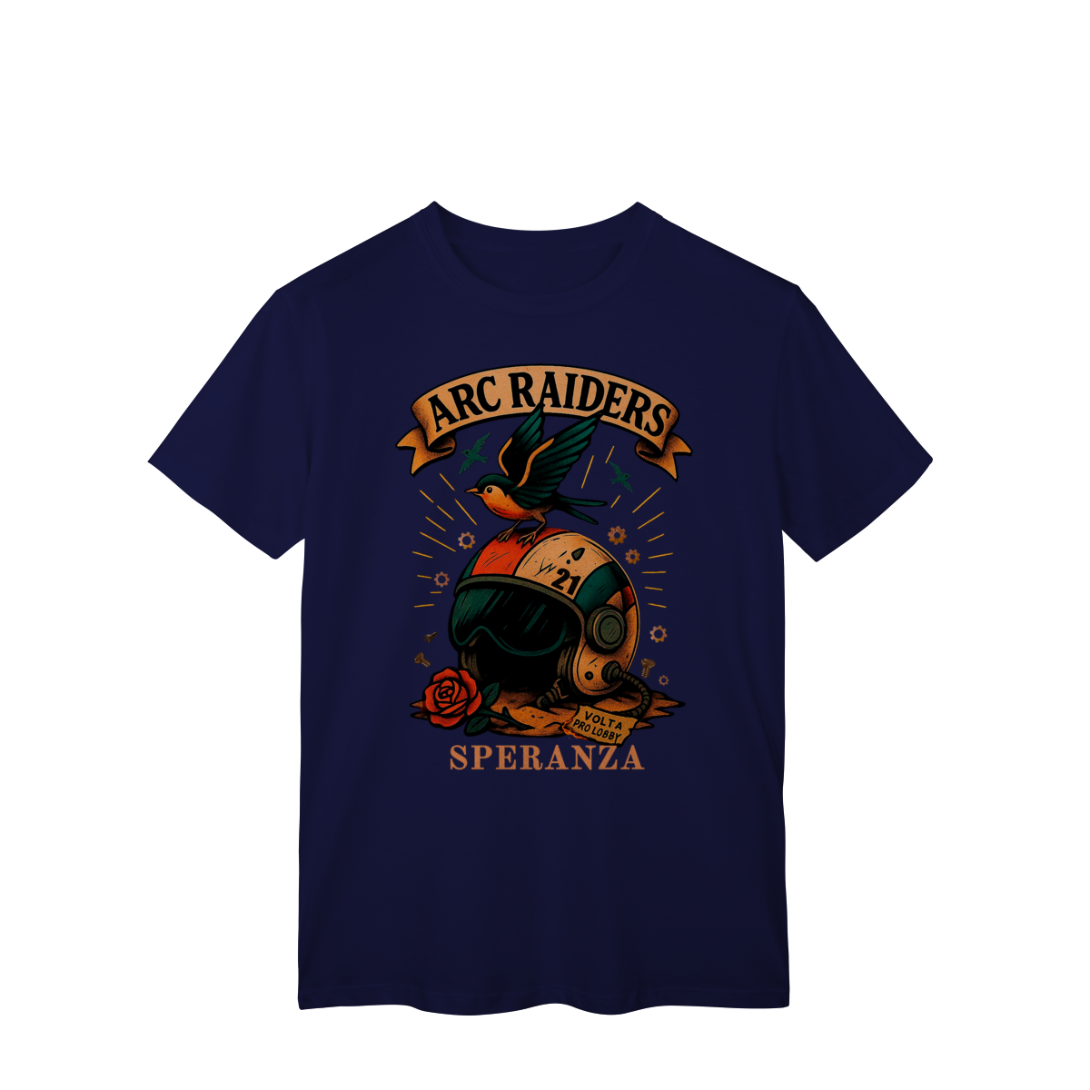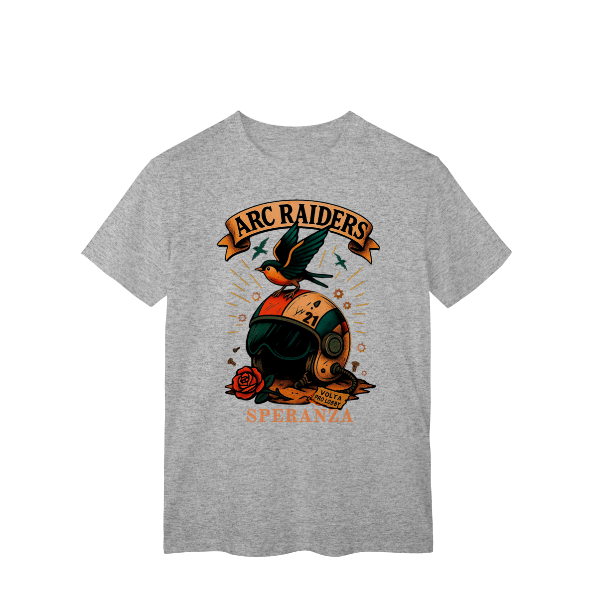 Camiseta Raiders 21 – Volta Pro Lobby Prepare-se para o respawn com estilo. A Camiseta Raiders 21 é inspirada no espírito dos jogadores que nunca desistem — aqueles que sempre voltam pro lobby prontos pra mais uma rodada. Com arte exclusiva no estilo retrô sci-fi, ela traz o emblema dos ARC Raiders, um símbolo de coragem, liberdade e esperança (Speranza). Perfeita para quem joga, coleciona ou simplesmente vive o universo geek.
