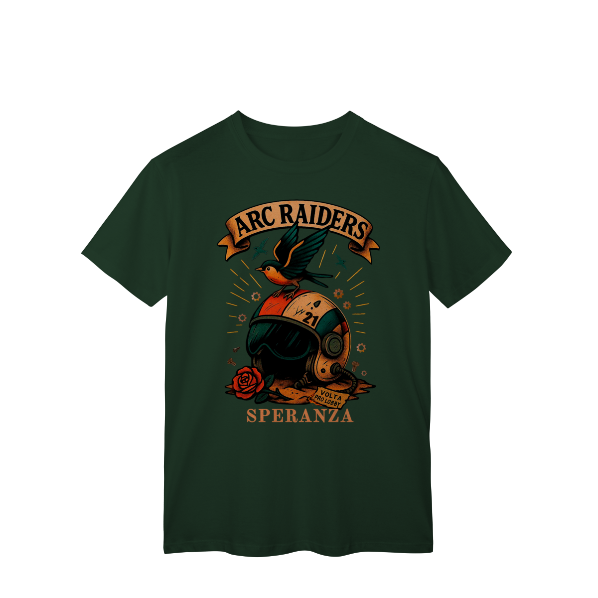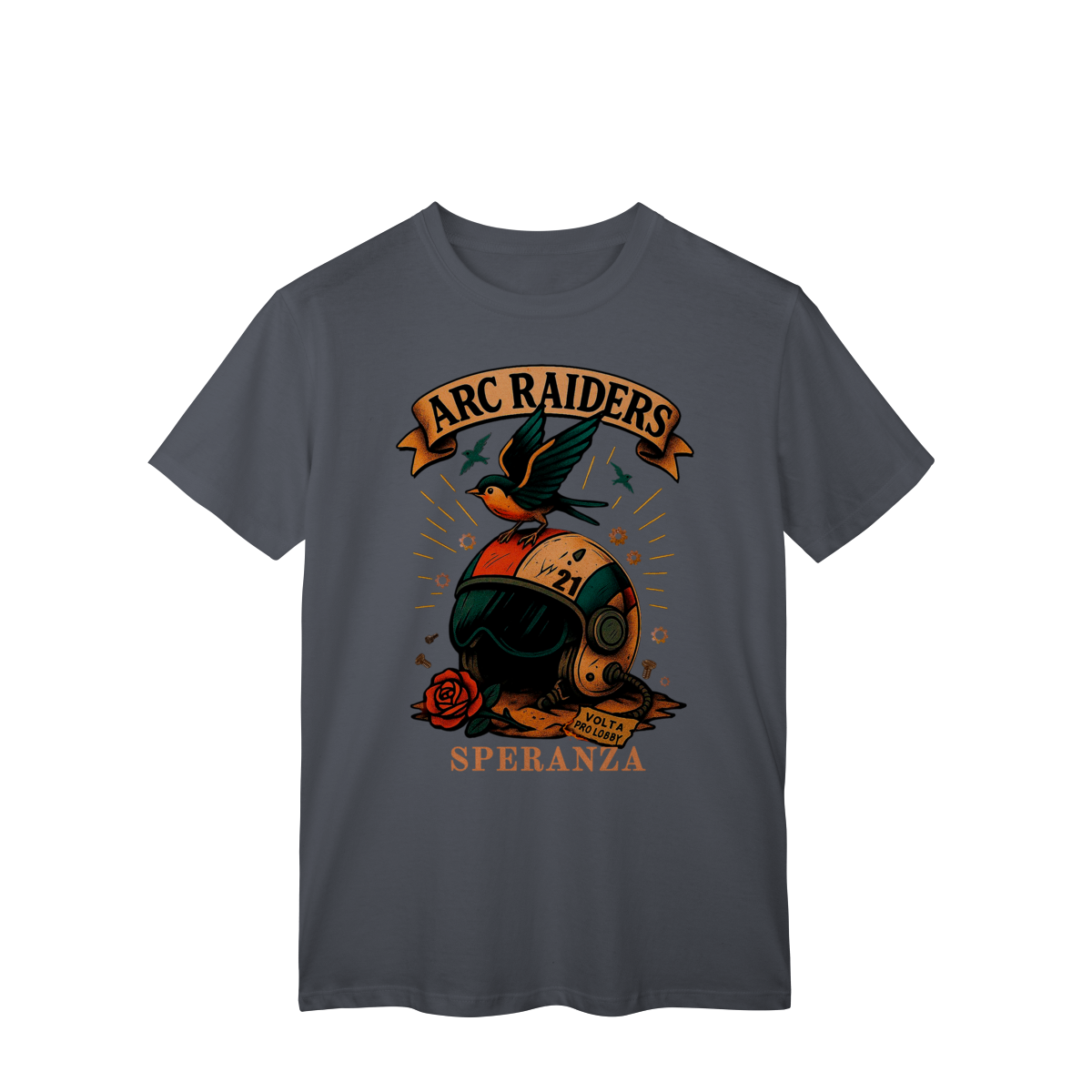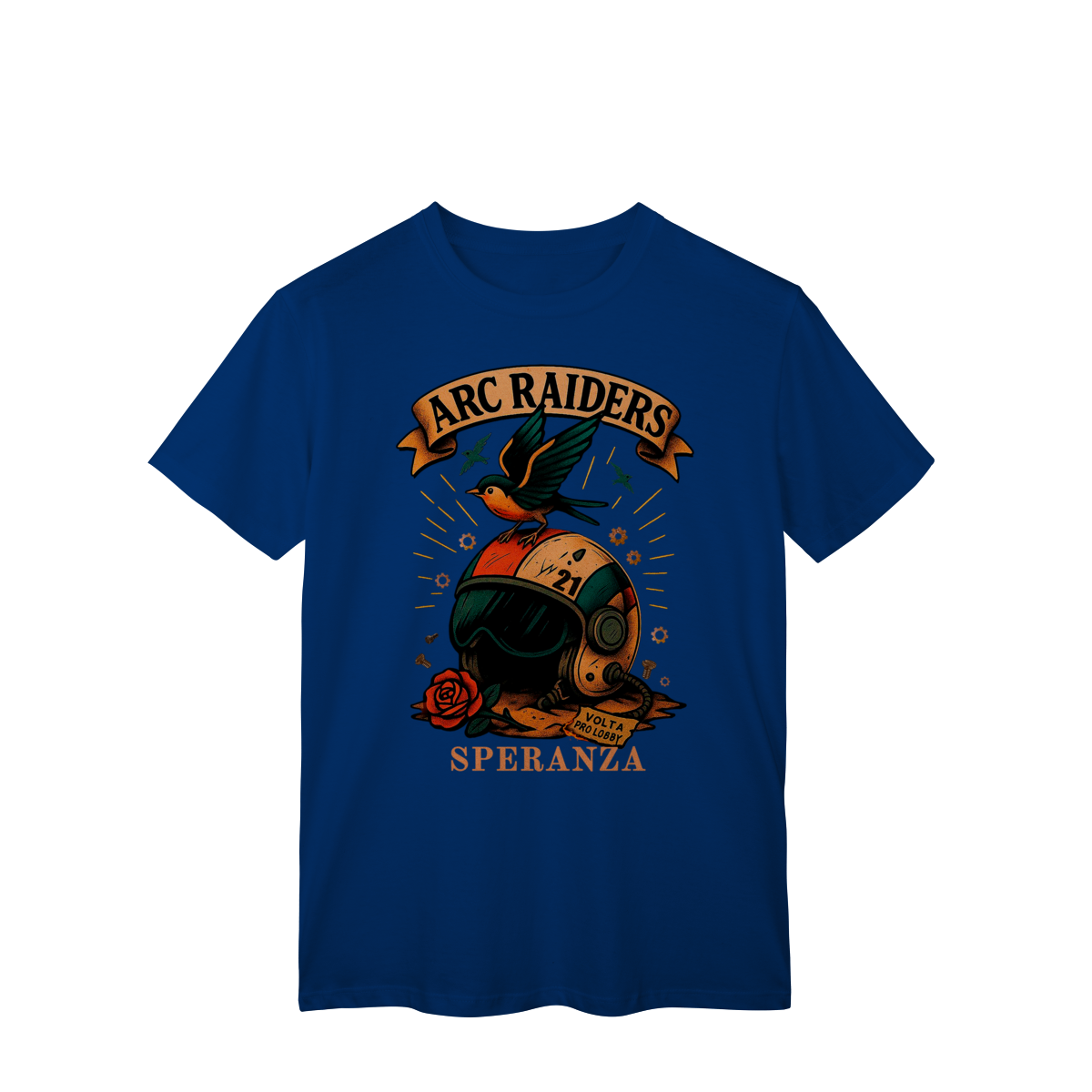 Camiseta Raiders 21 – Volta Pro Lobby Prepare-se para o respawn com estilo. A Camiseta Raiders 21 é inspirada no espírito dos jogadores que nunca desistem — aqueles que sempre voltam pro lobby prontos pra mais uma rodada. Com arte exclusiva no estilo retrô sci-fi, ela traz o emblema dos ARC Raiders, um símbolo de coragem, liberdade e esperança (Speranza). Perfeita para quem joga, coleciona ou simplesmente vive o universo geek.