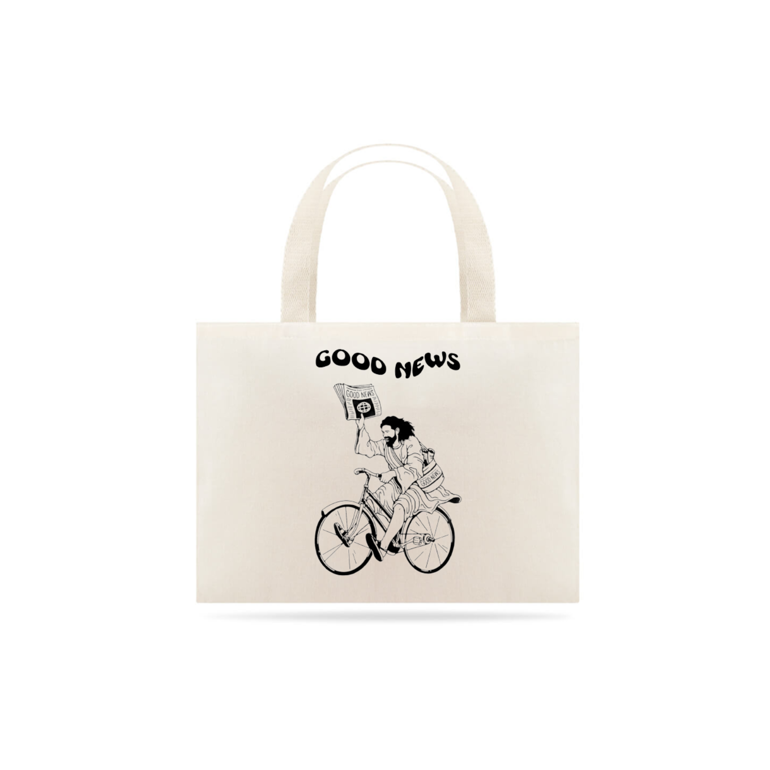 Estas ecobags foram criadas para aqueles que desejam carregar uma mensagem de fé enquanto cuidam do meio ambiente. Confeccionadas com materiais ecológicos, como algodão orgânico ou lona reciclável, elas são resistentes e perfeitas para o dia a dia. O design destaca a frase "Good News" em letras modernas e bem visíveis, transmitindo a confiança nos propósitos divinos e inspirando todos ao redor.