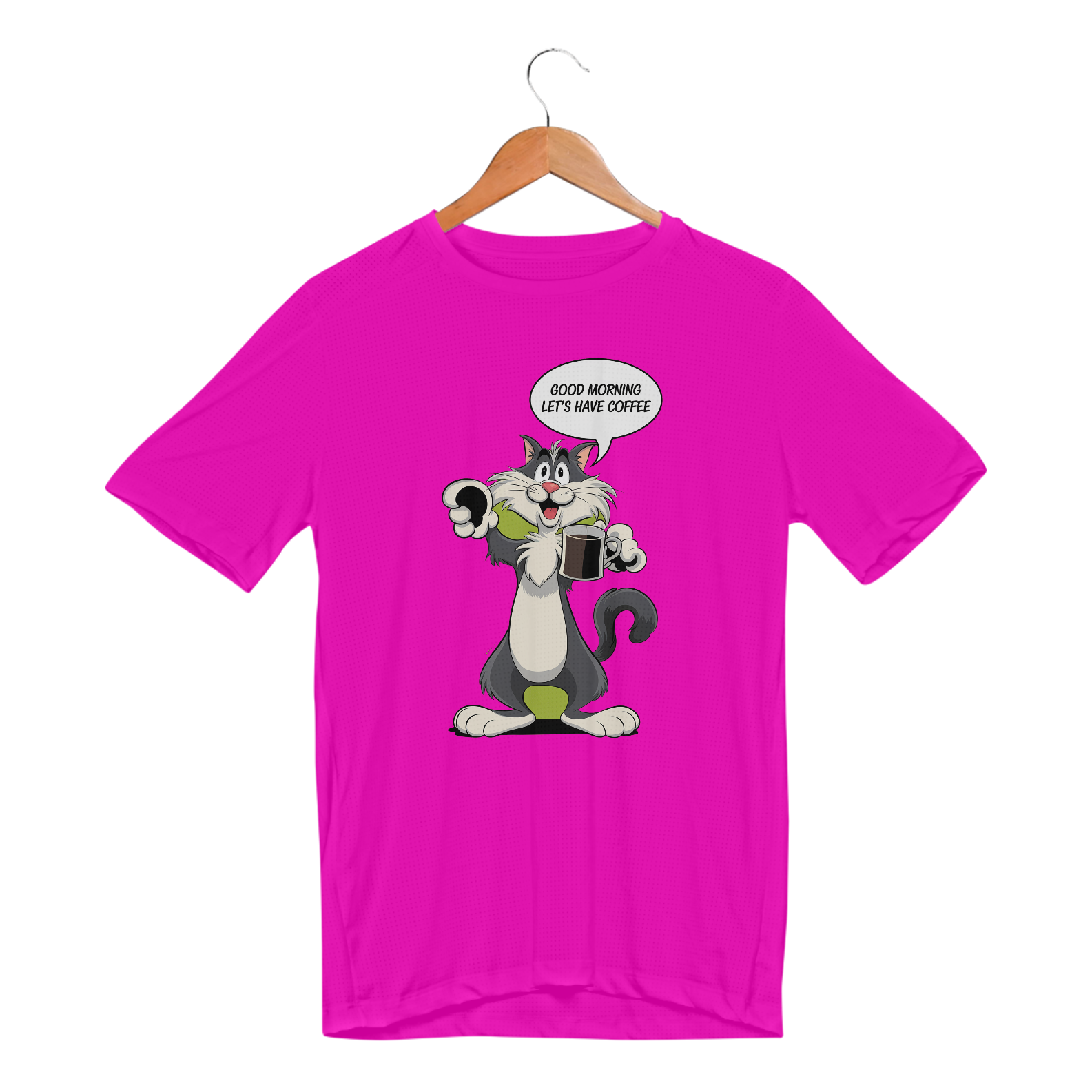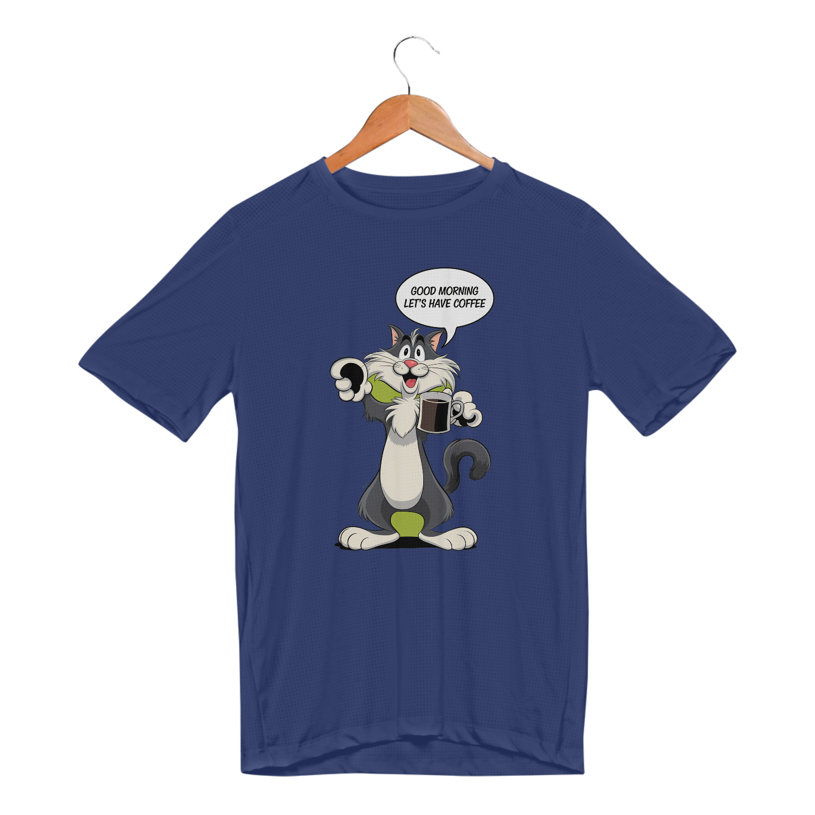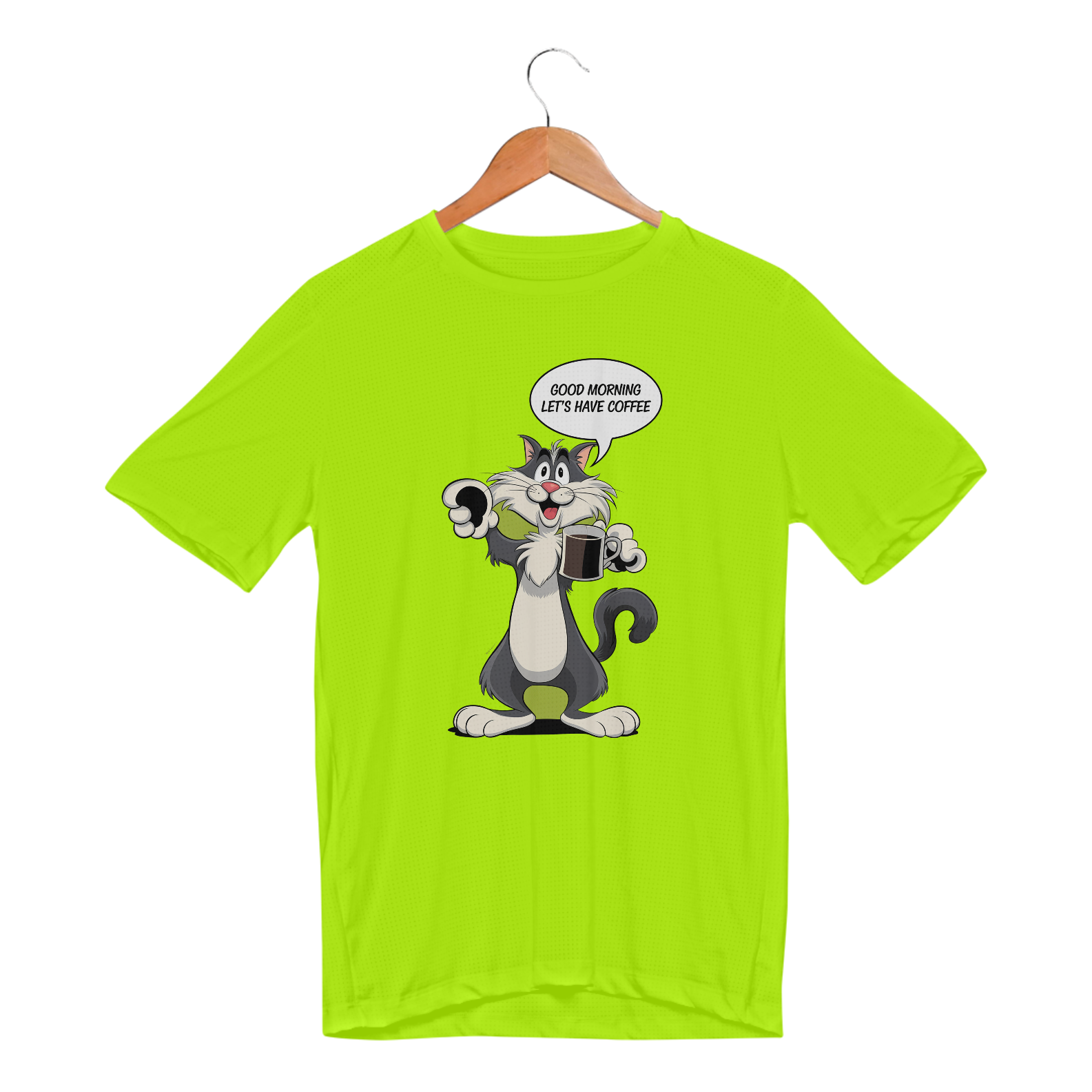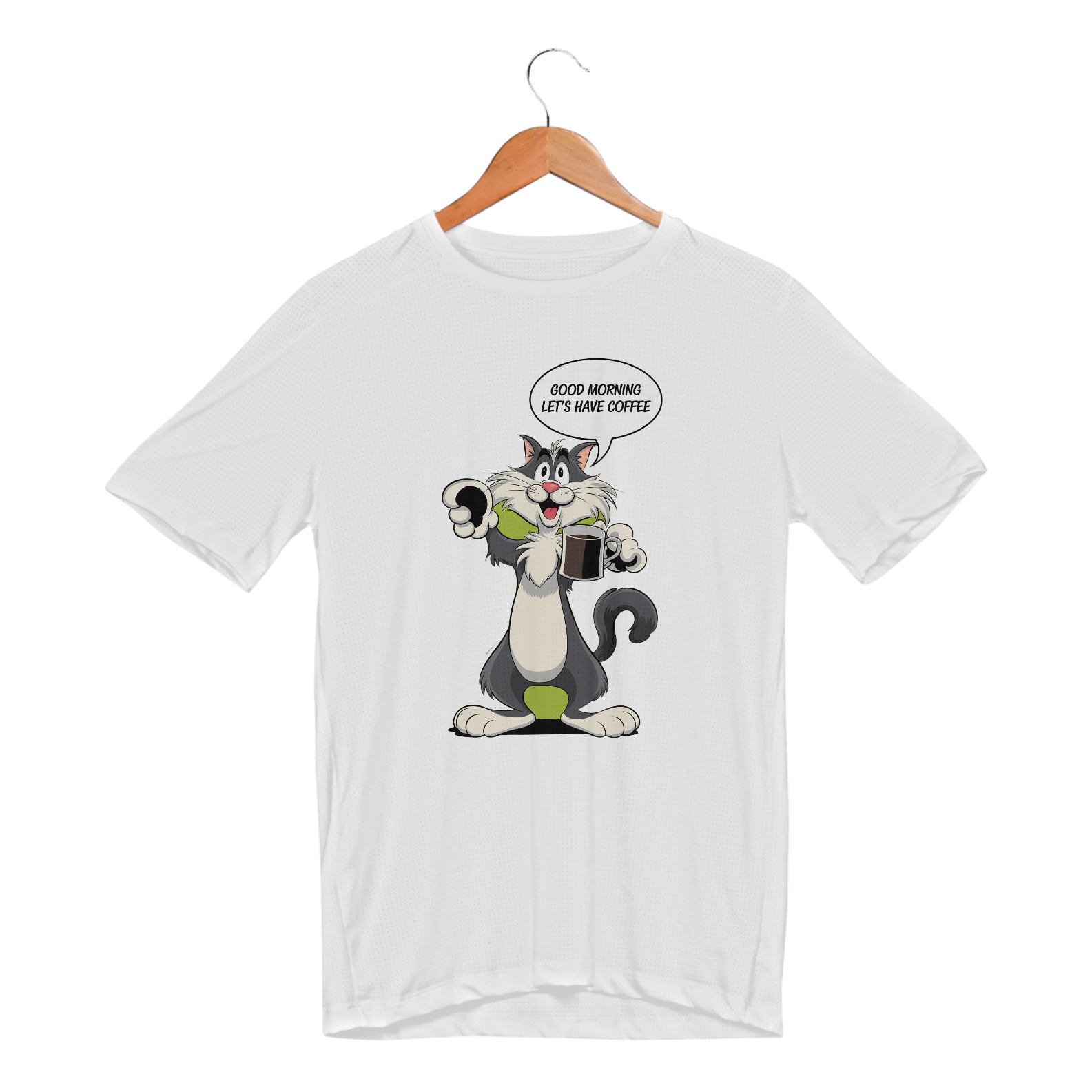 Estampa de um gato preto tomando café dan bomdia