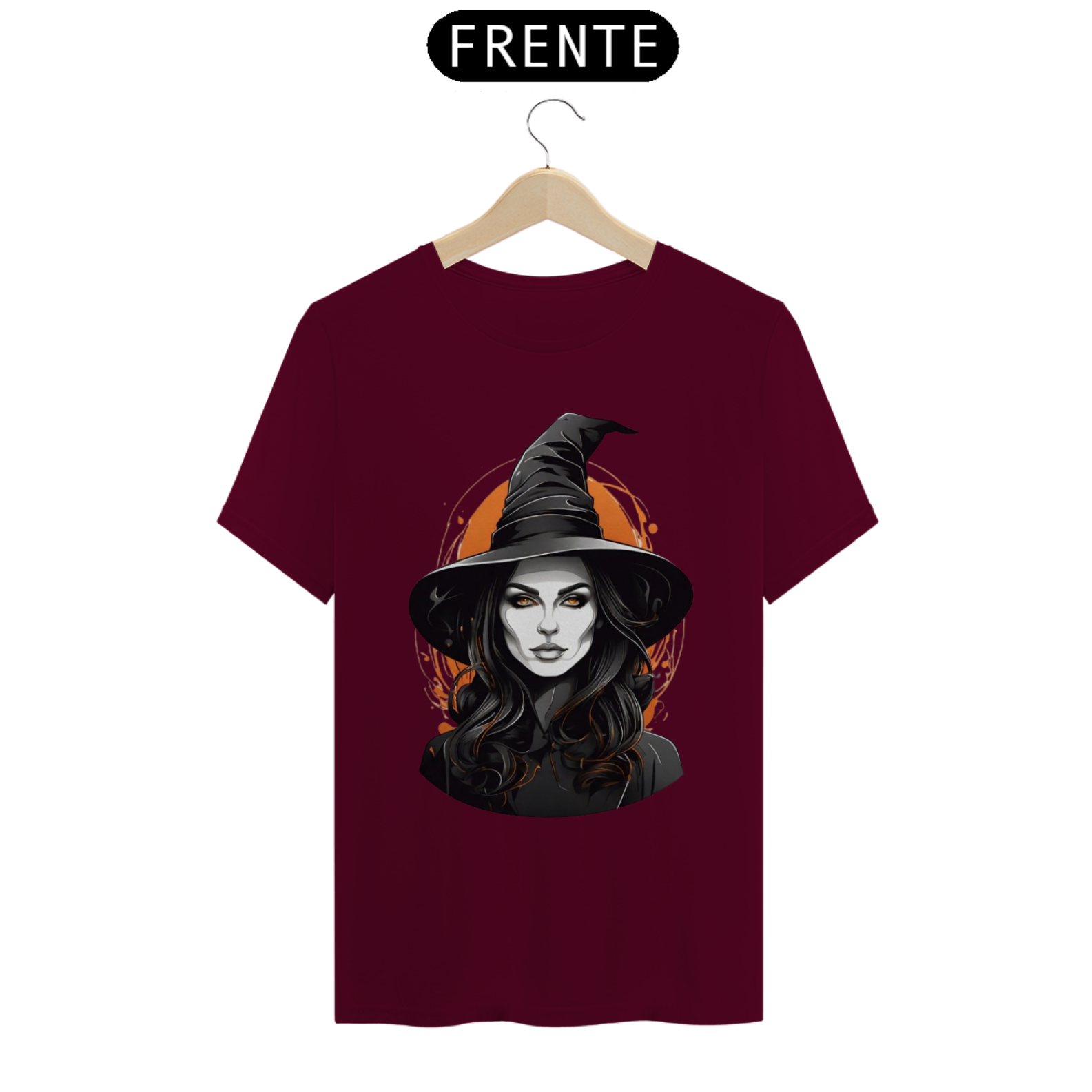 Com olhos intensos e uma expressão cheia de mistério, esta camiseta traz o rosto de uma bruxa que hipnotiza qualquer um. Ideal para quem busca um visual impactante.