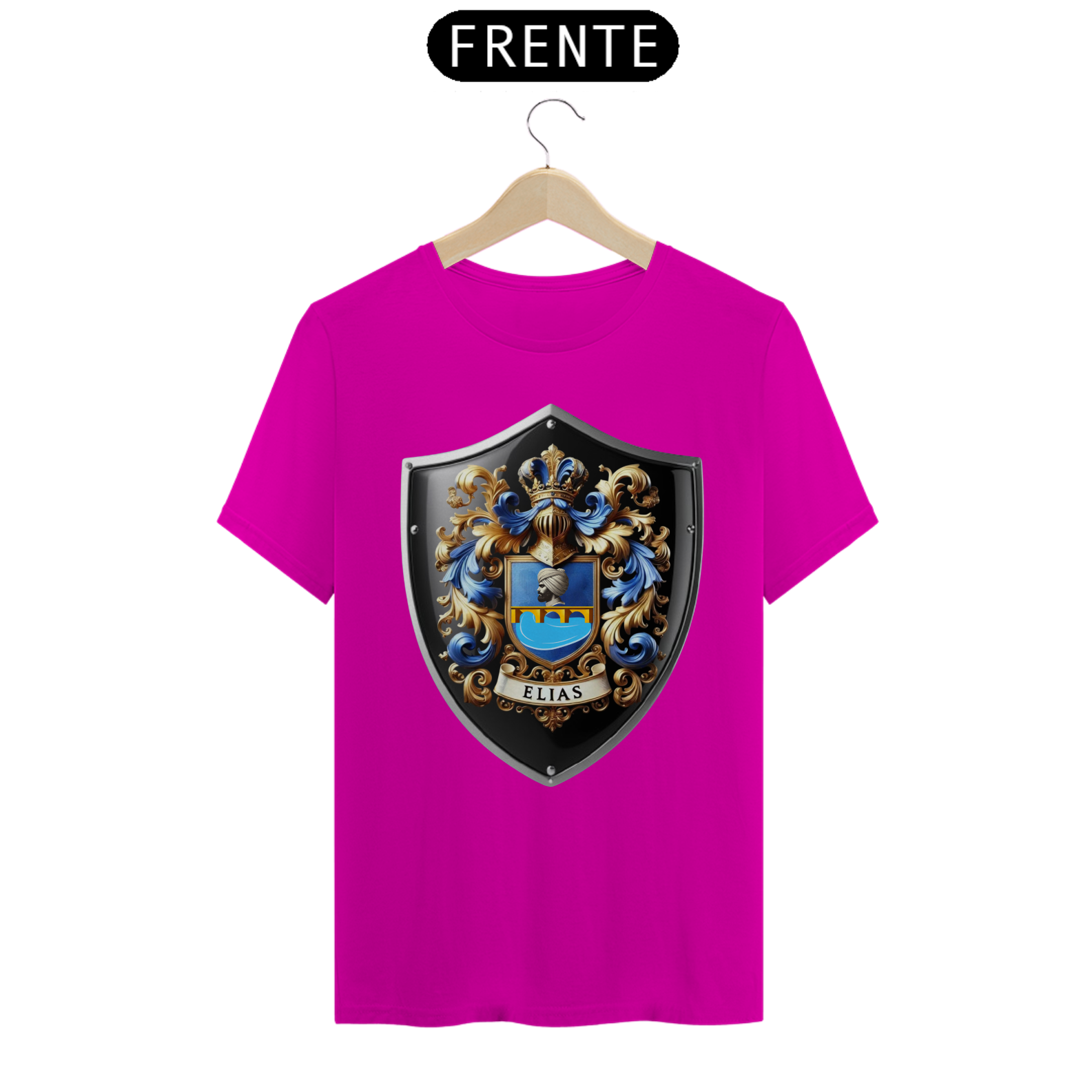 **Camiseta T-Shirt Quality – Brasão Personalizado** Eleve seu estilo com nossa exclusiva Camiseta T-Shirt Quality, agora disponível com uma estampa única de brasão de família, criada especialmente para você. Esta camiseta é a combinação perfeita de conforto e personalização, ideal para ocasiões especiais ou para um uso diário com um toque pessoal. **Características:** - **Material Premium:** Confeccionada com 100% algodão de alta qualidade, proporcionando um toque suave e respirável que garante conforto durante todo o dia. - **Estampa Personalizada:** O brasão de família é impresso com técnicas avançadas de serigrafia, oferecendo cores vivas e durabilidade excepcional. - **Design Exclusivo:** Cada detalhe do brasão é cuidadosamente desenhado para refletir a tradição e o orgulho familiar. A estampa é feita sob demanda, garantindo exclusividade e uma conexão especial com a sua herança. - **Ajuste Perfeito:** Disponível em uma variedade de tamanhos, com um corte moderno que se adapta confortavelmente a todos os tipos de corpo. **Cuidados com a Peça:** - Lavar à máquina em água fria. - Secar à sombra para preservar as cores. - Evitar o uso de alvejantes. Transforme sua camiseta em uma