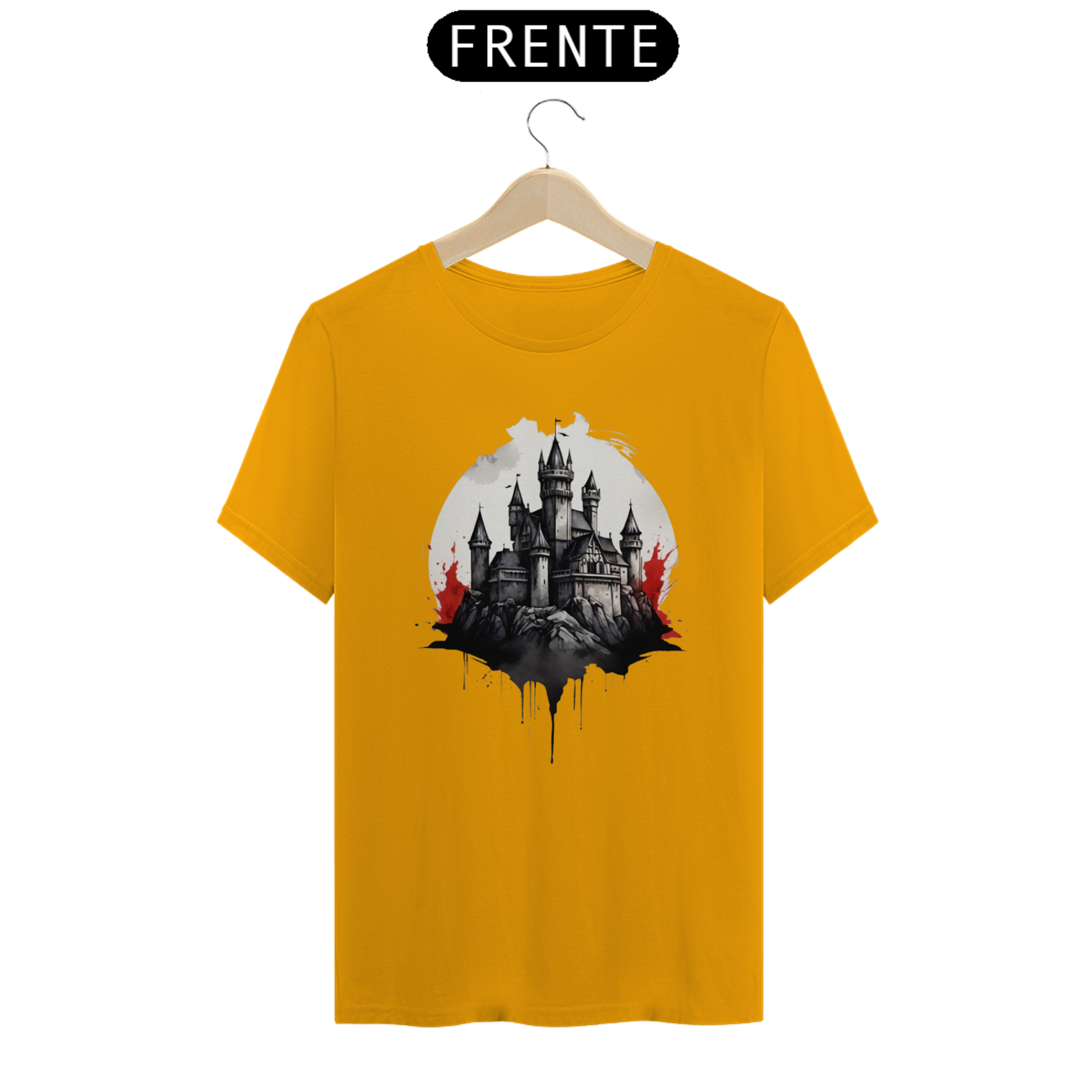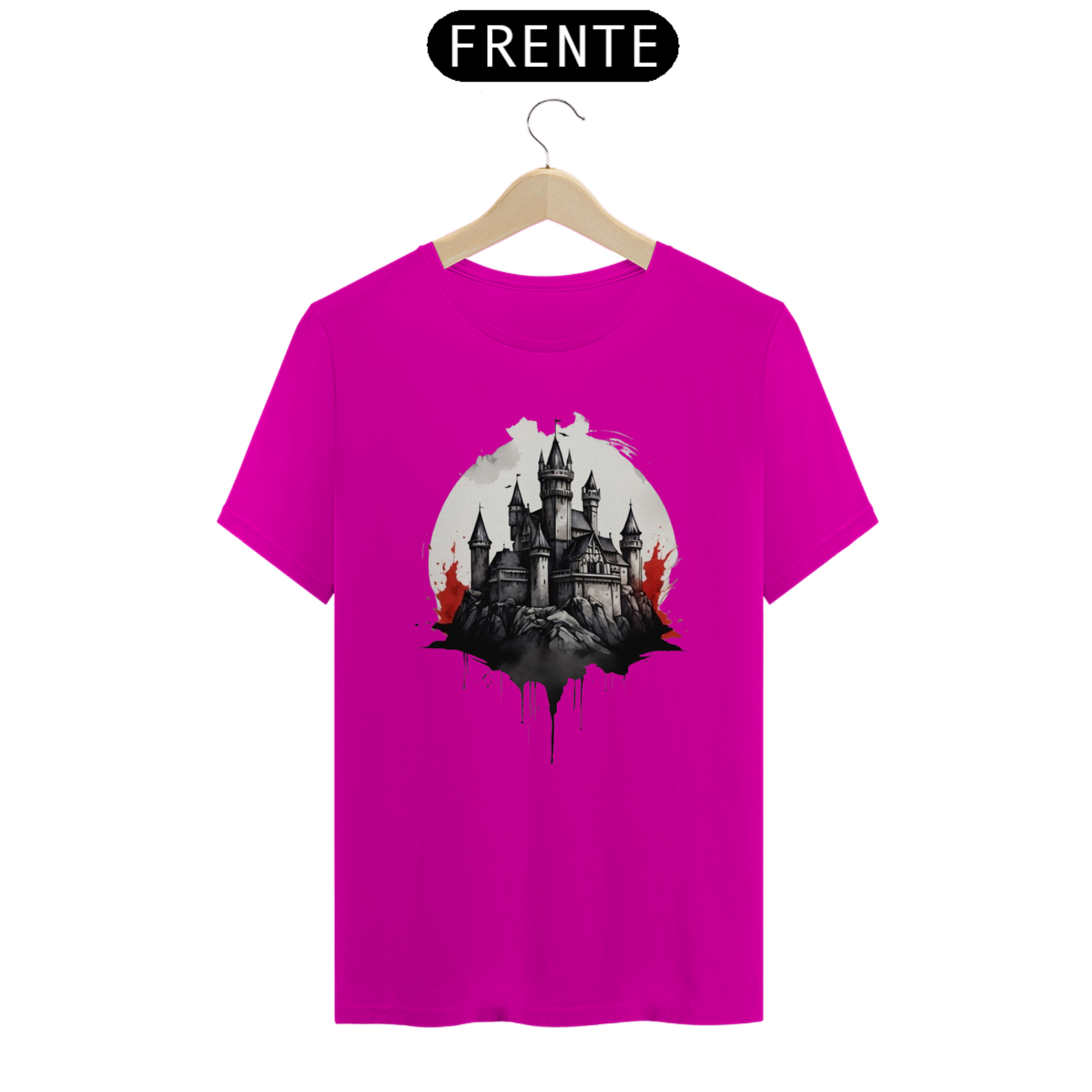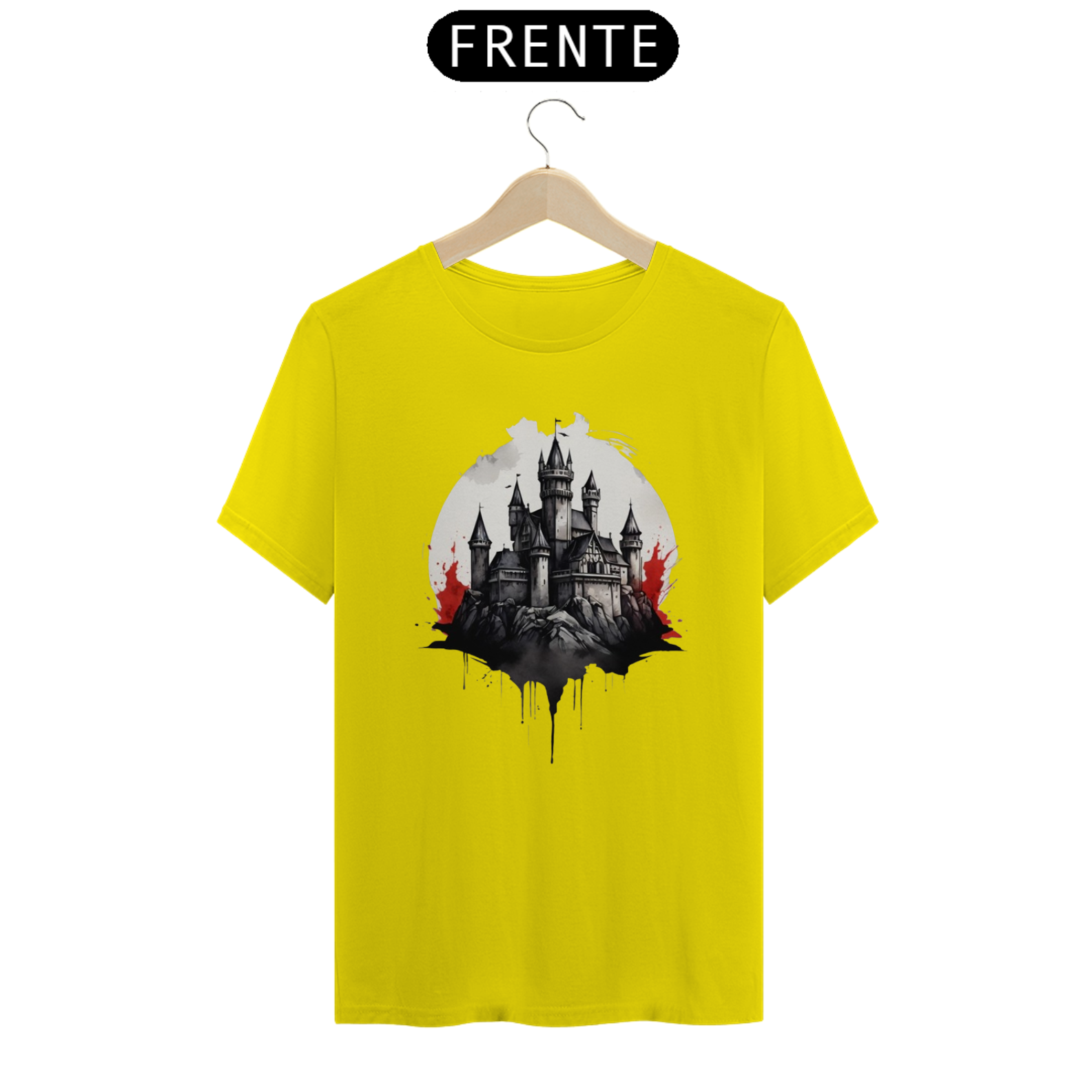 Inspirada em castelos antigos e cercados de mistério, esta estampa traz uma fortaleza envolta em névoas sombrias. Ideal para quem ama a aura enigmática das eras medievais.