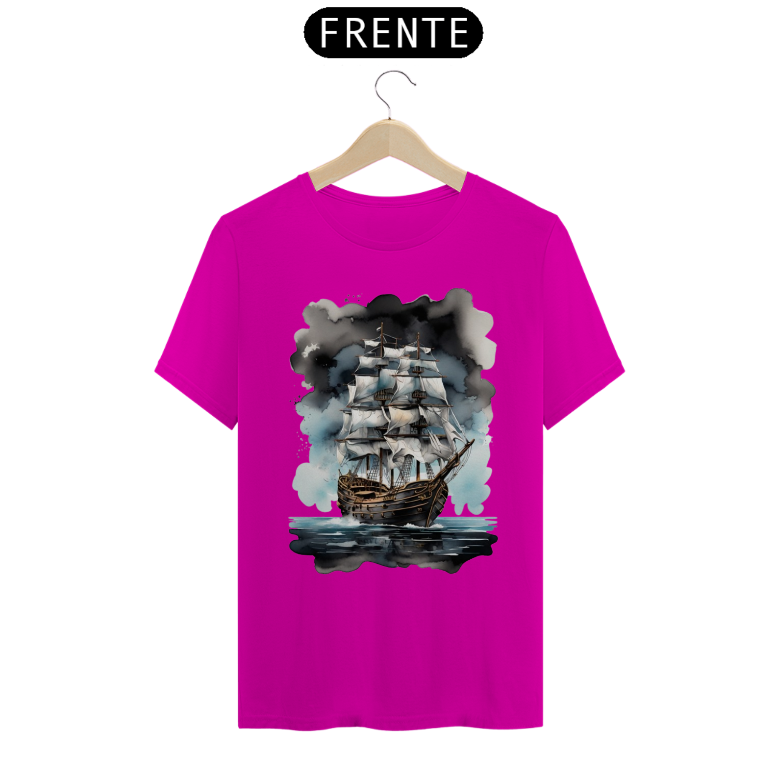 Esta estampa apresenta um navio pirata sob um céu misterioso, com detalhes impressionantes que celebram a era dos navegadores e suas lendas intemporais.