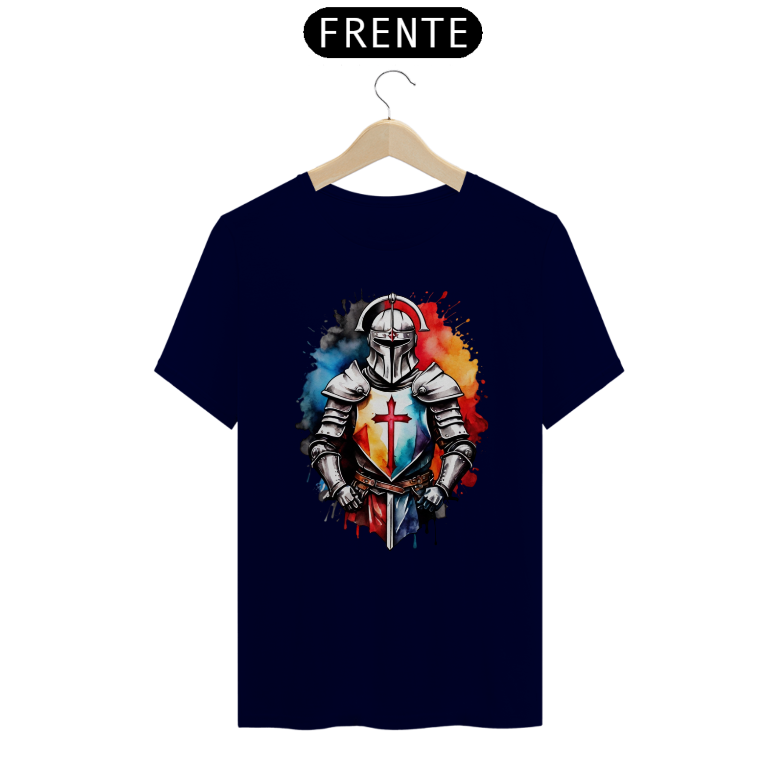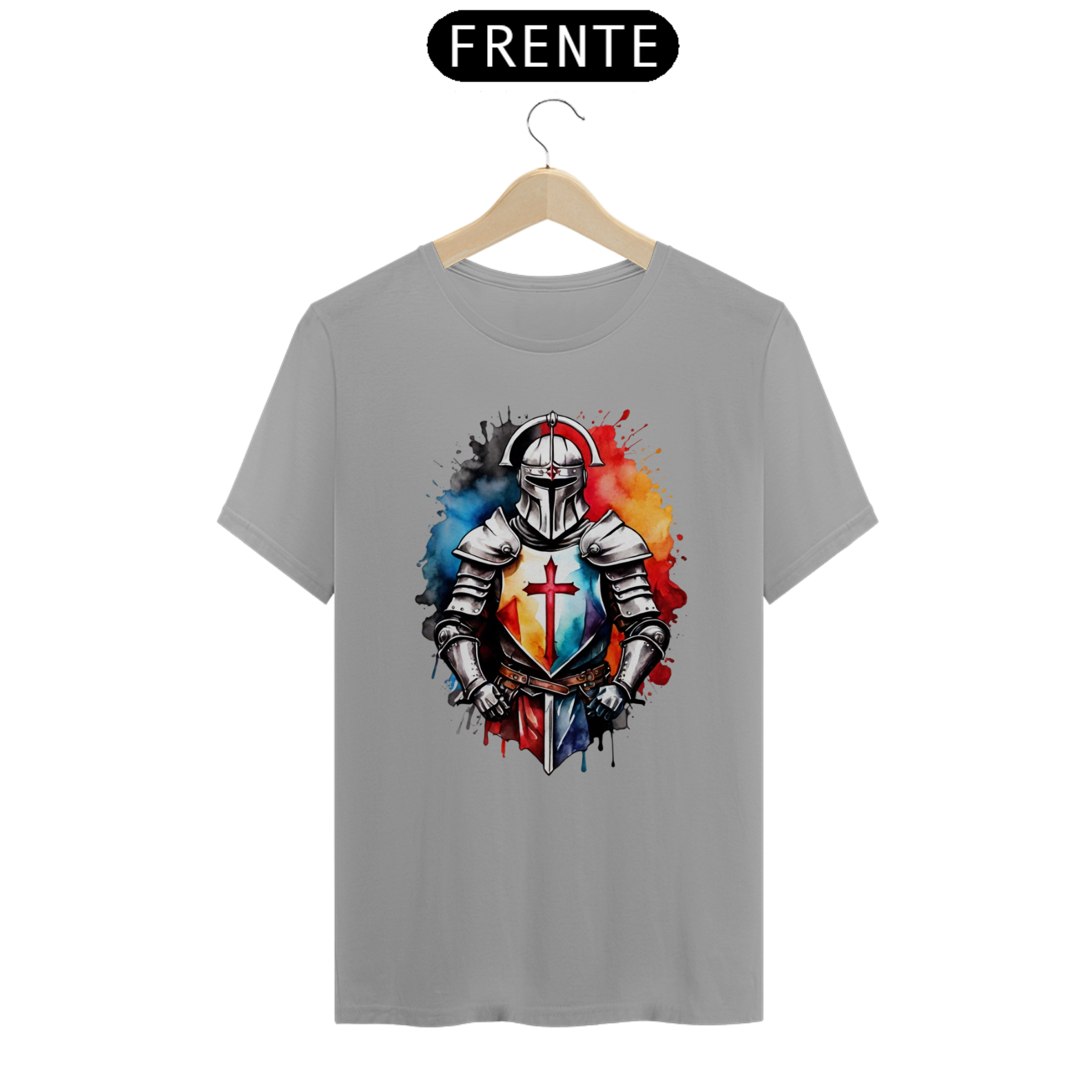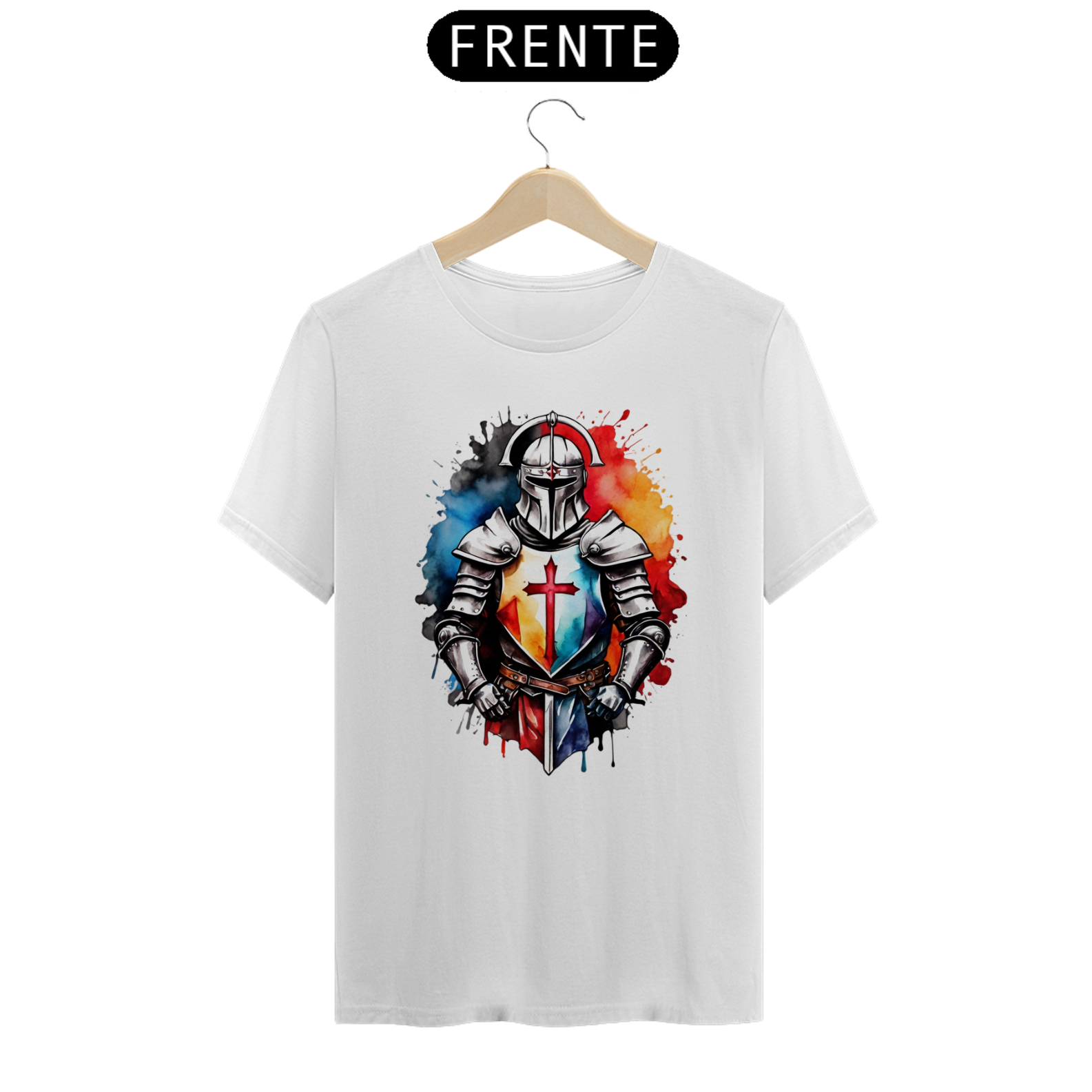 Um design imponente de um cavaleiro iluminado pelo amanhecer, simbolizando esperança, coragem e resiliência. Uma camiseta que conta histórias em cada traço.