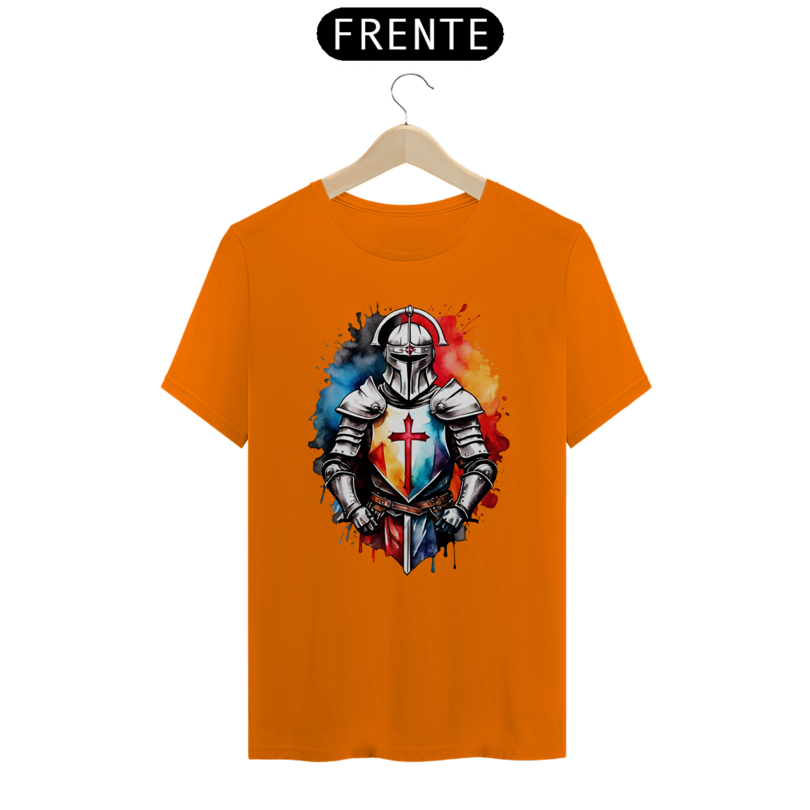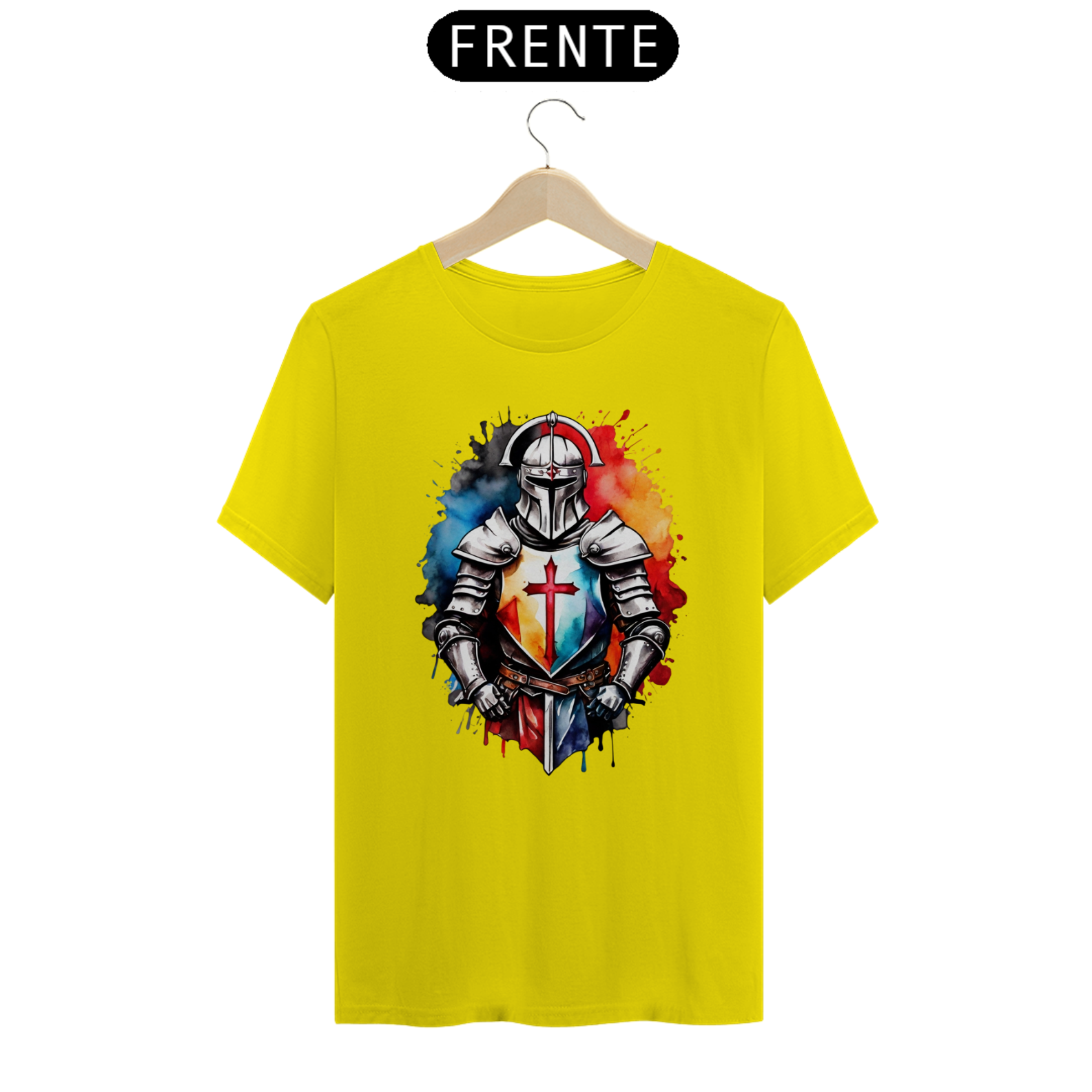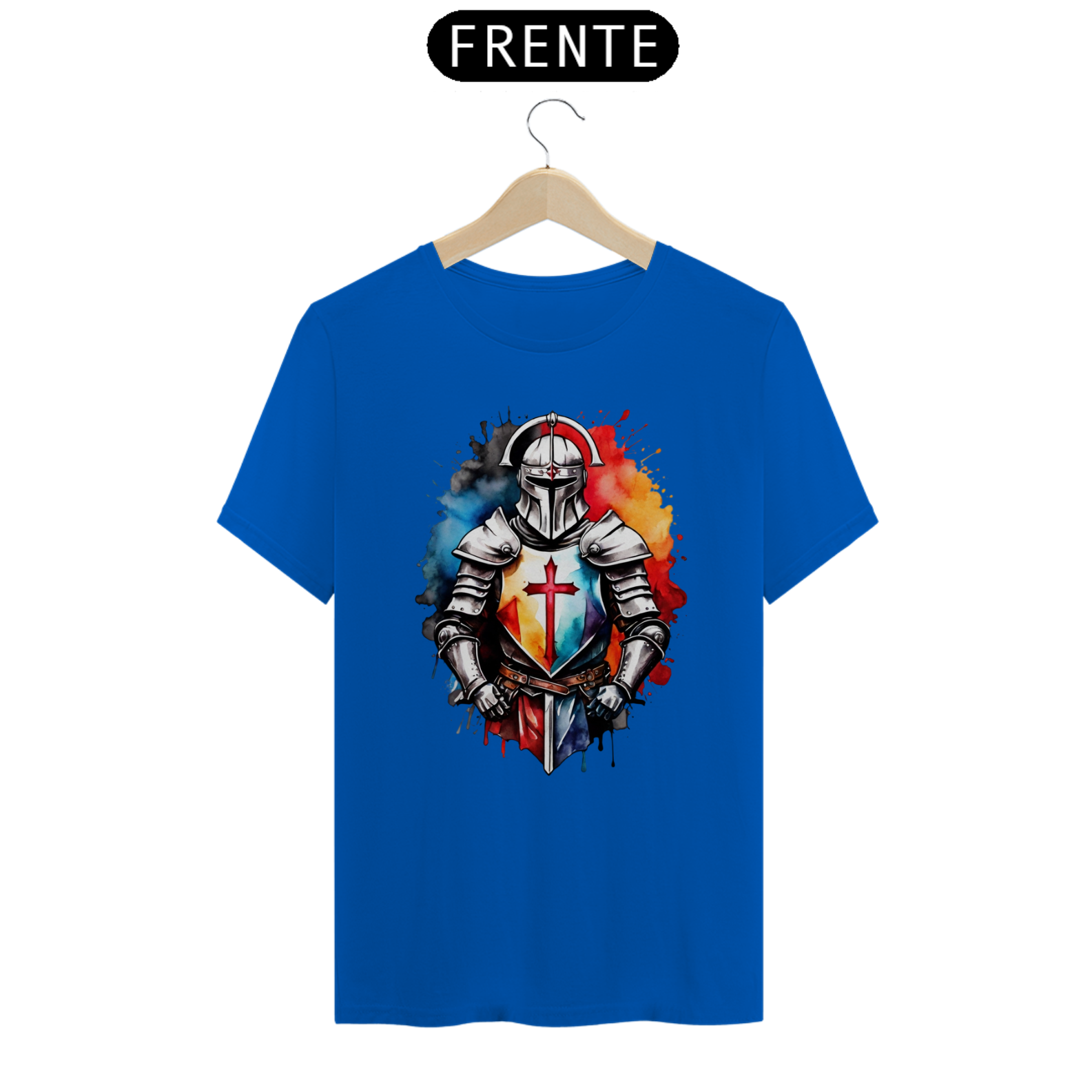 Um design imponente de um cavaleiro iluminado pelo amanhecer, simbolizando esperança, coragem e resiliência. Uma camiseta que conta histórias em cada traço.