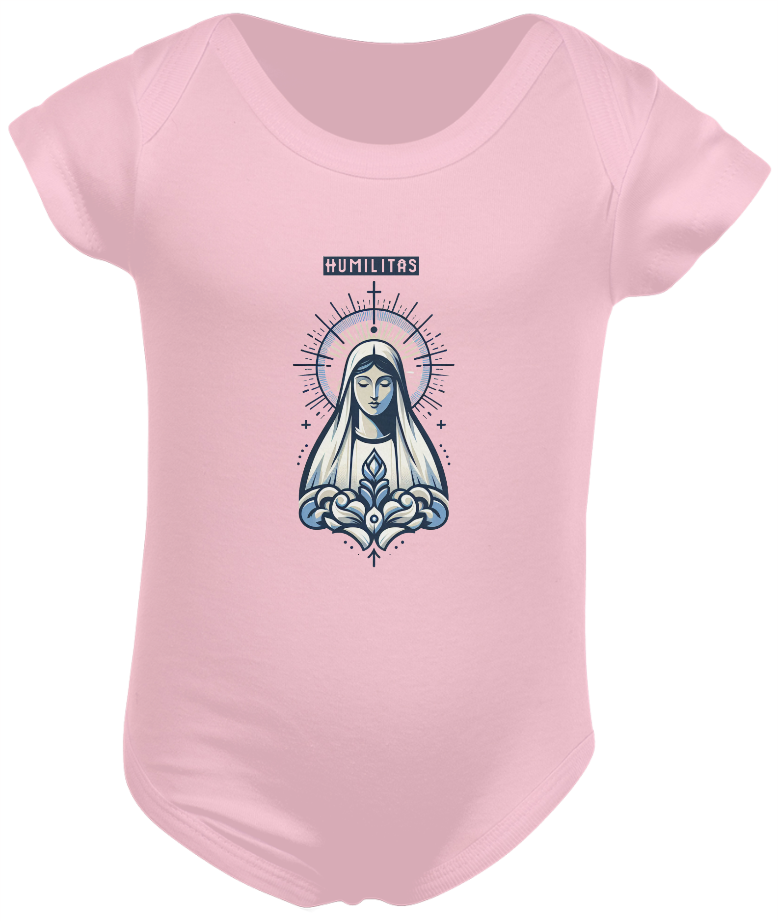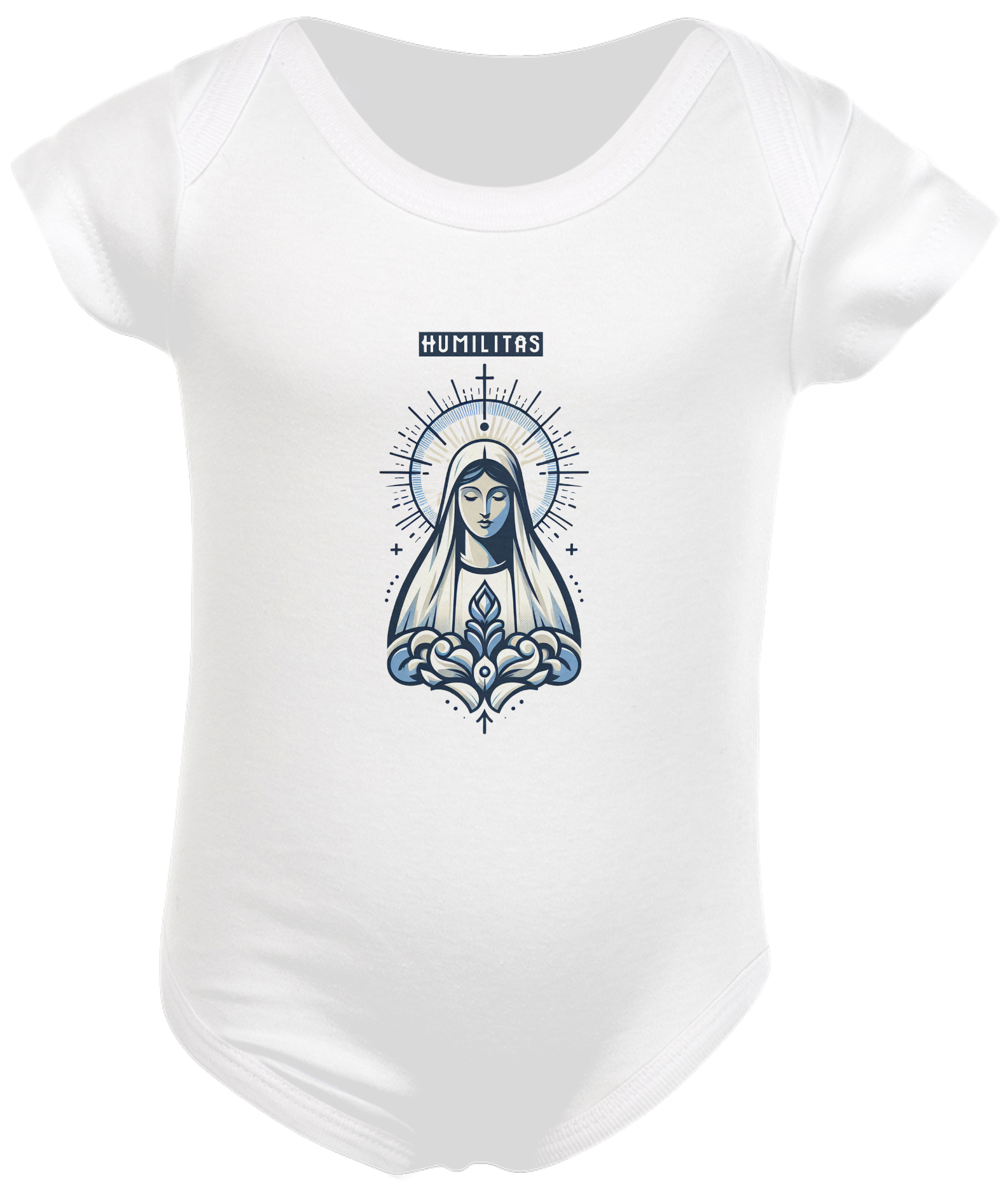 Envolva-se com a graça e a proteção de Nossa Senhora de Guadalupe com body infantil exclusivo da Marca Humilitas Cloth. Cada detalhe da estampa celebra a beleza e a devoção à padroeira das Américas, criando uma peça de vestuário que une fé e elegância.