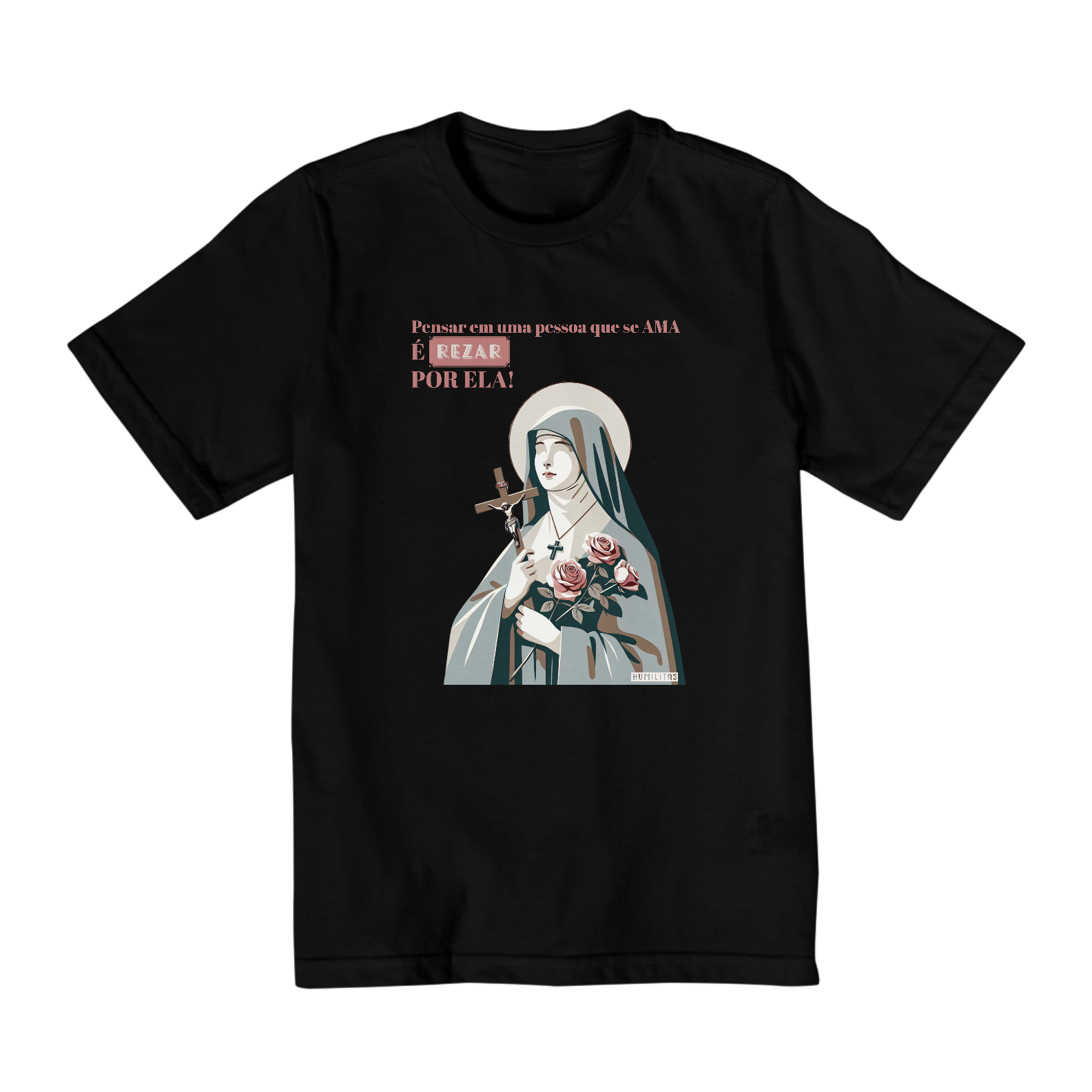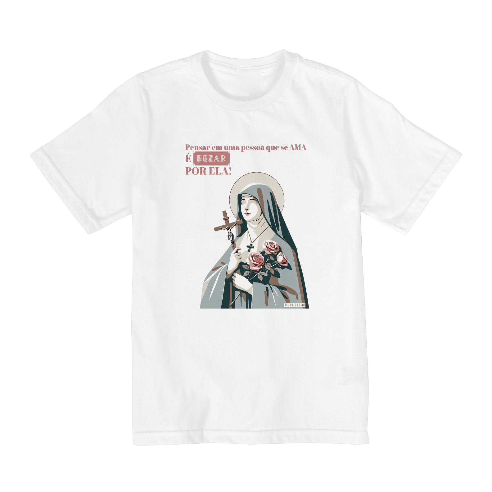 Camisa Infantil (10 a 14 anos) Humilitas Cloth: Vista a Doçura e a Simplicidade de Santa Terezinha