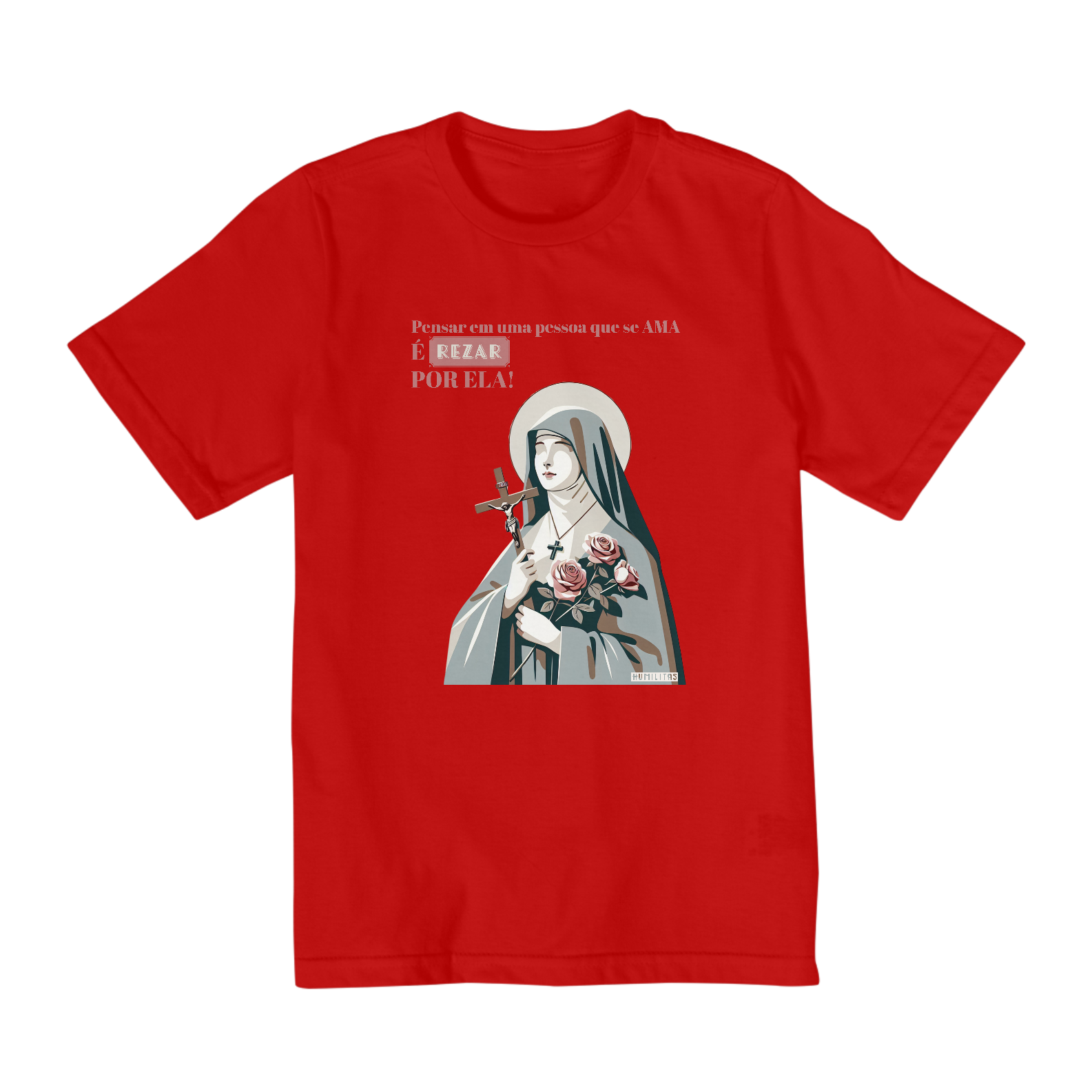 Adquira já a sua camisa infantil (10 a 14 anos) Humilitas Cloth e mergulhe no poder da devoção, carregando consigo a inspiração daquela que nos ensinou a amar com todo o coração.