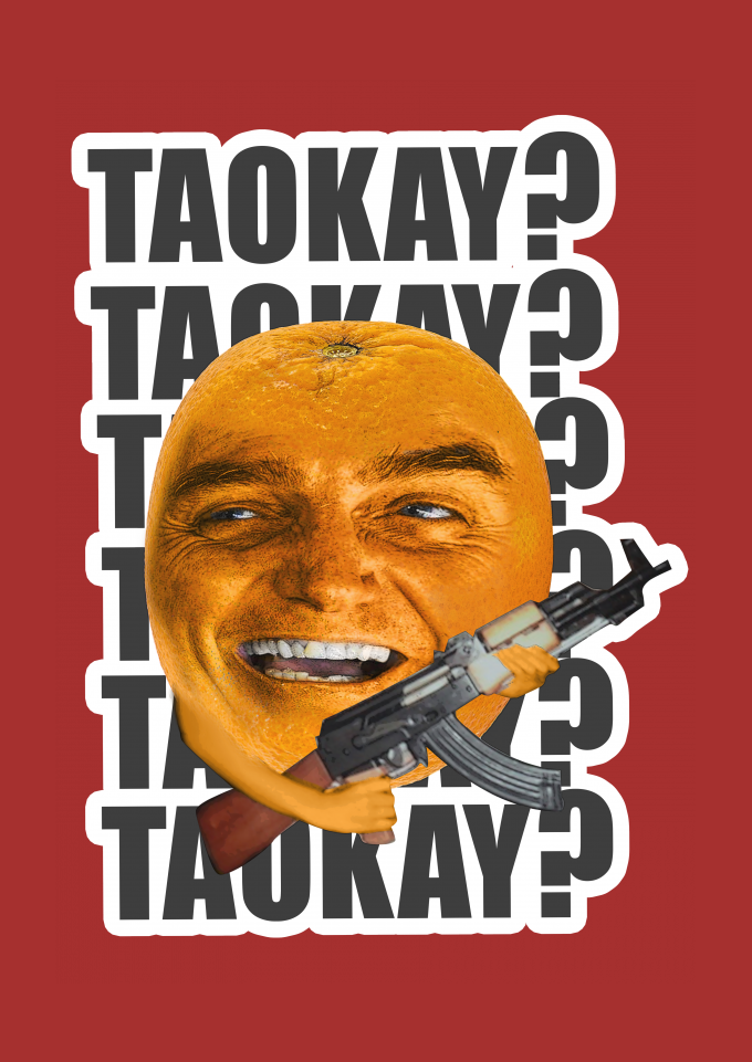 meme Bolsonaro laranjo armado, frase taokey? , sátira, humor, piada da internet, figura pública, paródia.