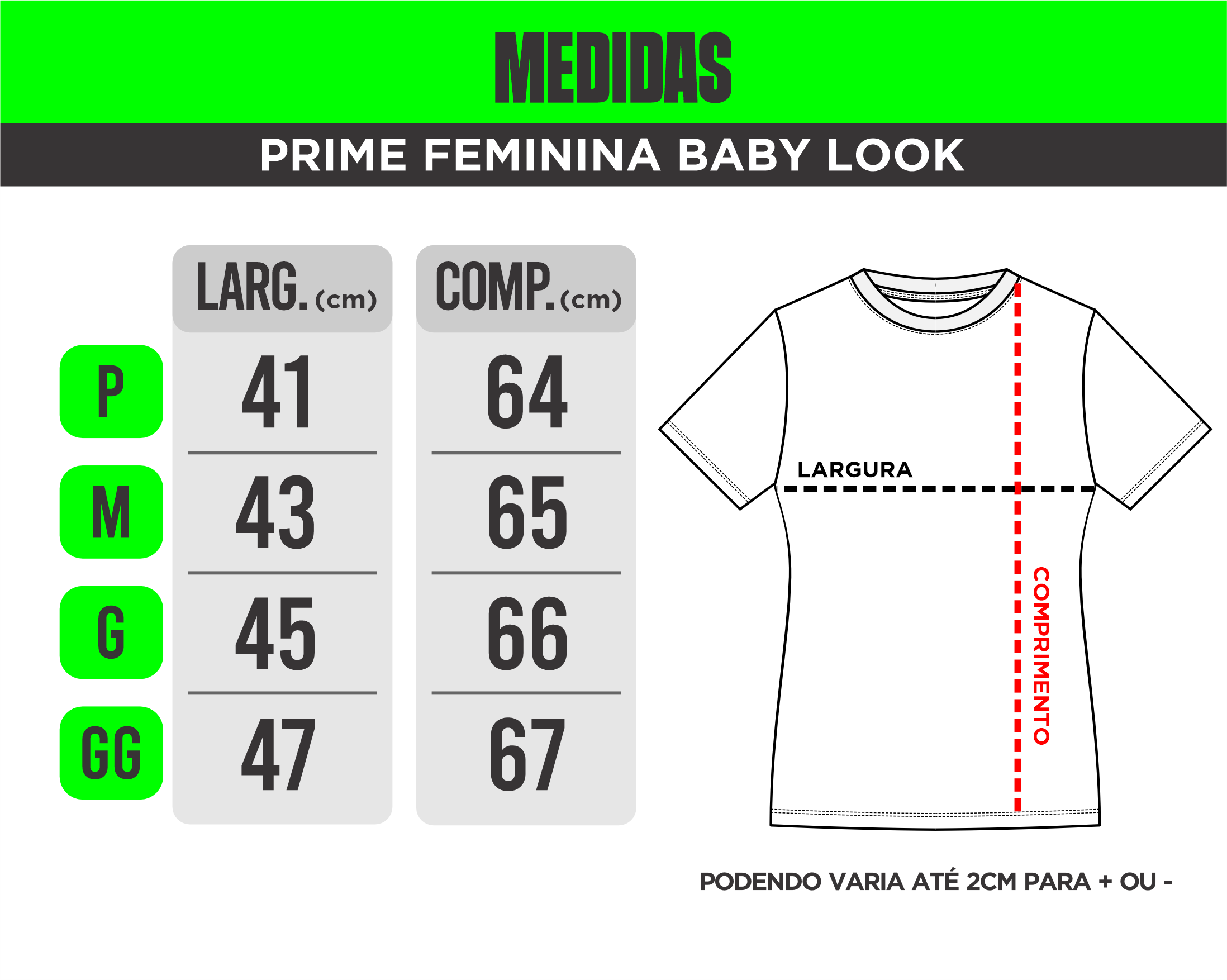 Atenção: As medidas podem variar um pouco, até 3cm pra mais ou pra menos, mas nada que mude o quanto ela vai ficar legal em você!
