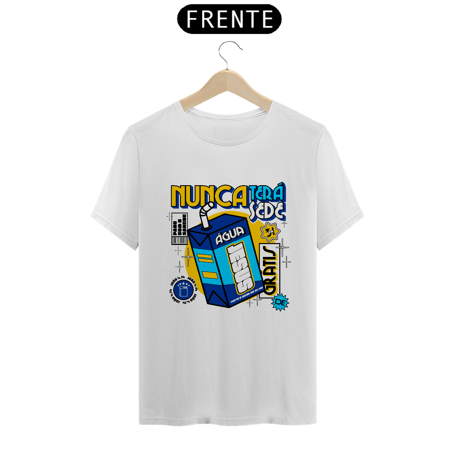 Feita com um tecido macio e leve de alta qualidade, esta camiseta não só é confortável, mas também transmite uma mensagem poderosa. Com a frase 'Nunca mais terá sede' em destaque, você não apenas segue a moda, mas também expressa sua fé de forma autêntica. Ideal para você jovem que buscam conforto, estilo e quer compartilhar sua fé de maneira moderna e marcante.