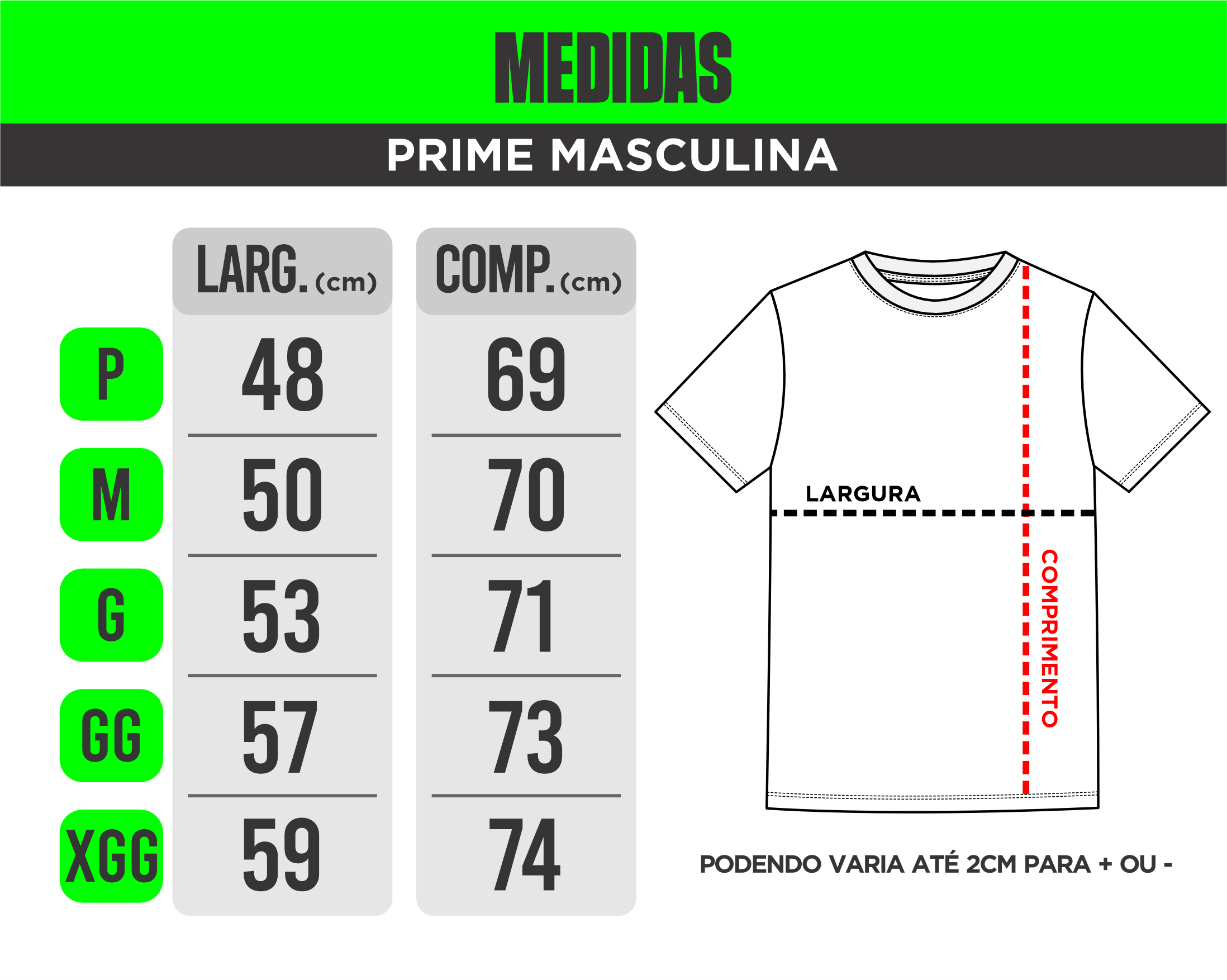 Atenção: As medidas podem variar um pouco, até 3cm pra mais ou pra menos, mas nada que mude o quanto ela vai ficar legal em você!