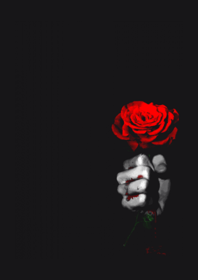 segurando a rosa com espinho e mão sangrando