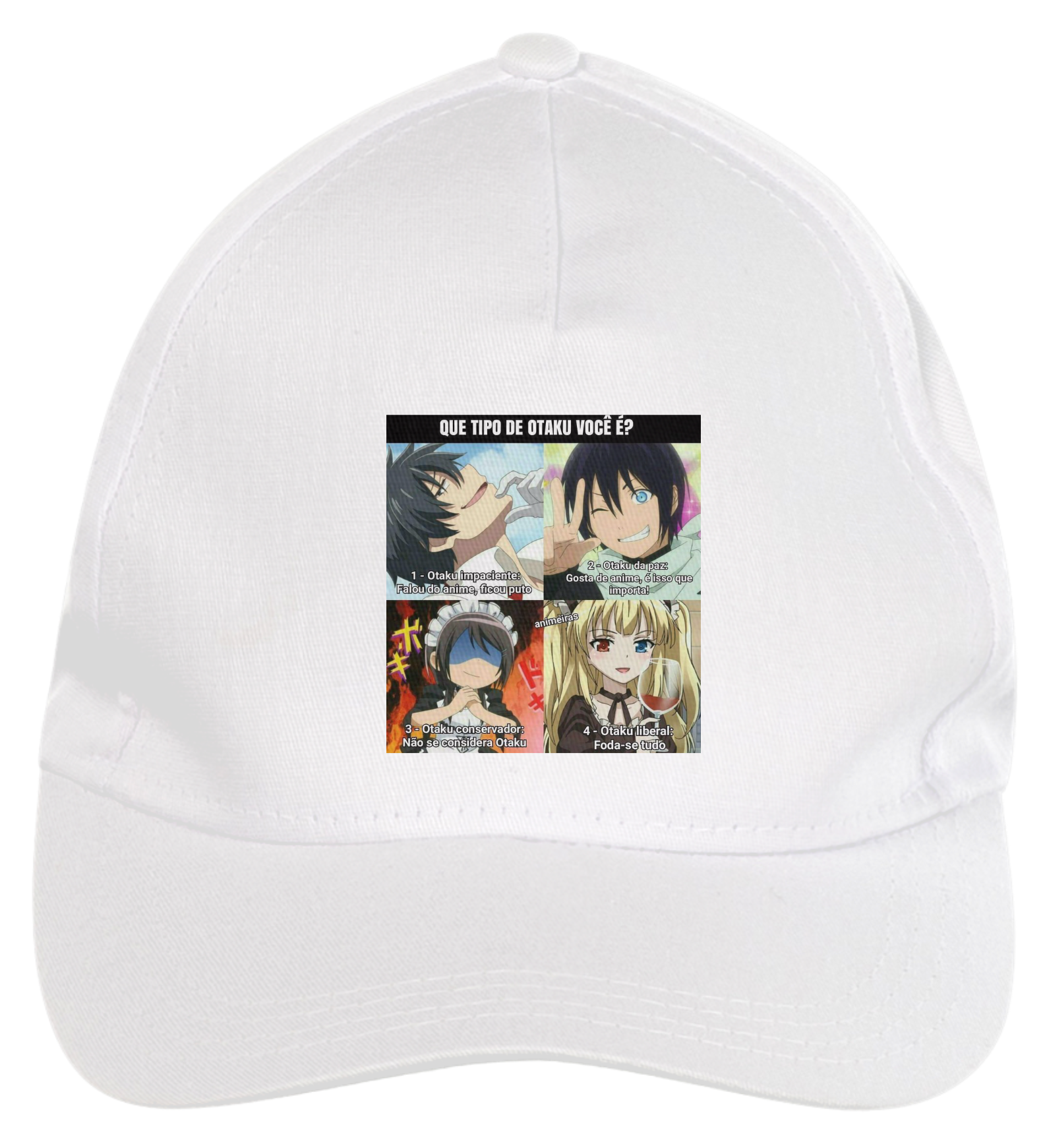 Boné americano com transfer frontal em alta qualidade, aba curva e fecho em tira totalmente regulável com pinos. O modelo veste tamanho "único".