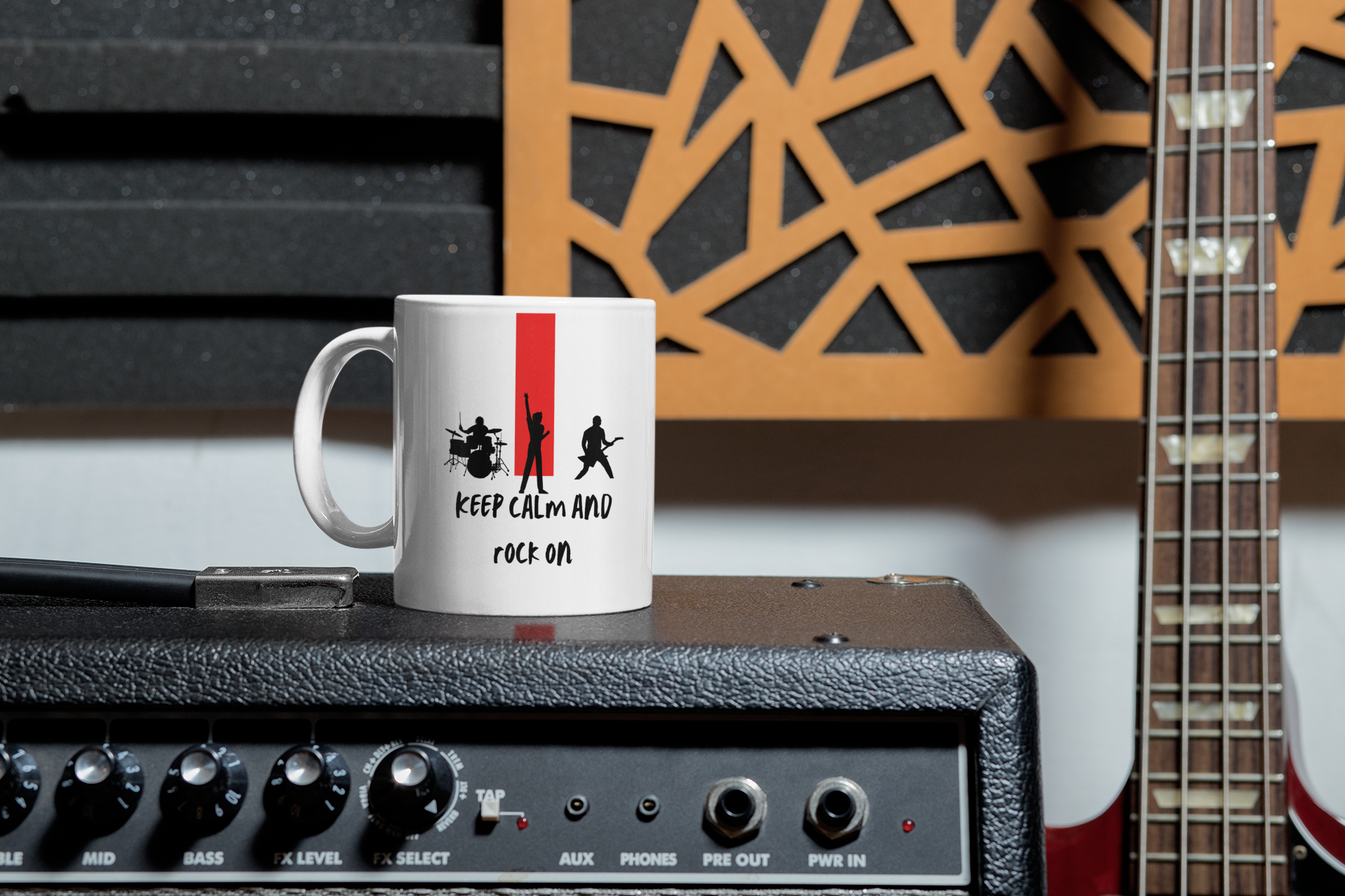 Aproveite cada gole com a caneca que celebra a filosofia de vida do rock 'n' roll: "Keep Calm and Rock On". Esta caneca não é apenas um recipiente para sua bebida favorita; é uma afirmação de estilo, uma lembrança constante de que, quando as coisas ficam intensas, você pode encontrar serenidade no poder revigorante do rock.