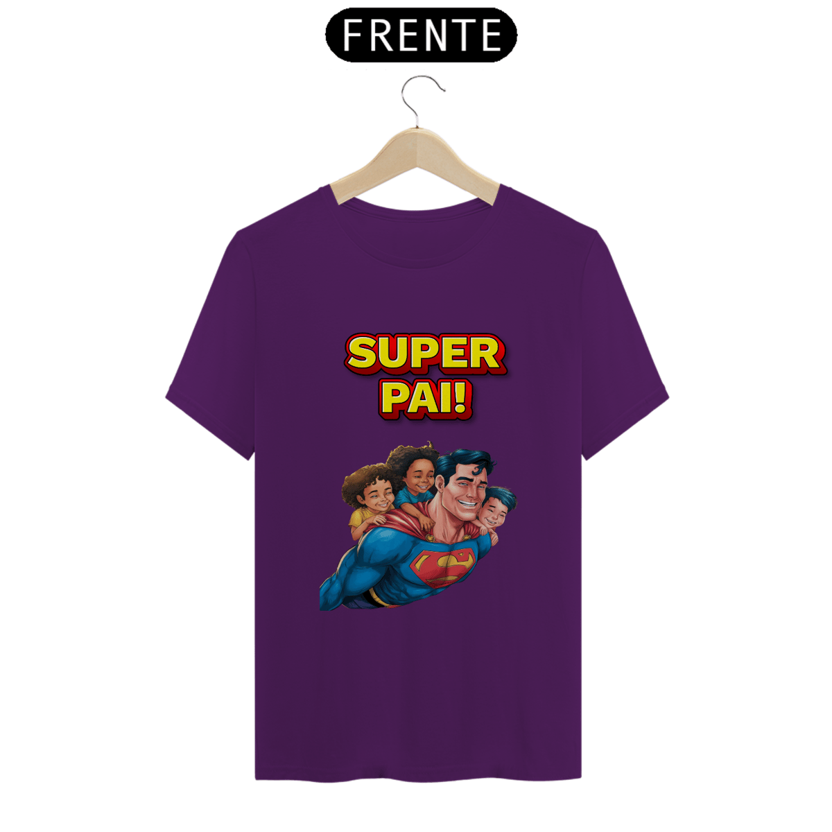 T-Shirt Classic estampa de Super-Homem com 3 filhos e frase: Super pai