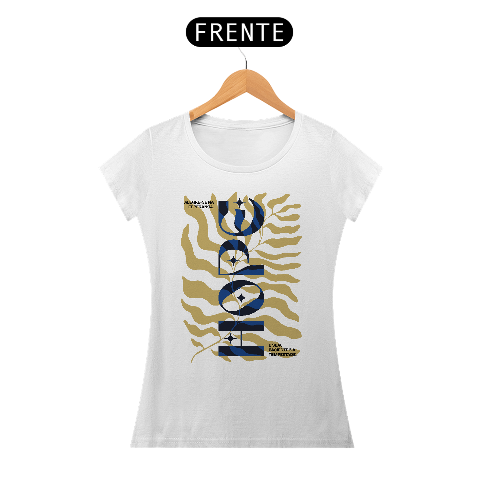 Descubra a esperança em cada detalhe. Nossa camiseta feminina 'HOPE' combina estilo moderno e toque vintage, com a frase 'Alegre-se na esperança, seja paciente na tempestade' e delicado desenho de folhagem verde. Inspire-se e leve uma mensagem de fé por onde for!