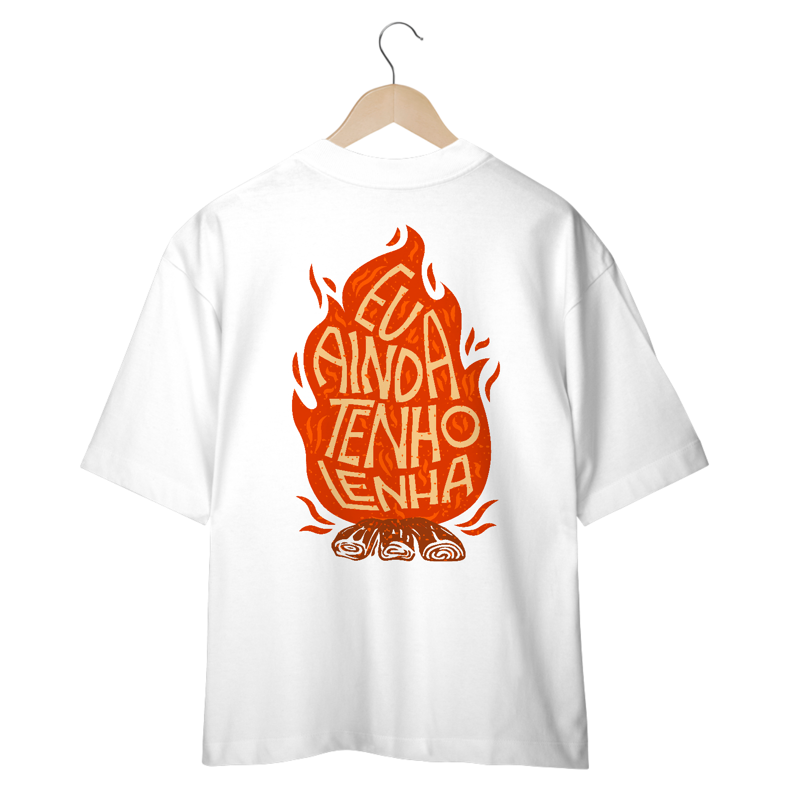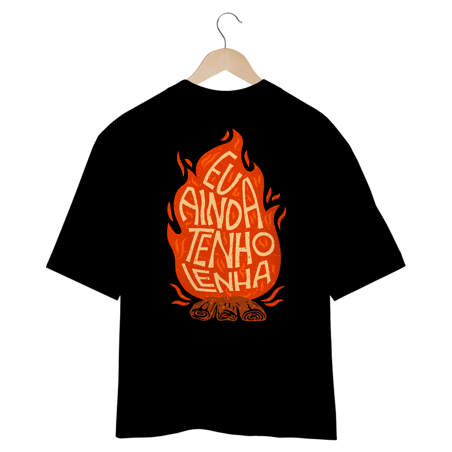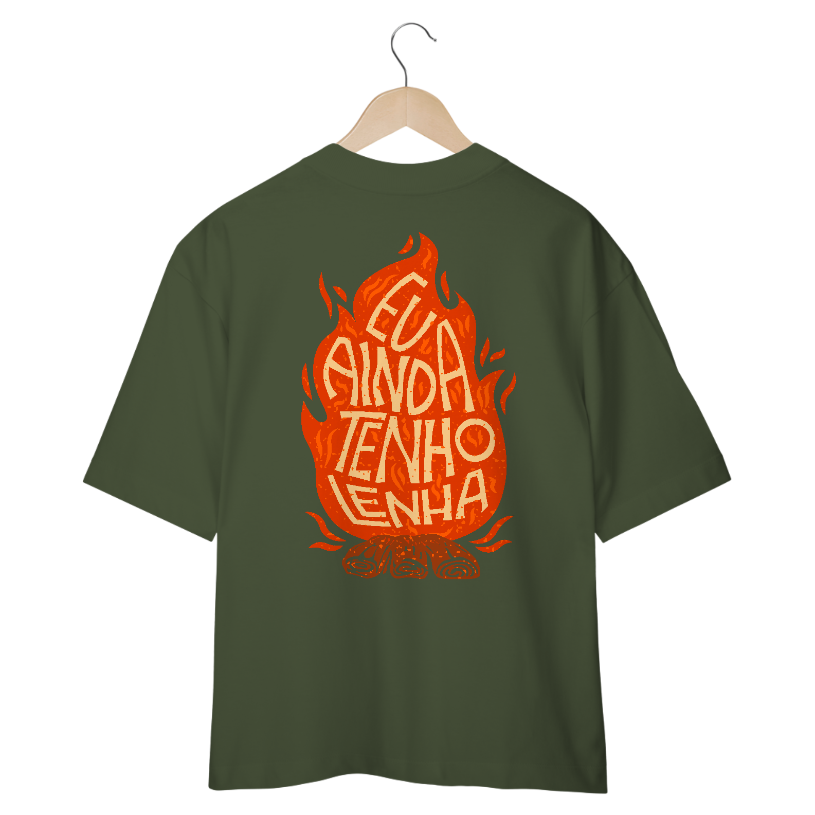 Mostre que o fogo da fé ainda arde! Com um design impactante de uma chama com a frase 'Eu Ainda Tenho Lenha' dentro, esta camiseta celebra uma geração que ainda queima o coração por Jesus. Conforto e estilo para quem vive intensamente para Cristo.