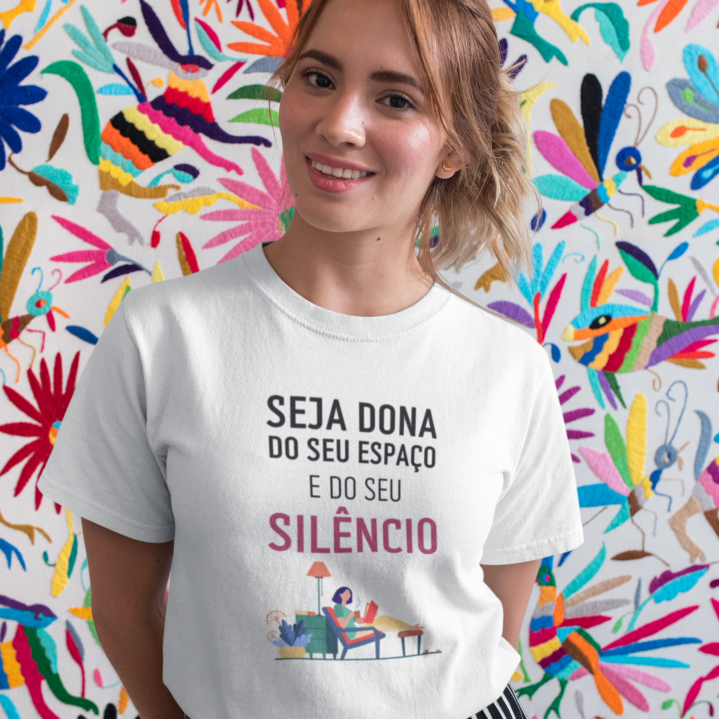 A camiseta quality dona do seu espaço e do seu silêncio é uma peça que transmite força e serenidade. Com a frase “Seja dona do seu espaço e do seu silêncio”, esta camiseta celebra o poder de criar limites saudáveis, encontrar paz interior e honrar o próprio tempo.