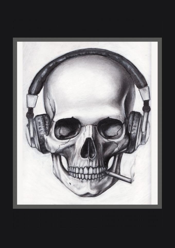 Caveira com headphone e cigarro, caveira, caveira moderna, caveira tatuagem