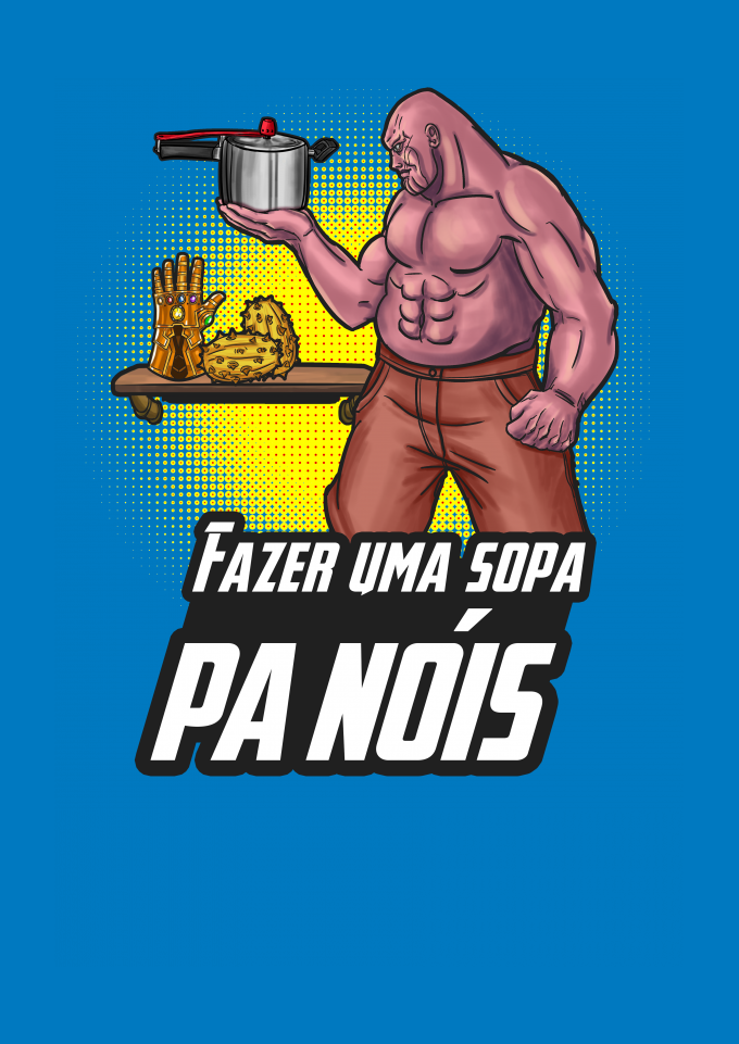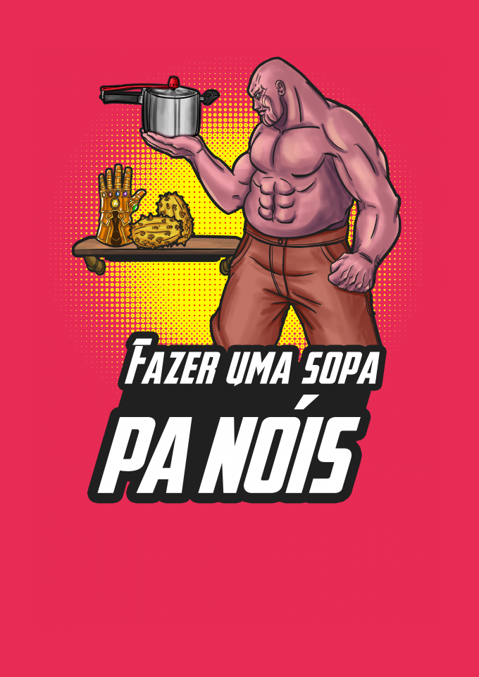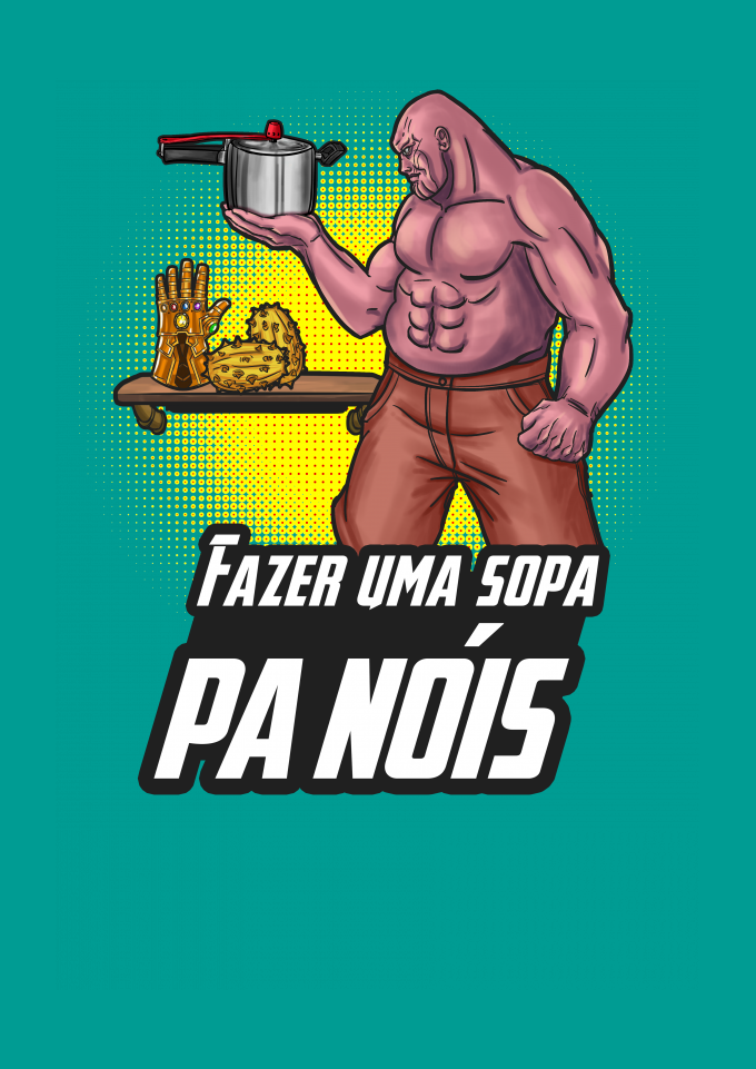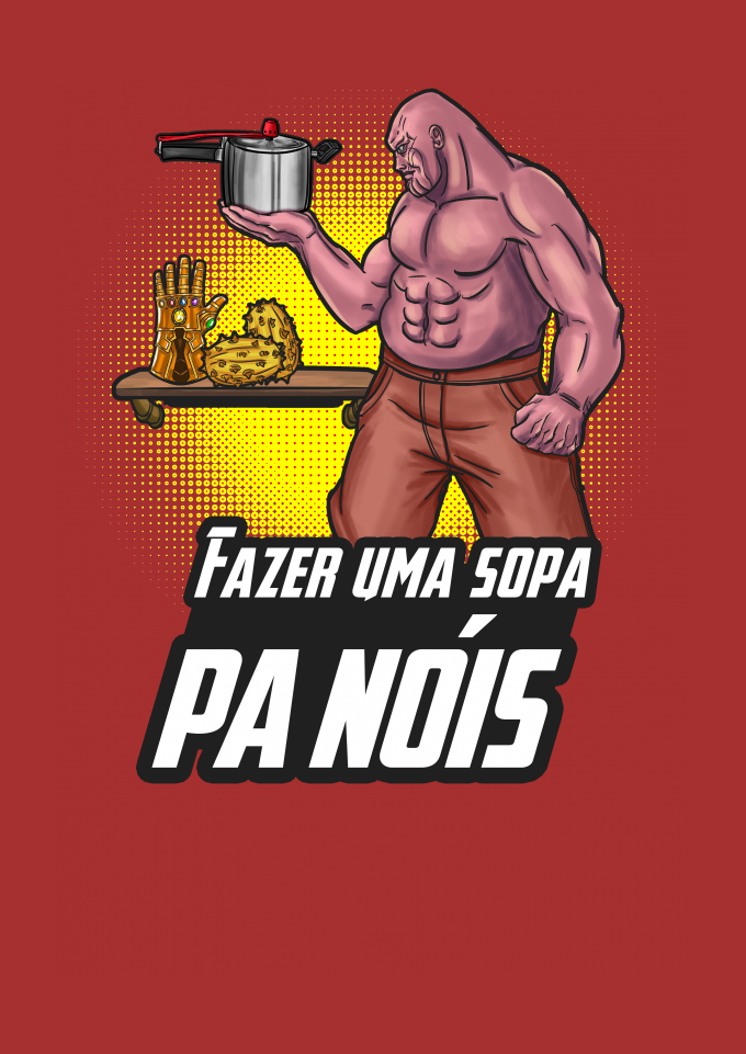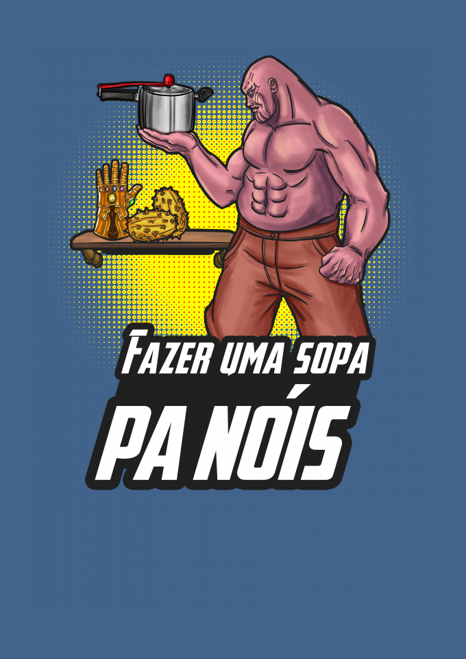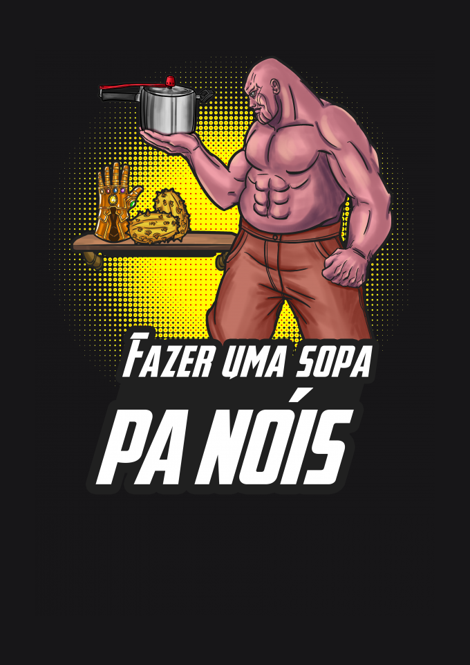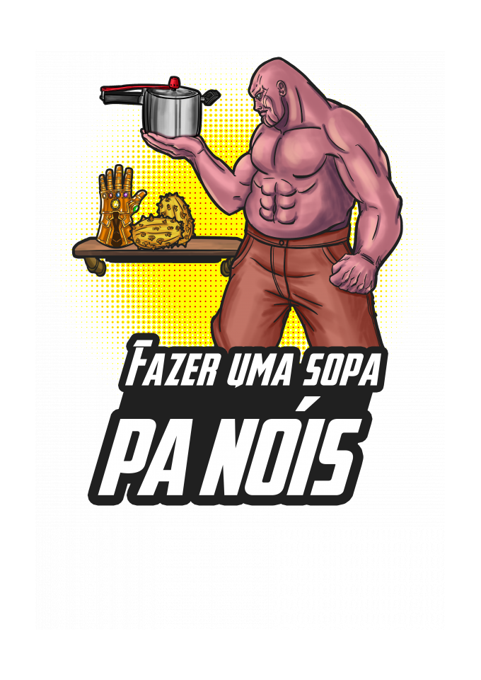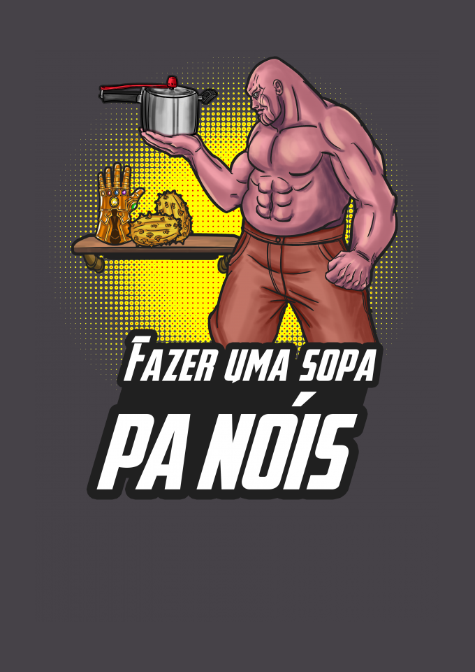 Tudo que Thanos, o Titã Louco, queria era equilibrar o universo e depois viver em sua fazenda tranquilamente, arando a terra, plantando e colhendo seu alimento. Depois, sentar-se na varanda e admirar suas terras douradas pelo pôr do sol, enquanto uma panela d'água ferve no braseiro para fabricar uma sopa. Pobre alma, não teve o gosto de terminar sua sopa, você sabe bem, se assistiu Vingadores Ultimato. Thor se precipitou um pouco. Tá, chega. é só o meme do fazer uma sopa "pa nóis" com o Thanos.