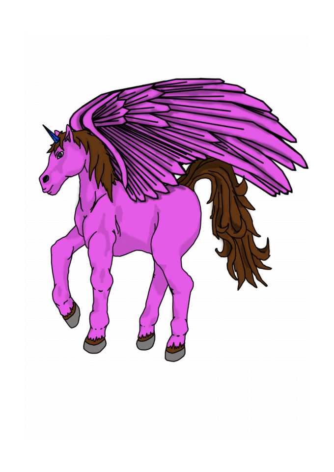 Cavalo mitológico com asas e chifre