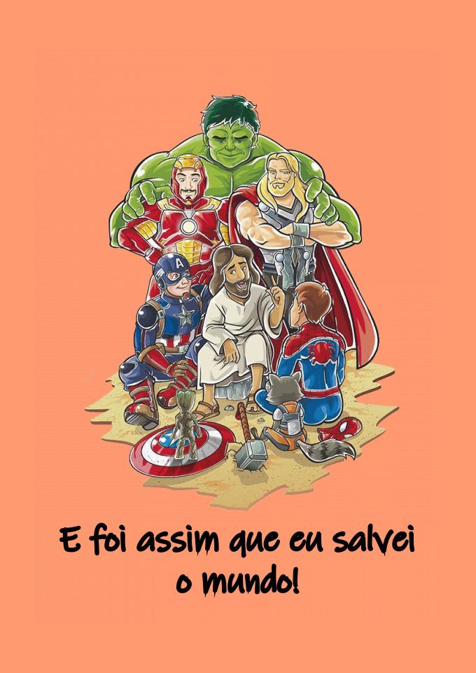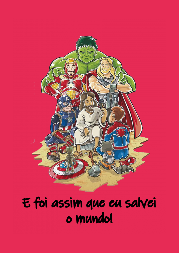 Linda camiseta com uma estampa de Jesus pregando para os "Super Heróis" Homem aranha, homem de ferro, Hulk, capitão américa, Jesus