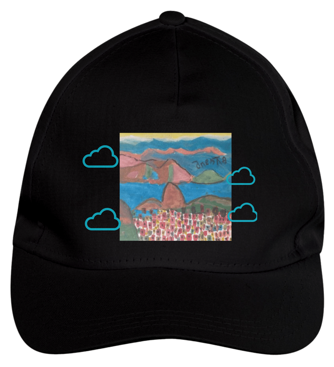 Boné americano com transfer frontal em alta qualidade, aba curva e fecho em tira totalmente regulável com pinos. O modelo veste tamanho "único".