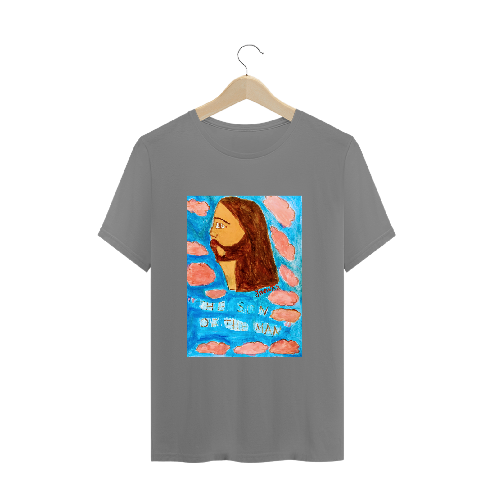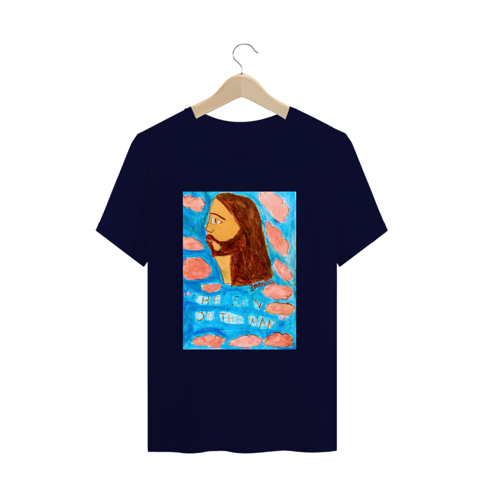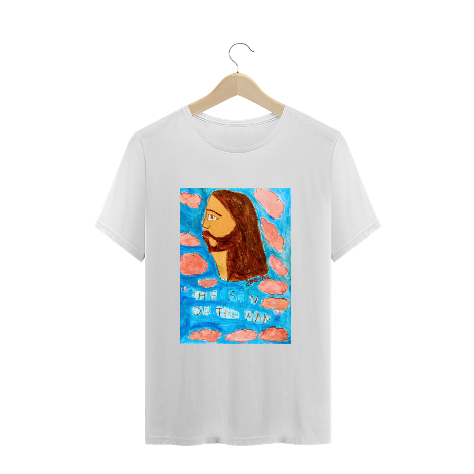 Camiseta de algodão , com a arte pintada por mim , representando Jesus.