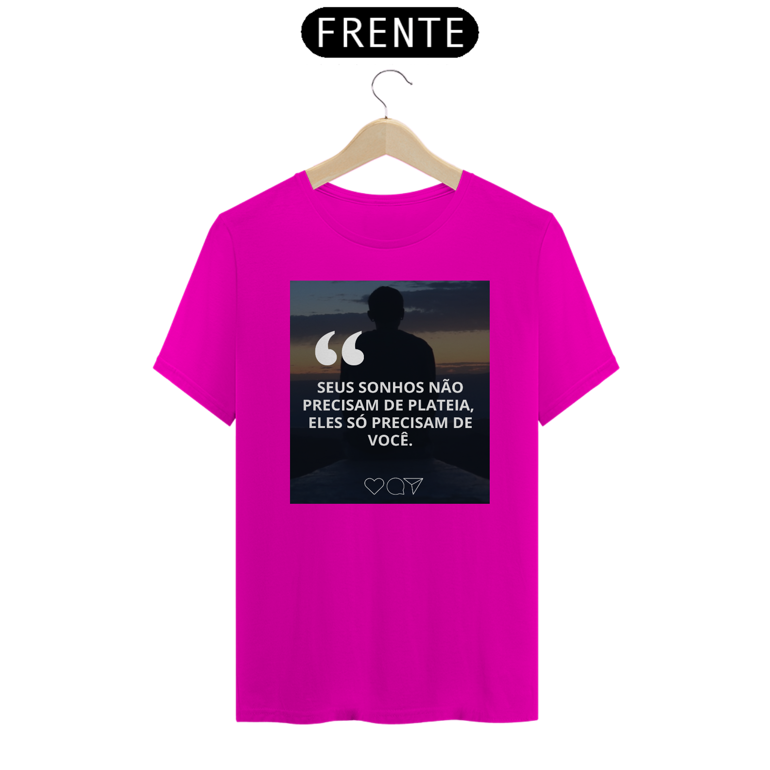 Cores do produto: Como cada tela de computador ou celular tem seu próprio jeito de mostrar cores, então a cor da sua camiseta e da estampa pode ser um pouco diferente do que você viu online.